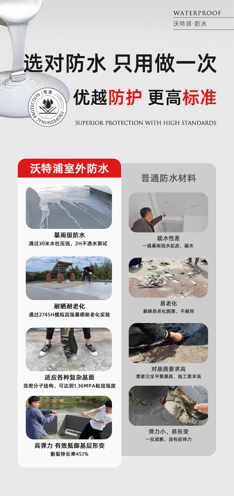 沃特浦防水涂料屋顶外墙防漏水房顶漏水防水胶补漏裂缝渗水室外楼顶胶