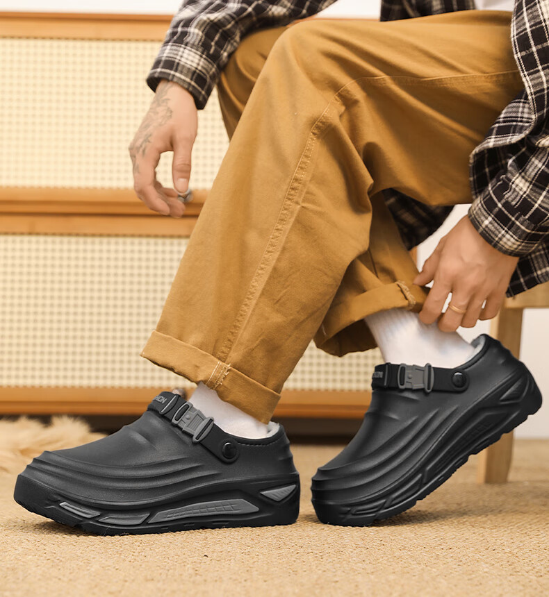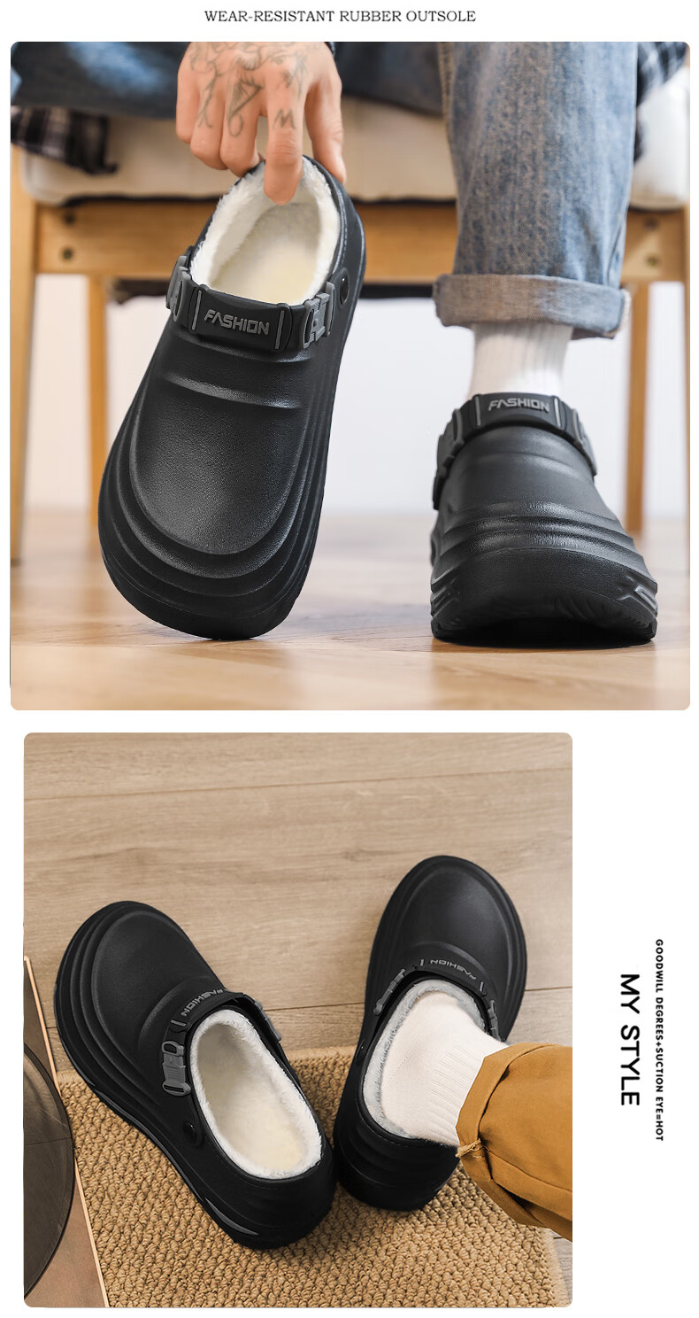星期六加绒勃肯鞋女2025新款秋冬季软底毛毛鞋一脚蹬懒人保暖棉鞋豆豆鞋 黑色 【通勤百搭】跟高1.5cm 37