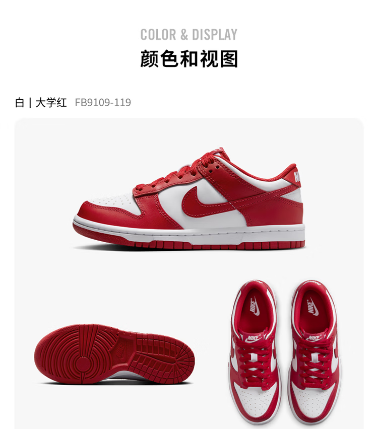 NIKE 耐克男女低帮休闲板鞋DUNK轻盈缓震运动小白鞋时尚滑板鞋大童鞋 FB9109-119 37.5 码 适合脚长23.5cm