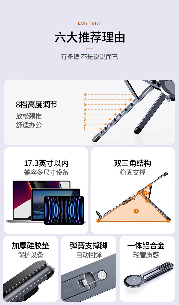 THE TREE笔记本电脑支架铝合金便携折叠桌面立式升降悬空增高架Apple苹果Mac联想华为手提平板托架散热器
