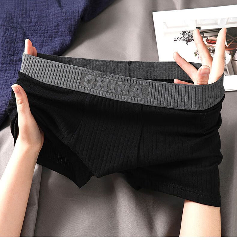莫代尔品牌内裤男士棉质平角裤衩黑色潮男生运动透气吸汗四角裤头 浅灰+黑色 舒适纯棉 2条 XL 体重150-160斤