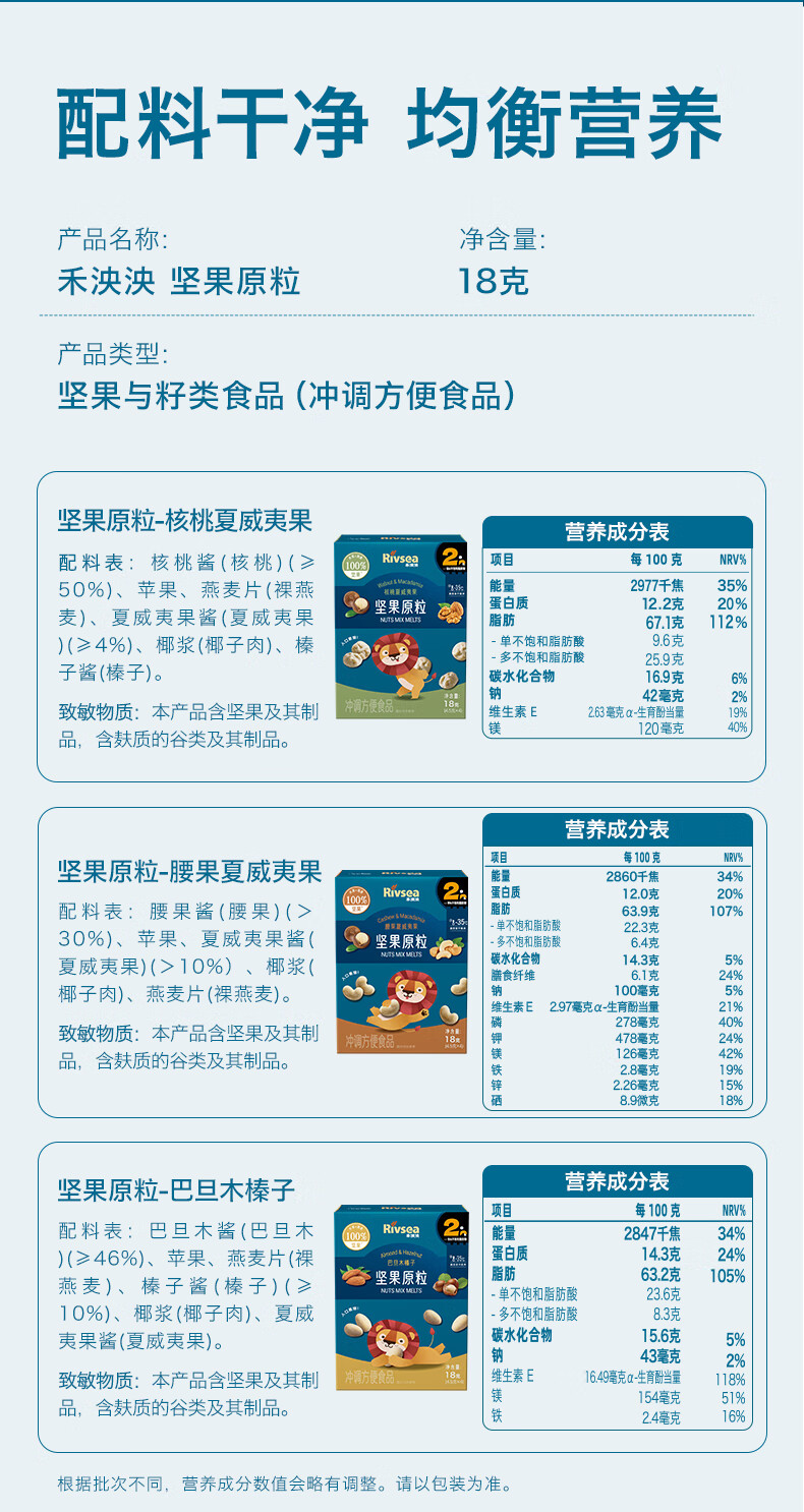 禾泱泱坚果原粒腰果夏威夷果18g 宝宝零食无添加白砂糖入口易溶
