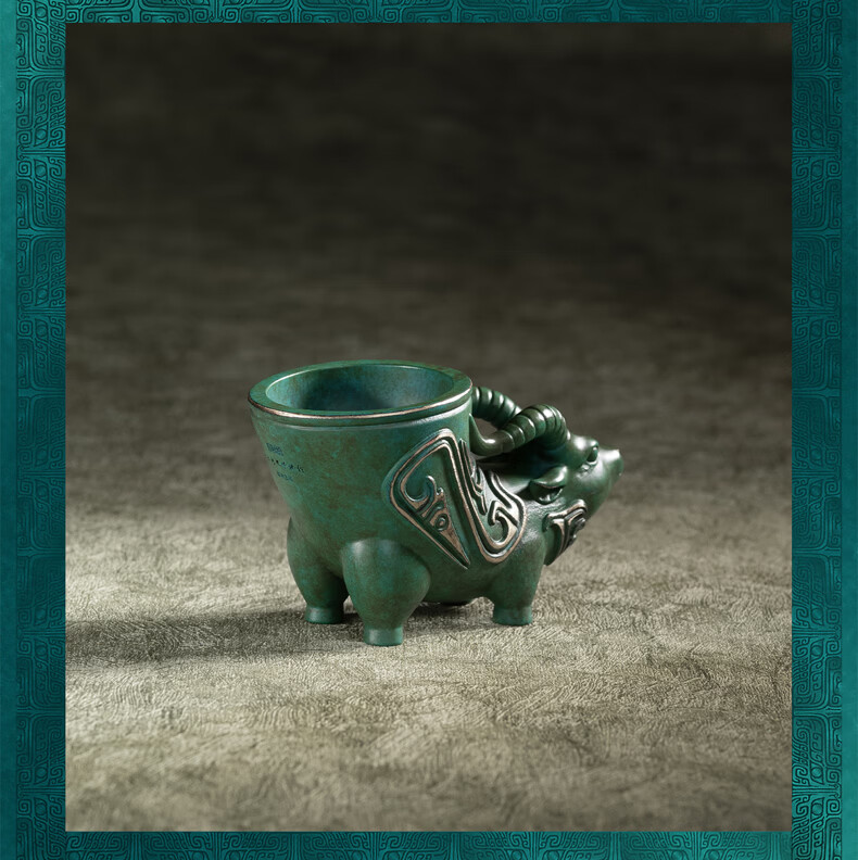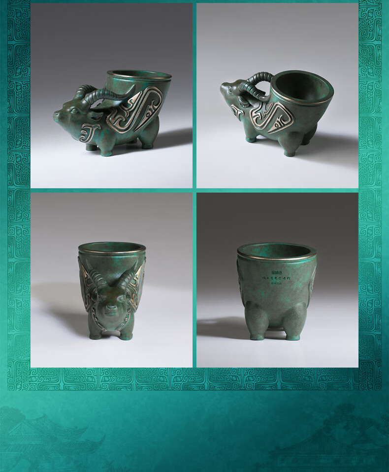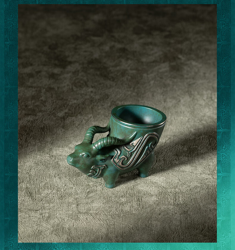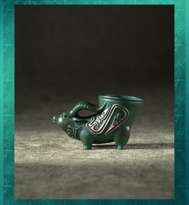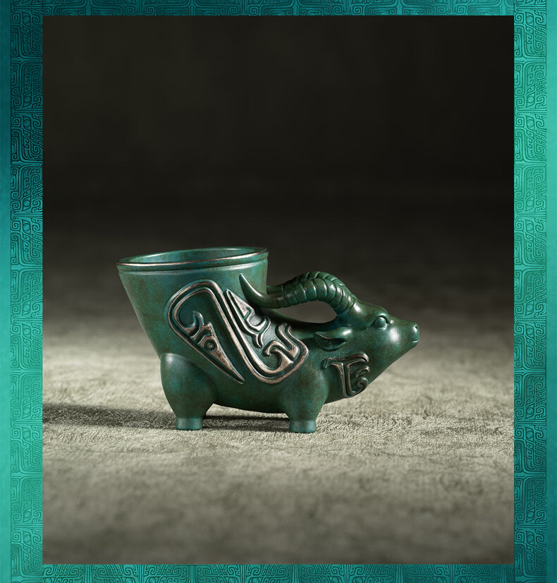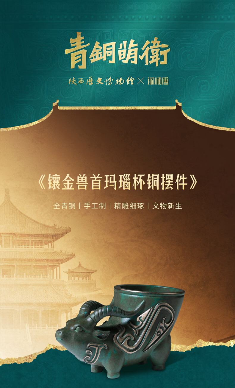 铜师傅陕西历史博物馆系列《镶金兽首玛瑙杯铜摆件》青摆件