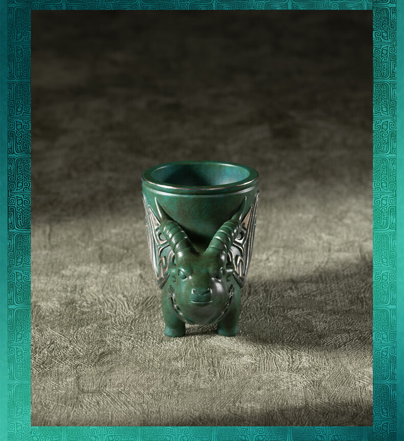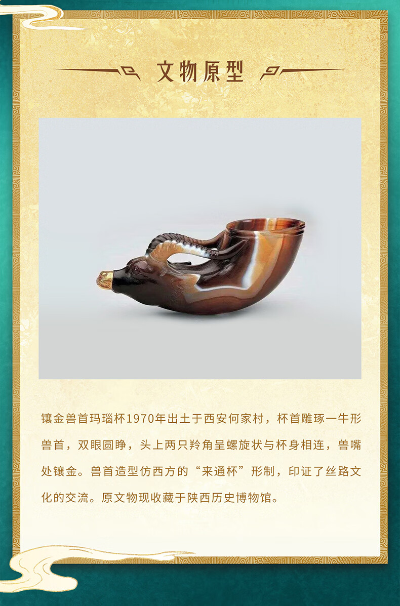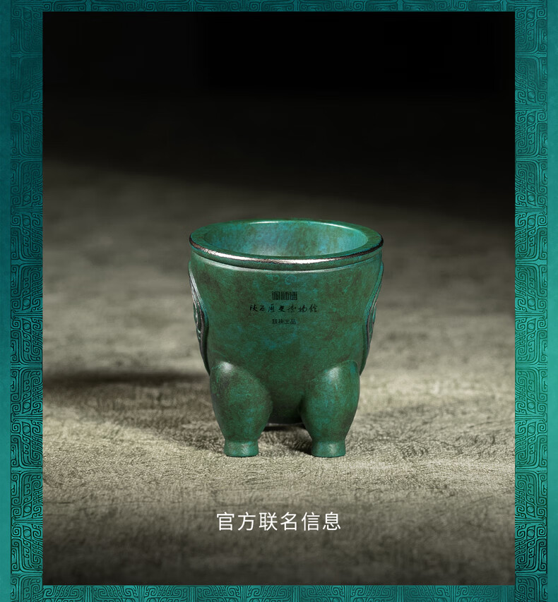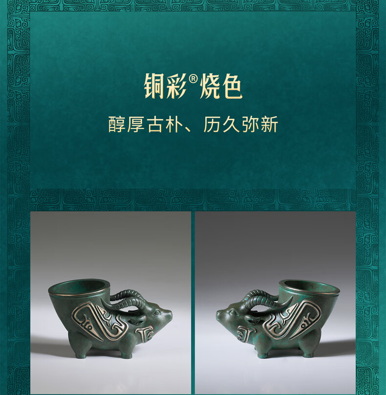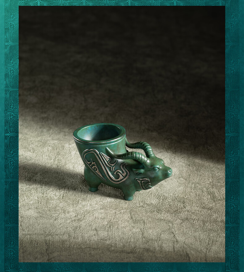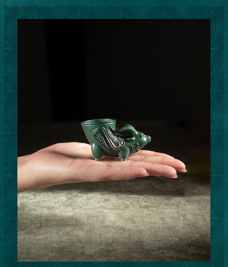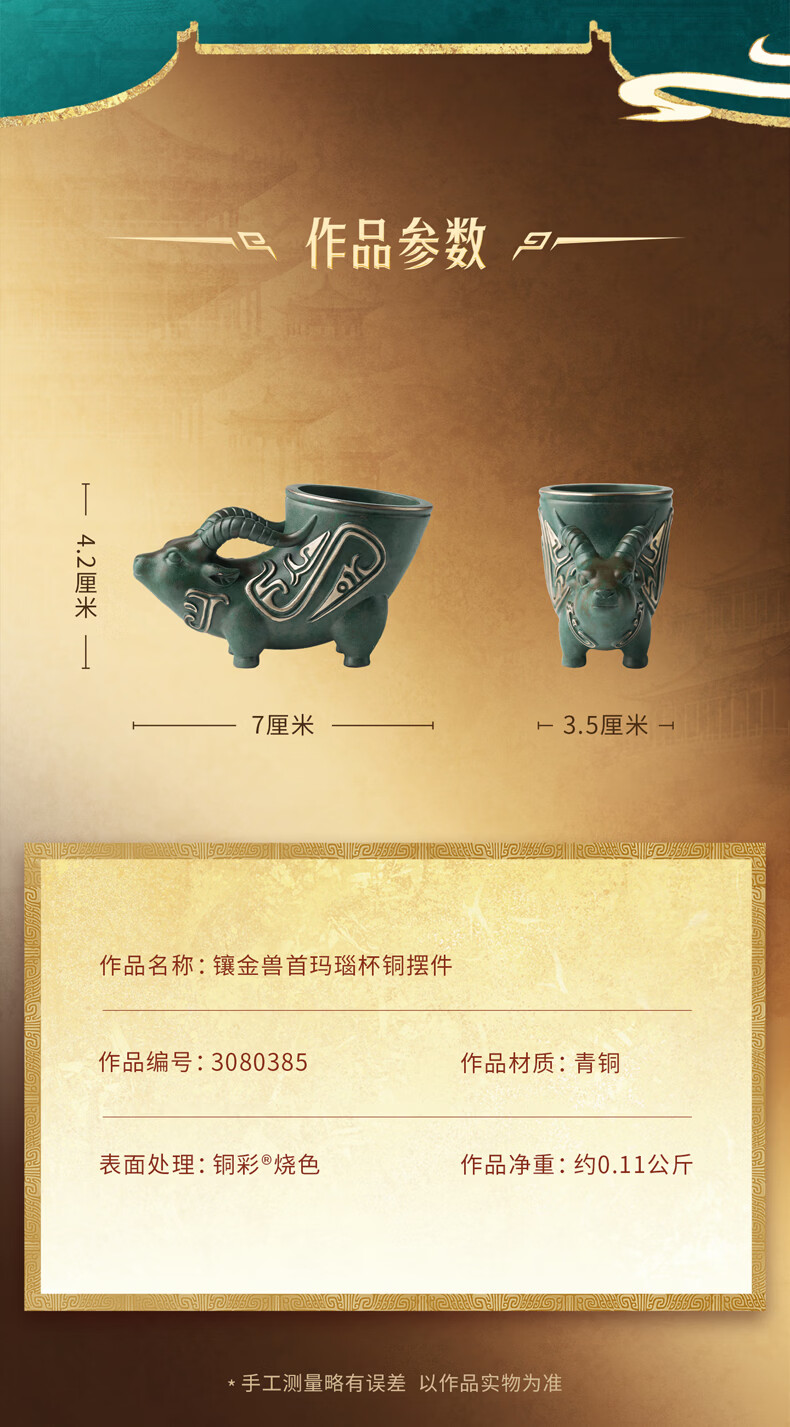 铜师傅陕西历史博物馆系列《镶金兽首玛瑙杯铜摆件》青摆件