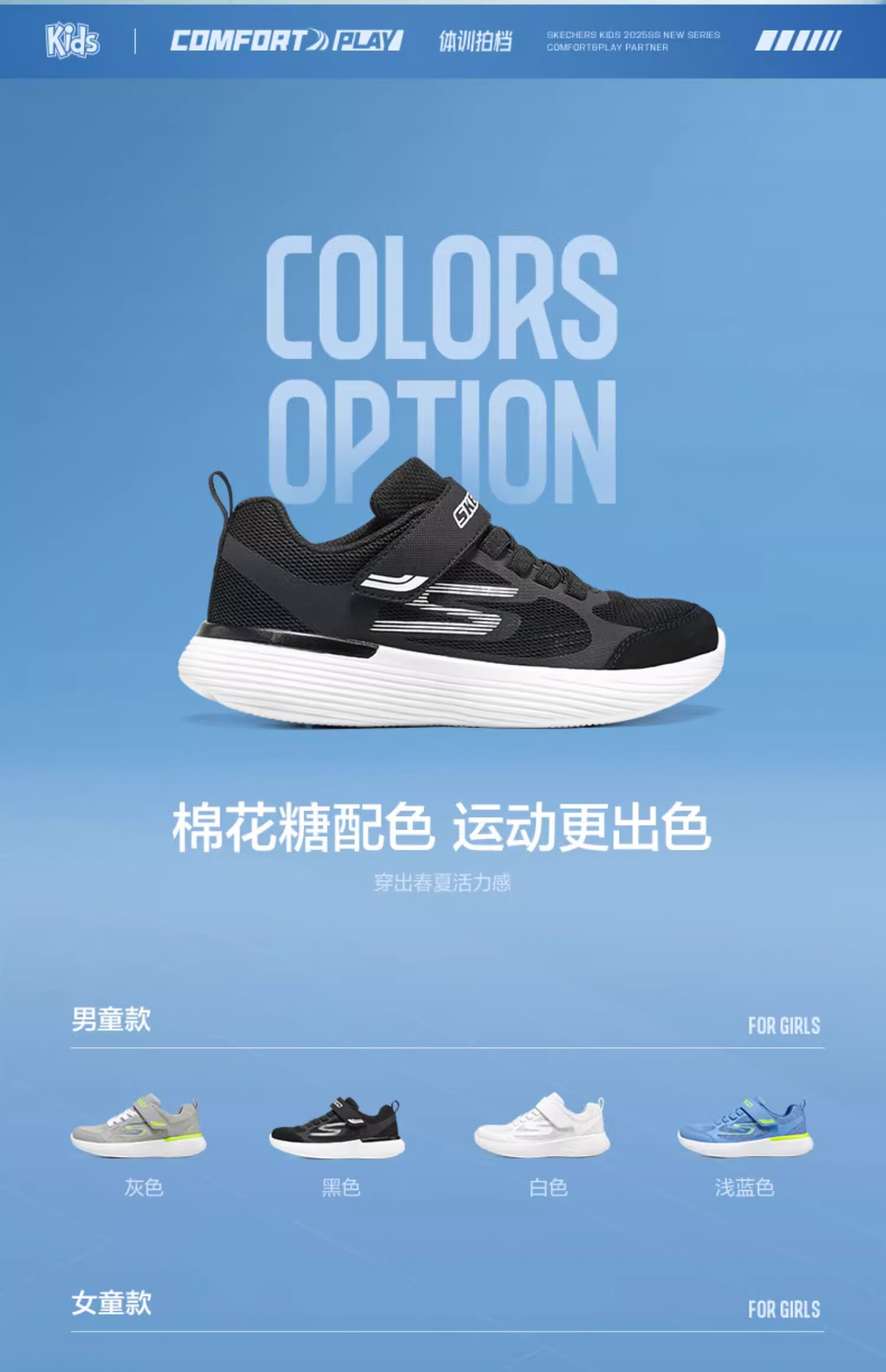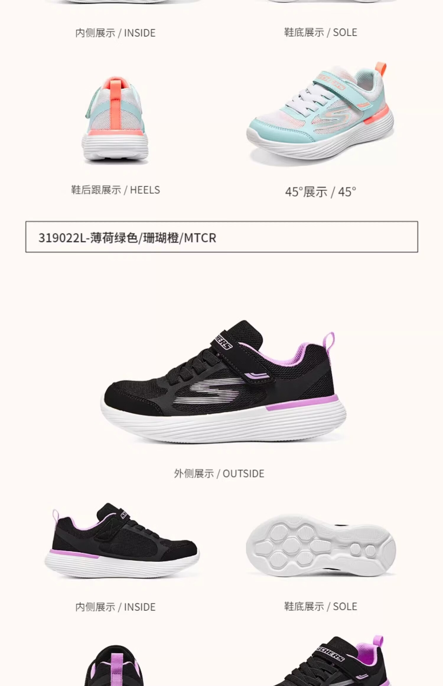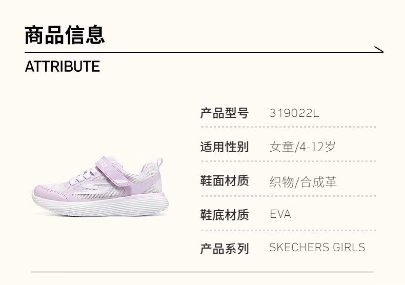Skechers斯凯奇小学生运动鞋女孩儿童轻质防滑体训鞋透气跑步童鞋319022L