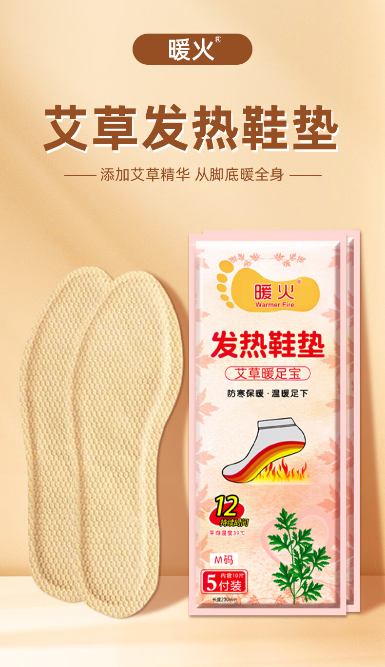 暖火 艾草发热鞋垫(40片)女士暖脚宝足底发热脚暖脚垫暖足贴加热脚垫
