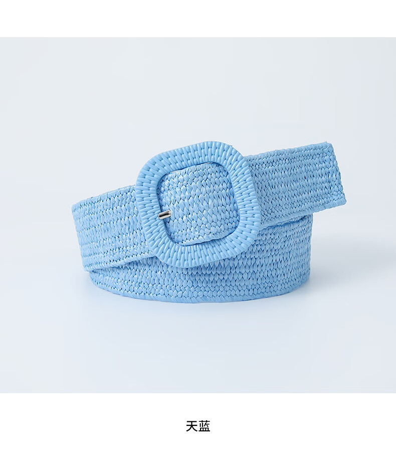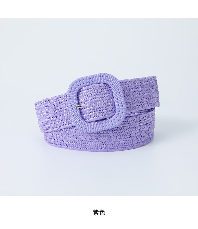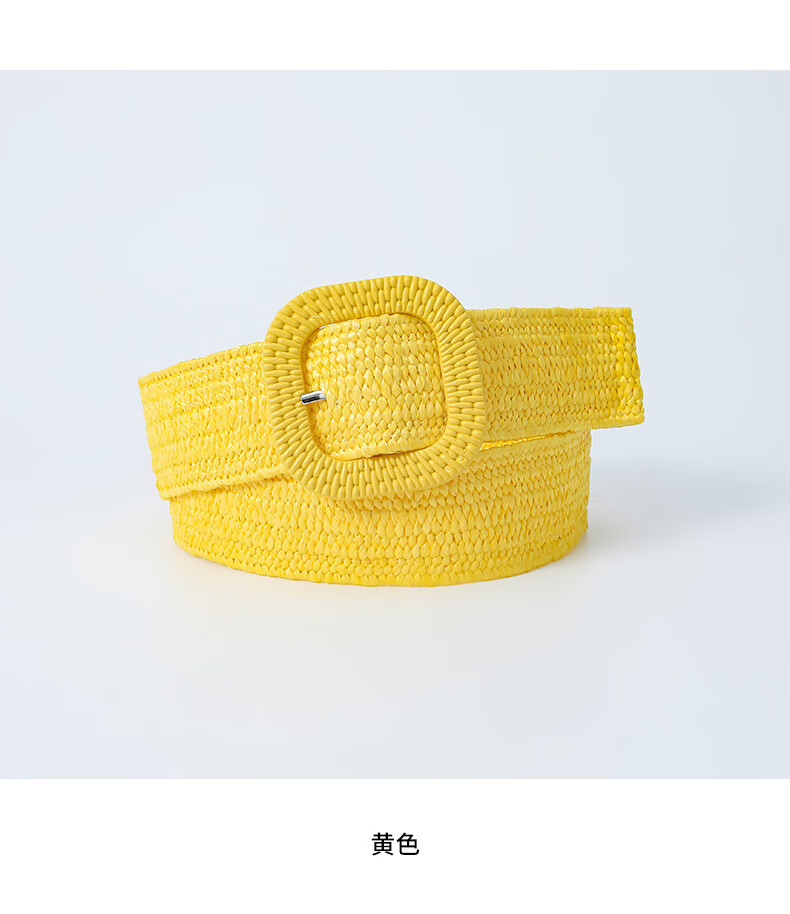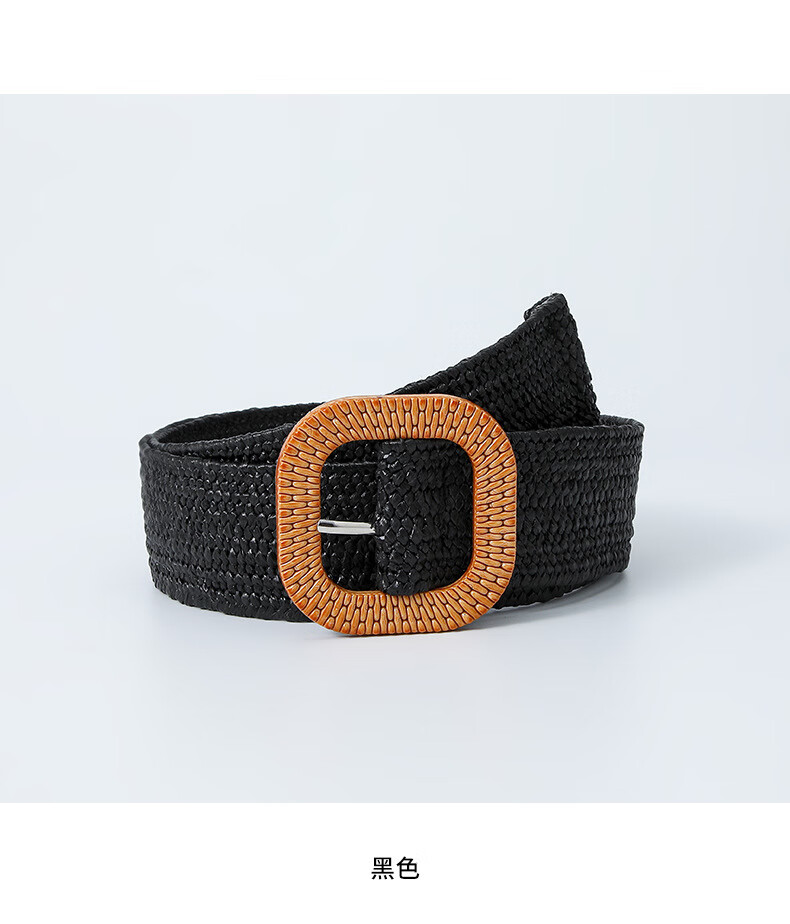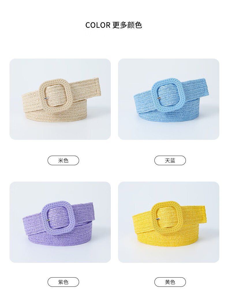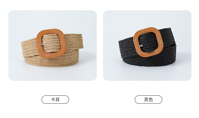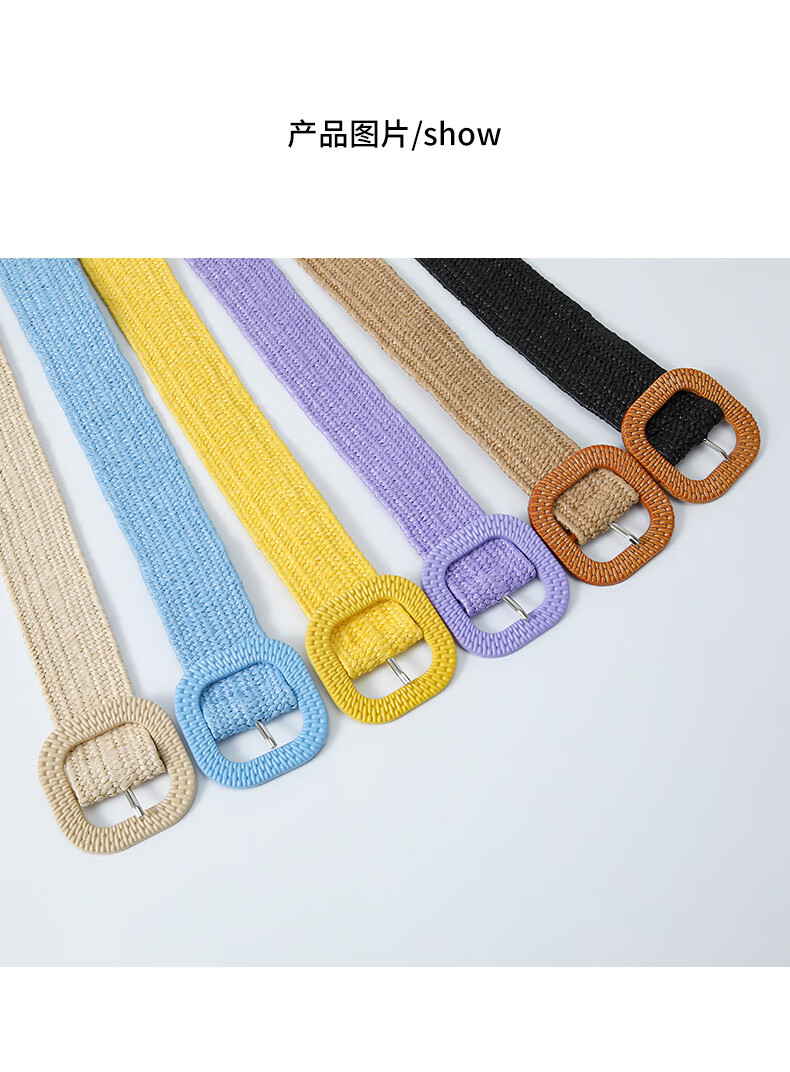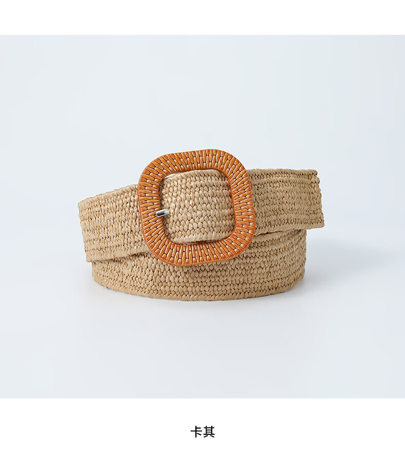 诺娅【优选百货】4cm宽韩版森系糖果色方扣PP草编织腰带松紧弹力百搭 卡其色 1cm 长90宽4.0