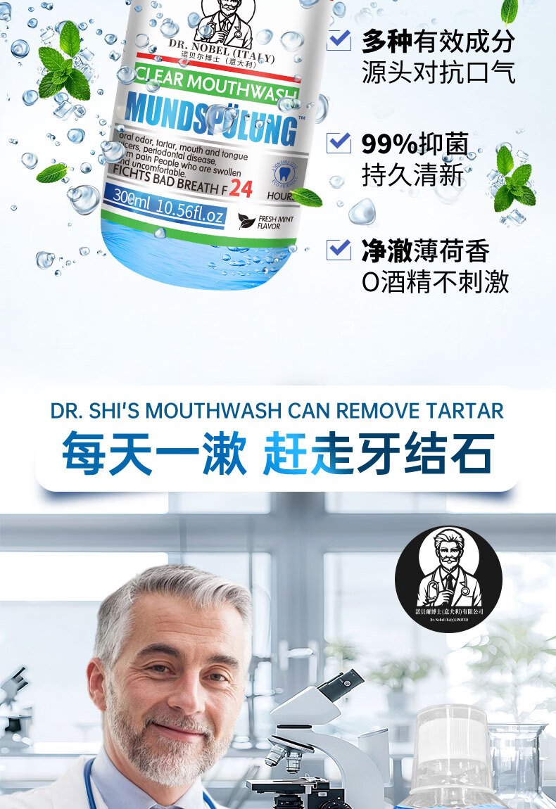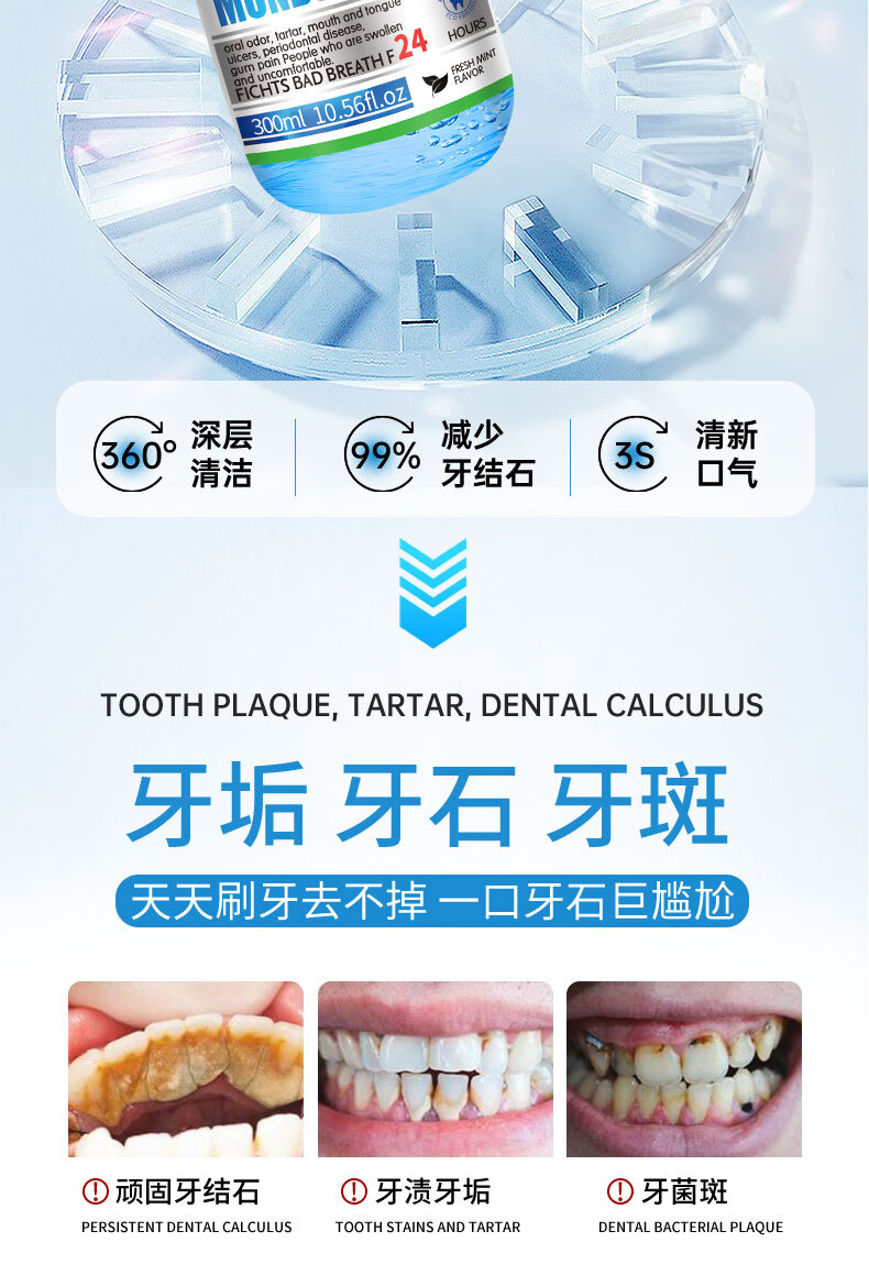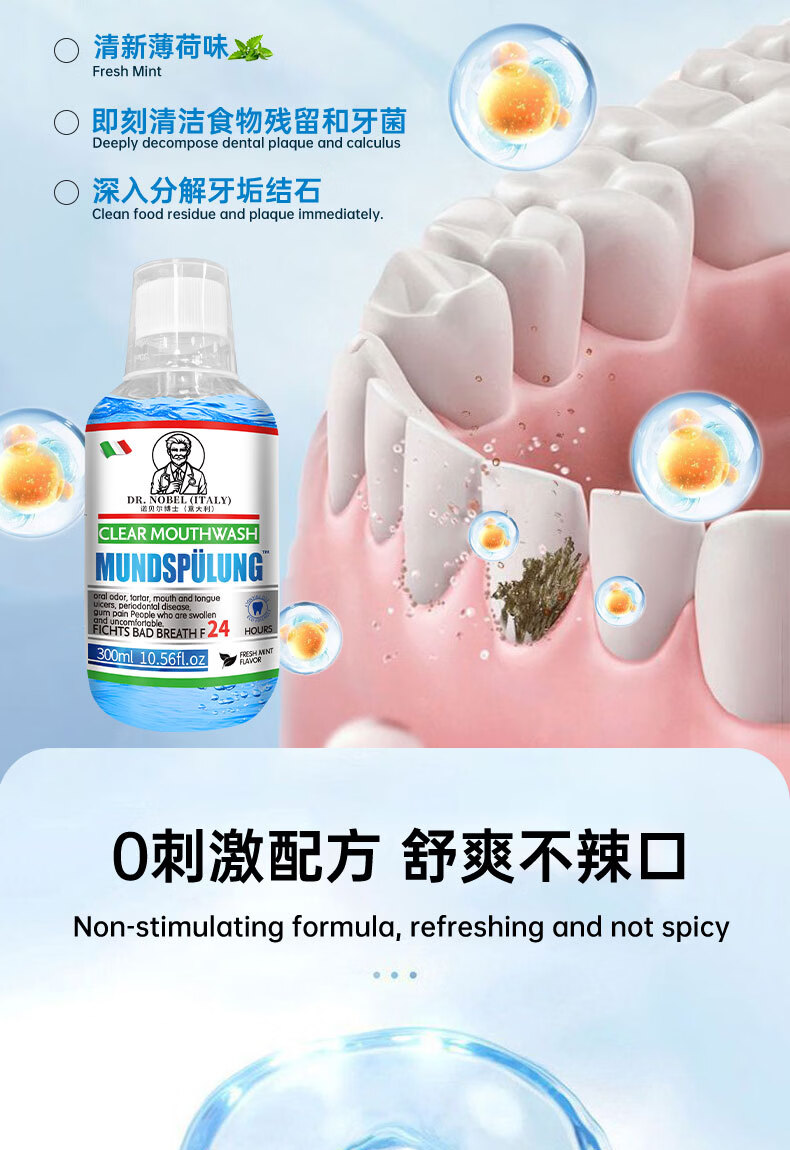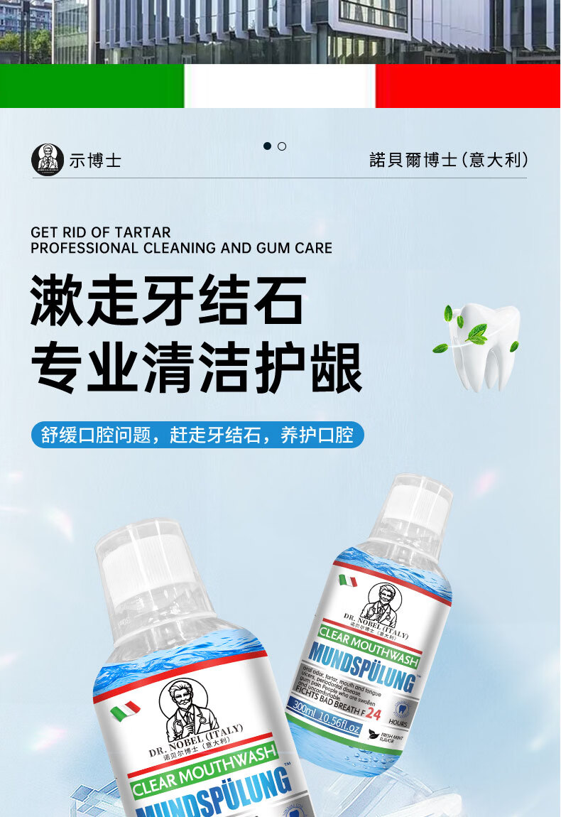 【意大利】牙结石溶解漱口水除口臭洗牙齿牙垢牙黄牙渍清理神器 买2送1【3瓶】轻度口腔问题