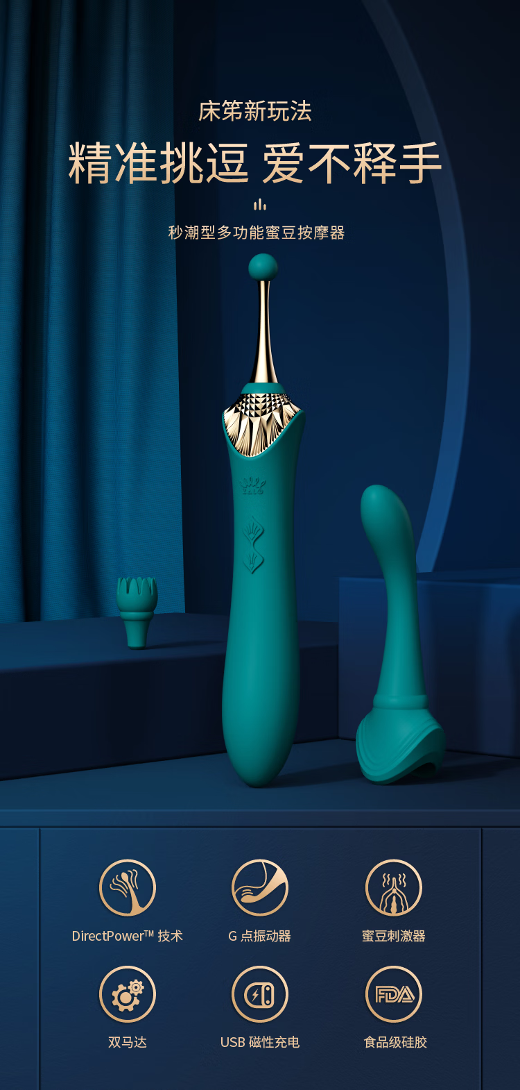 ZALO震动棒女用自慰器成人情趣用品女性女人性玩具电动按摩振动AV棒 【BESS1】孔雀绿+润滑油+隔尿垫