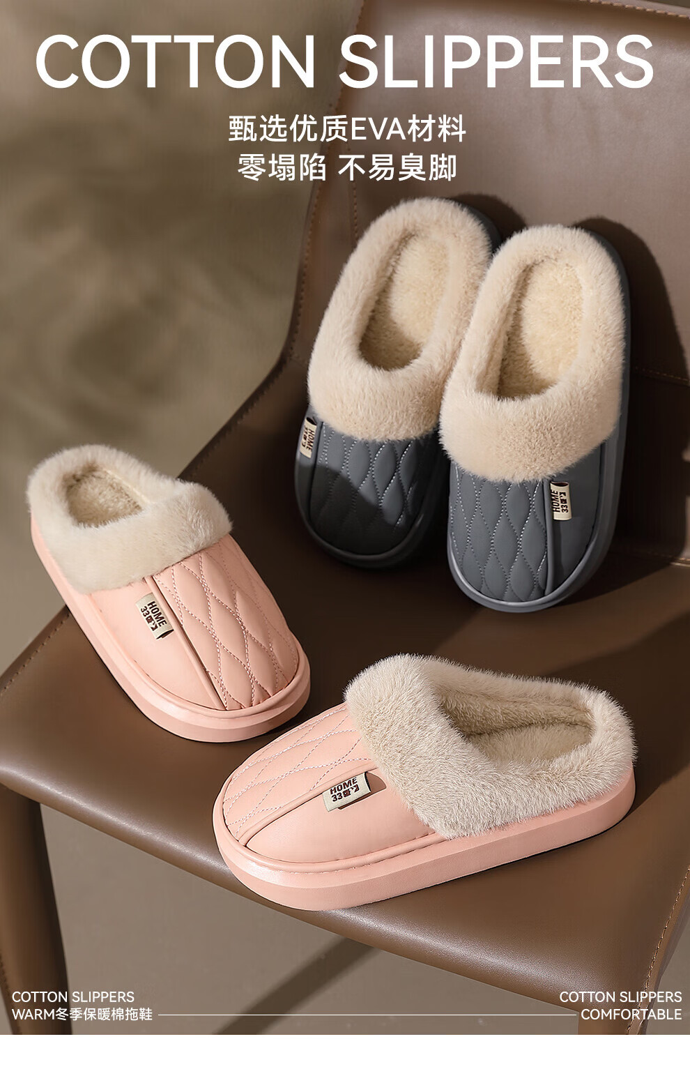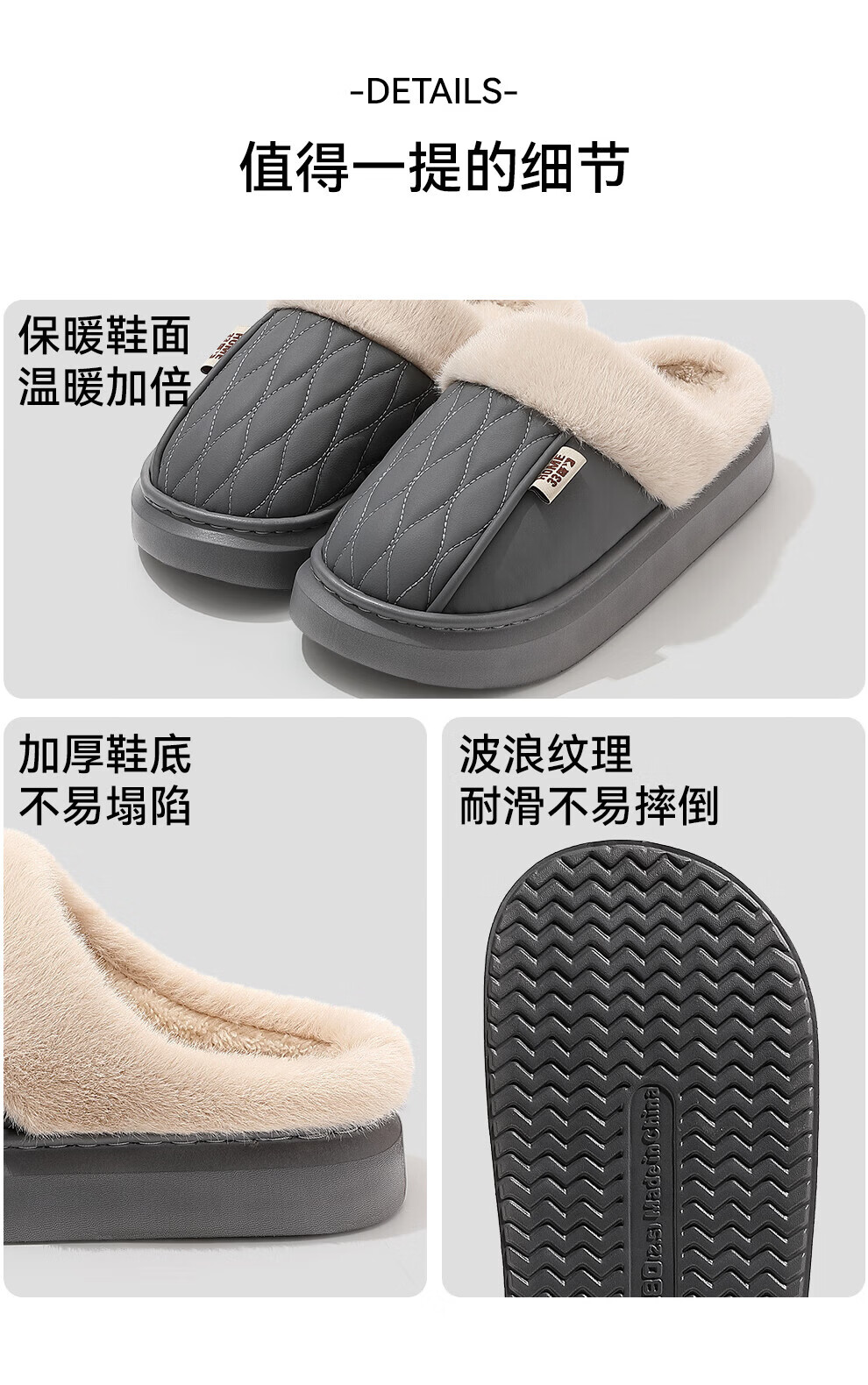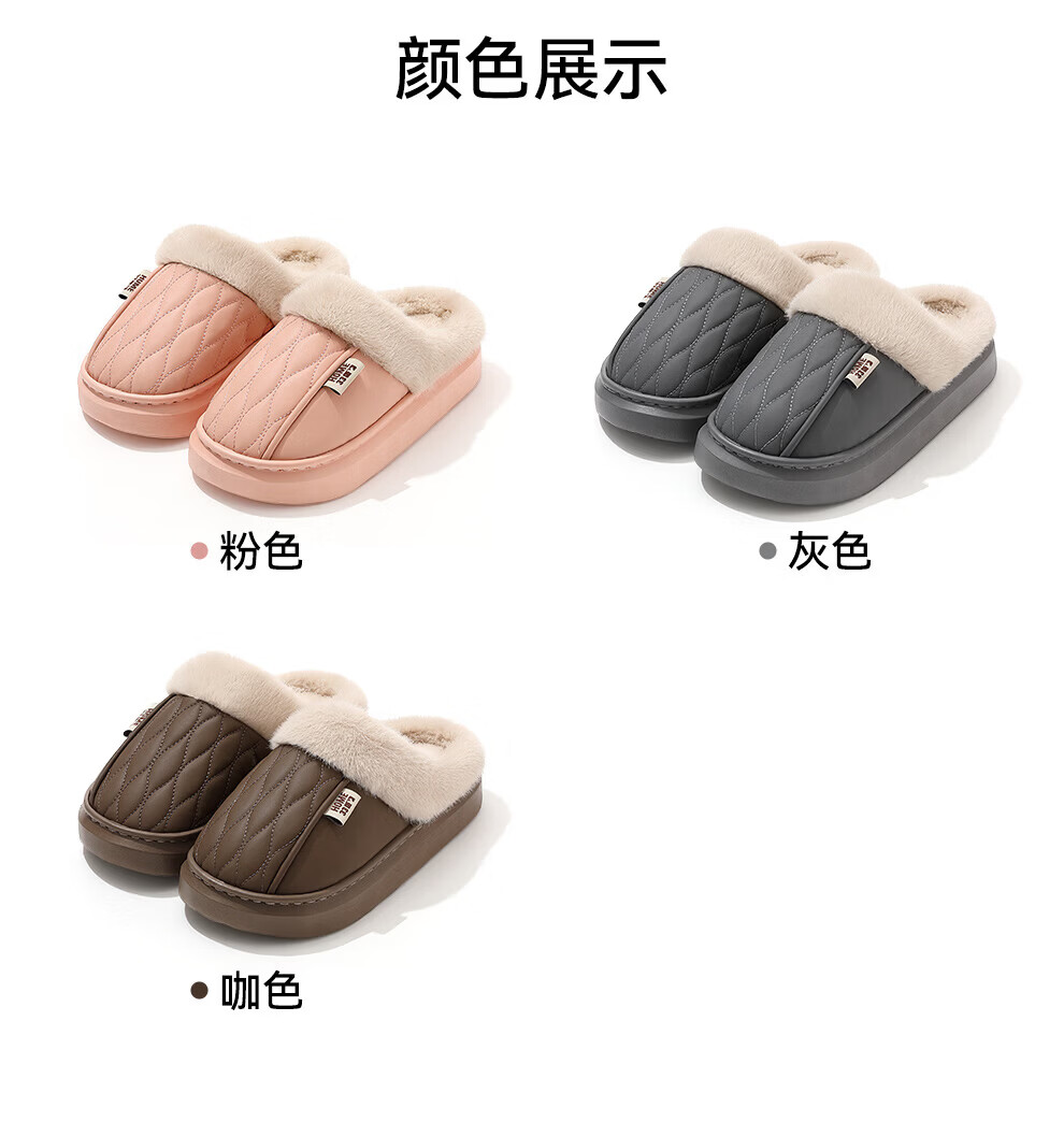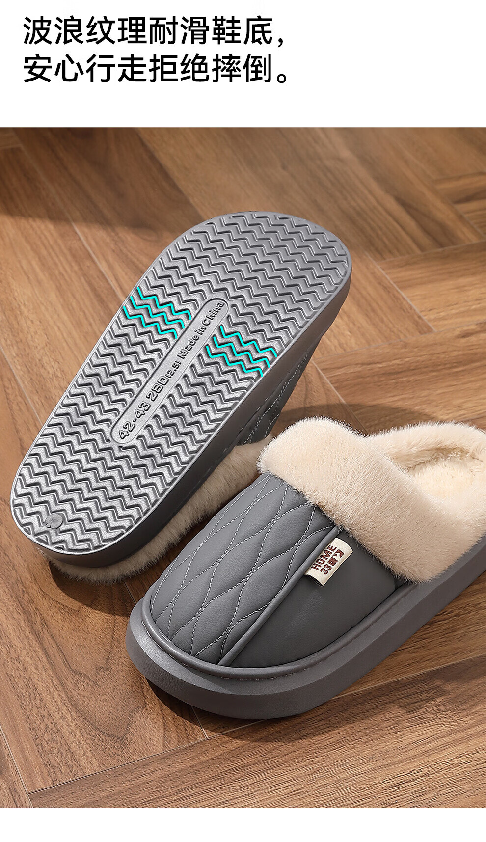 FZT防水棉拖鞋女士2025冬季新款毛绒防滑厚底简约情侣居家棉拖鞋男士 灰色 44-45 正码