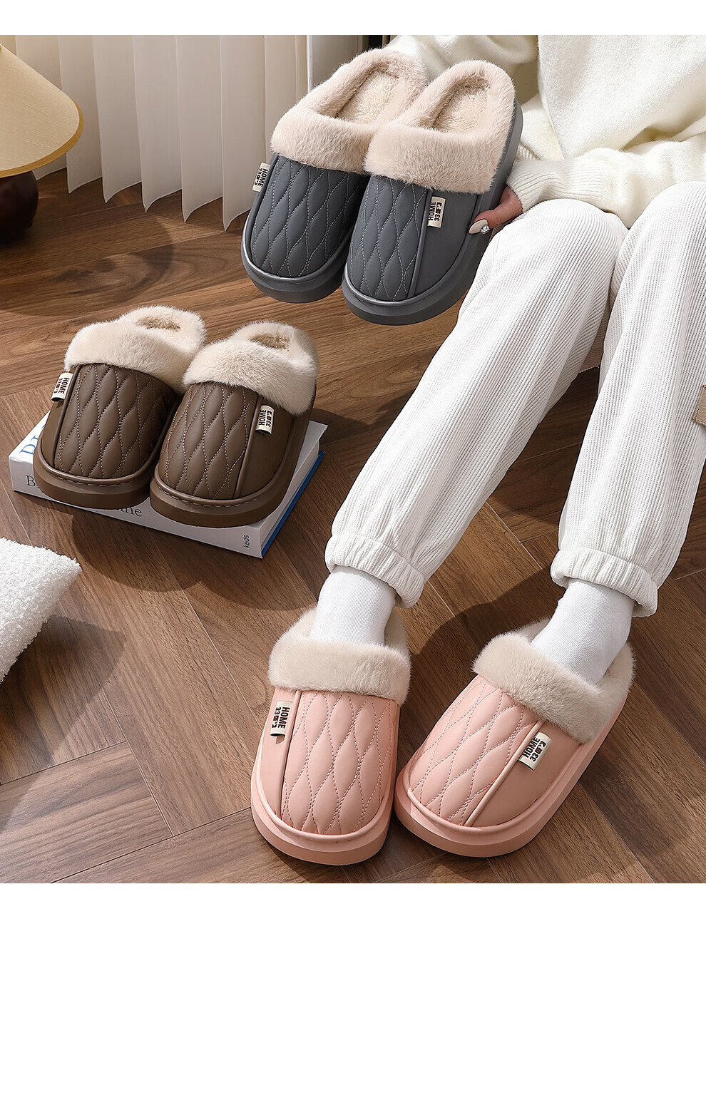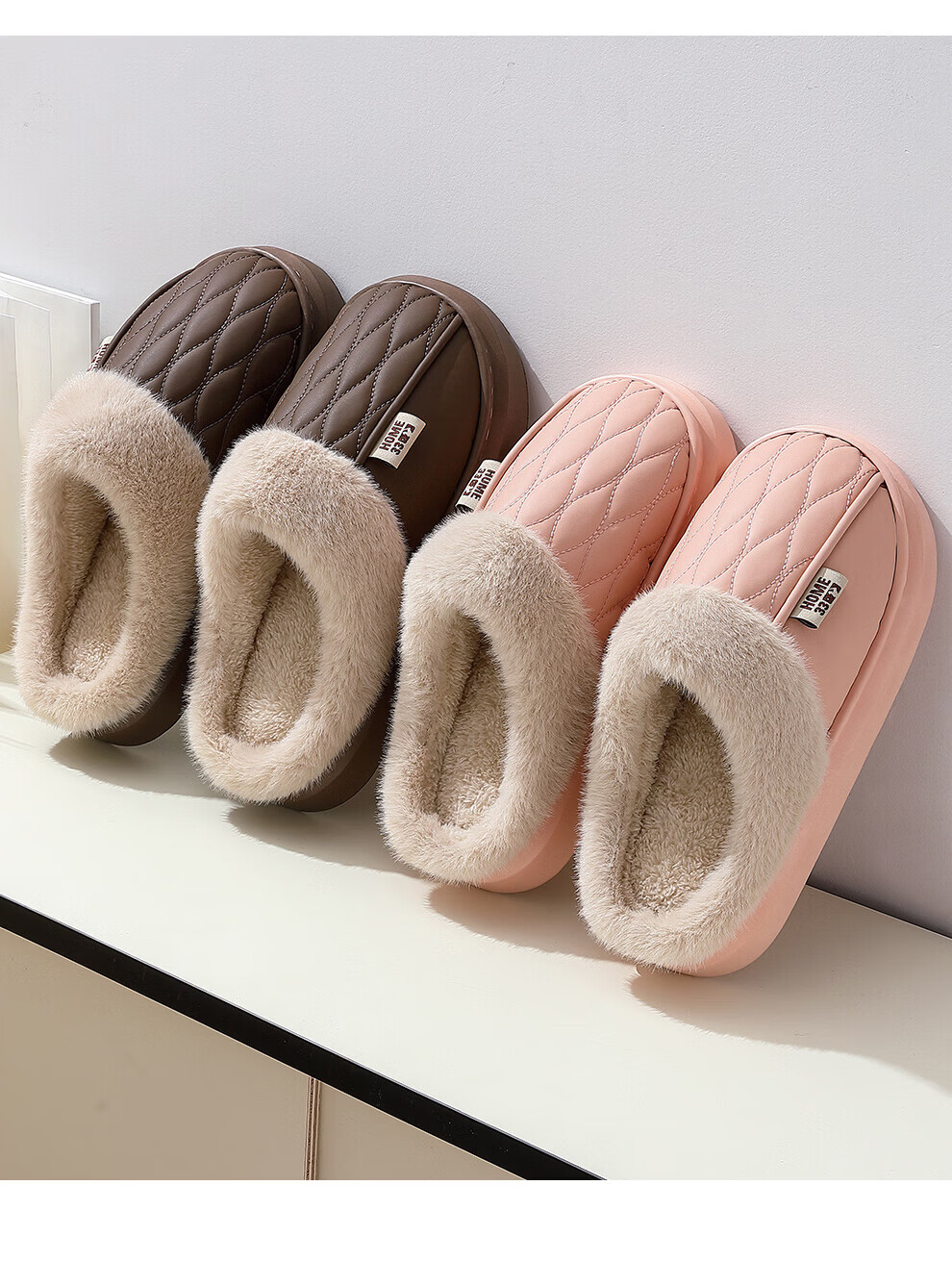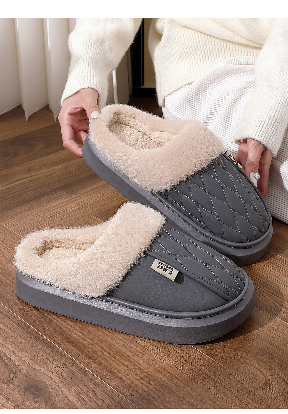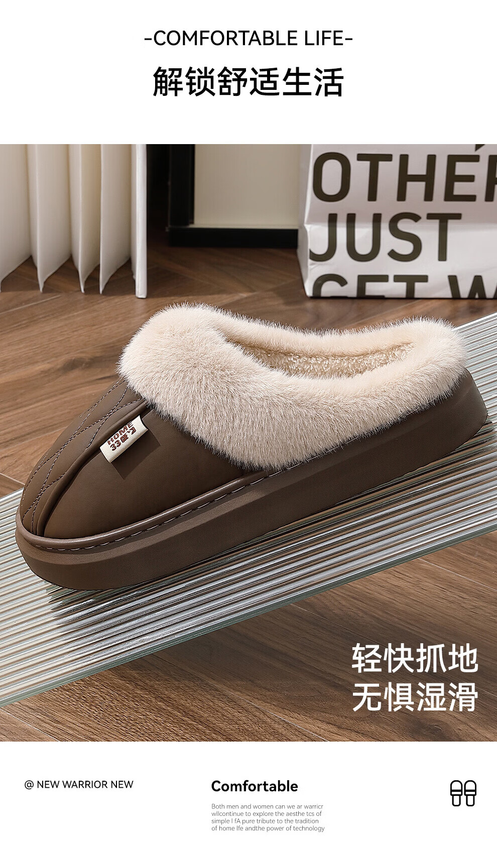 FZT防水棉拖鞋女士2025冬季新款毛绒防滑厚底简约情侣居家棉拖鞋男士 灰色 44-45 正码