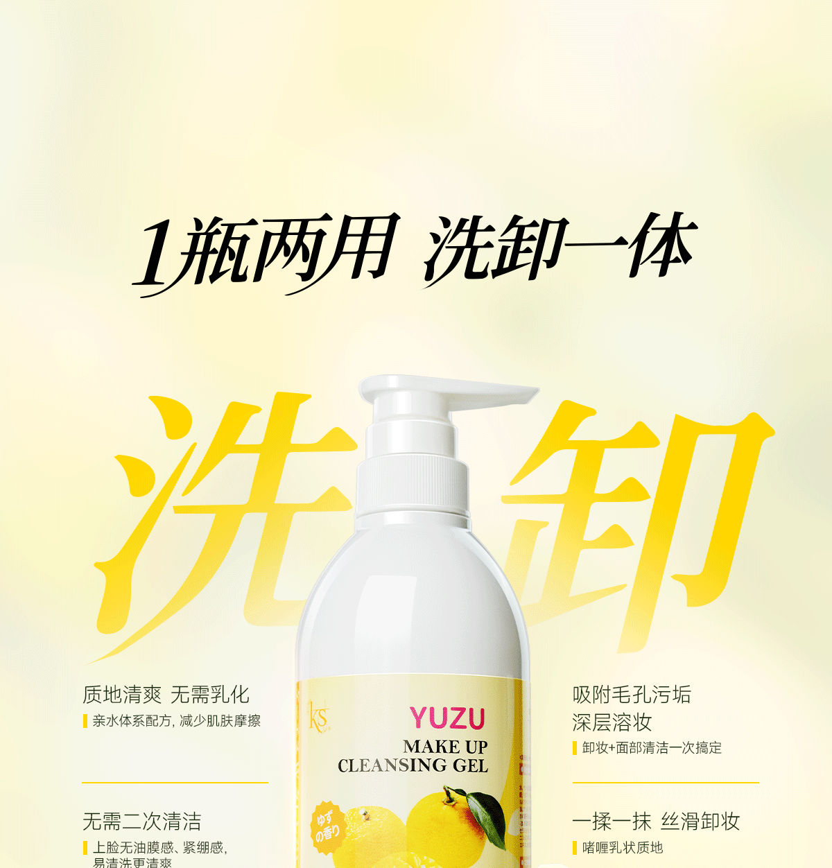 KS珂爱诗柚子卸妆乳500ml柚子卸妆洁面啫喱日本进口卸妆油经典版 180ml【原装进口】柚子卸妆乳