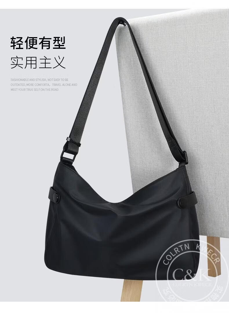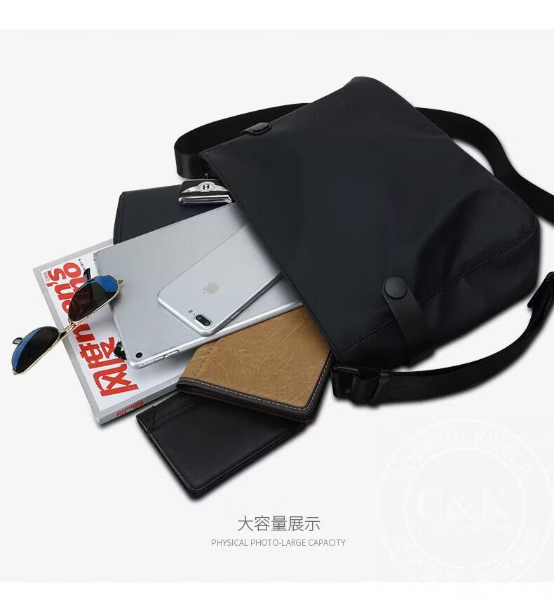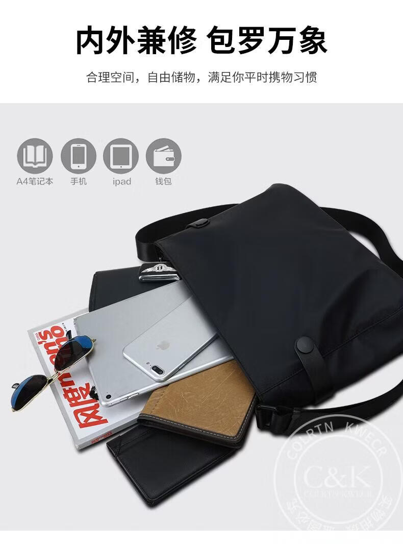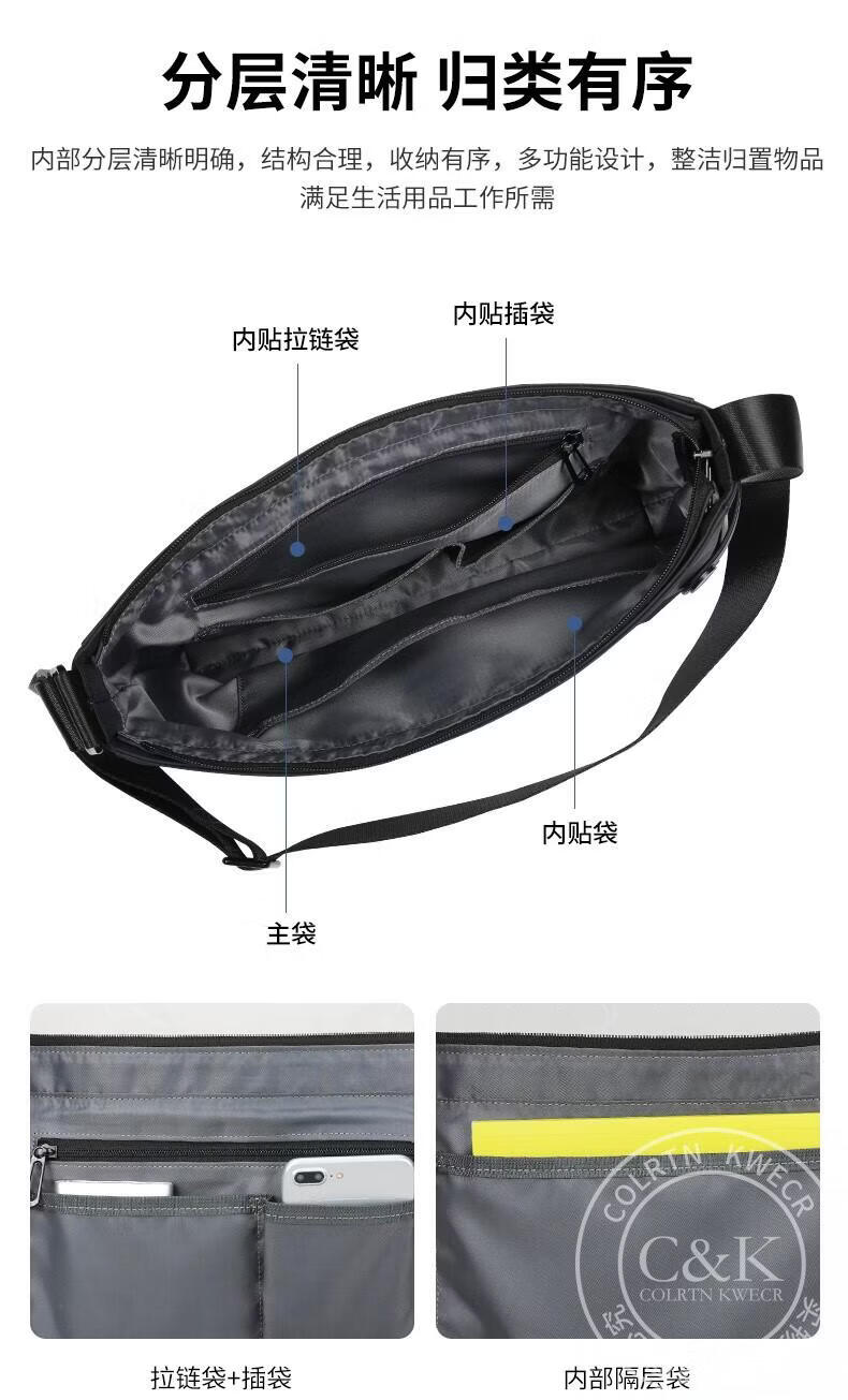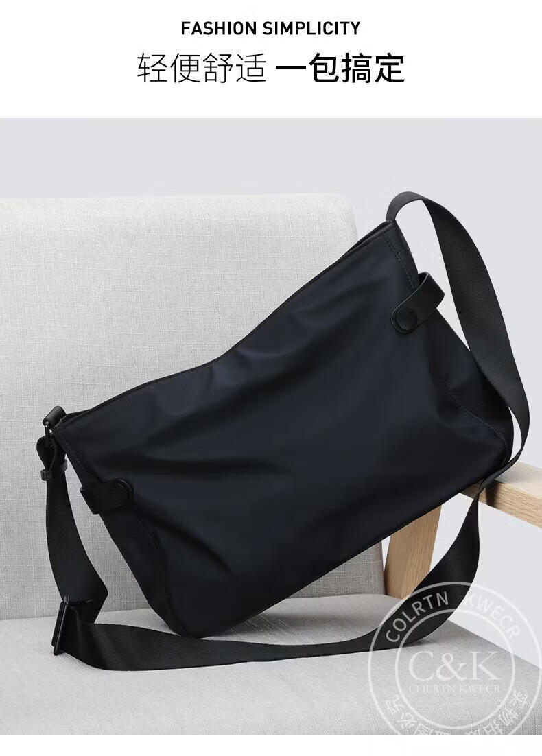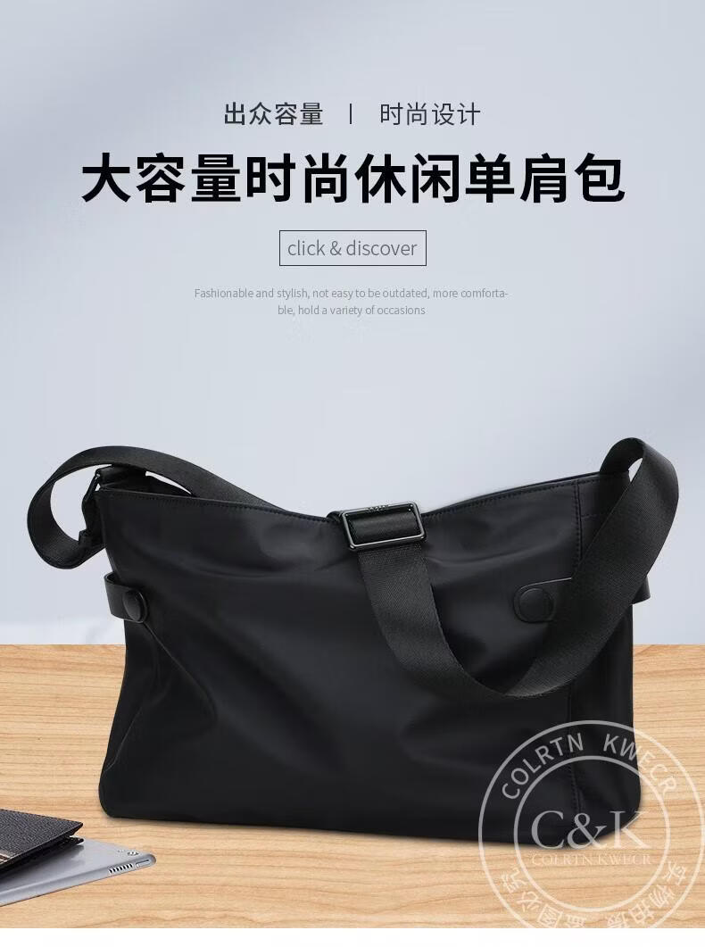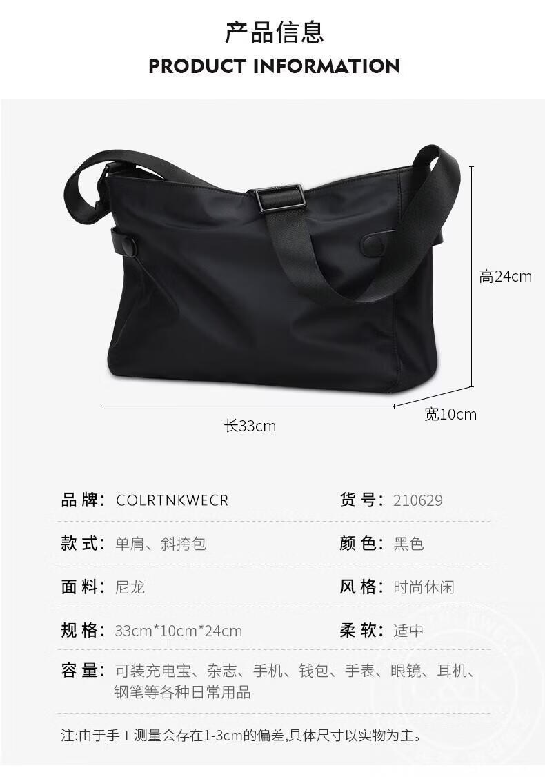 Colrtn Kwecr男士新款单肩包商务休闲背包斜挎包大容量邮差包时尚情人节礼物男 黑色大号 33*24*10