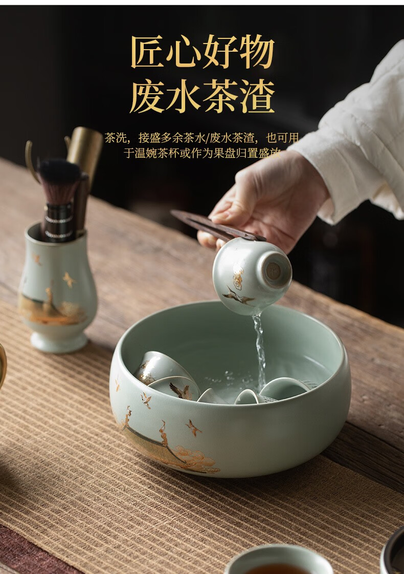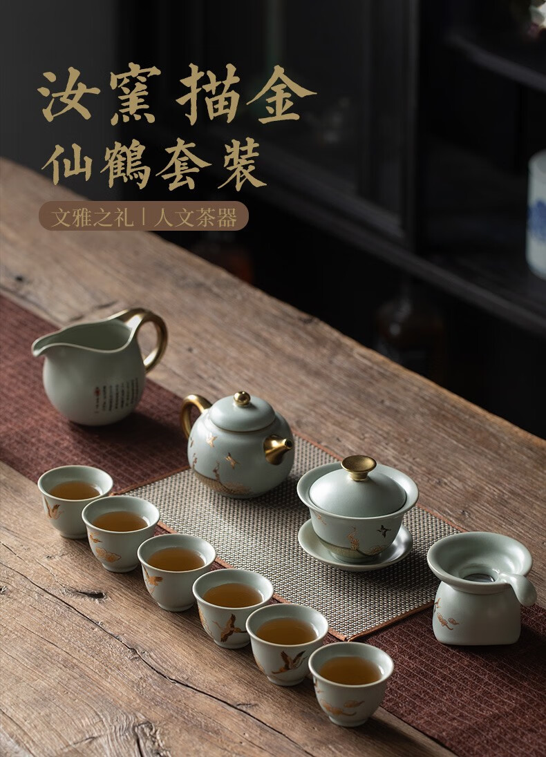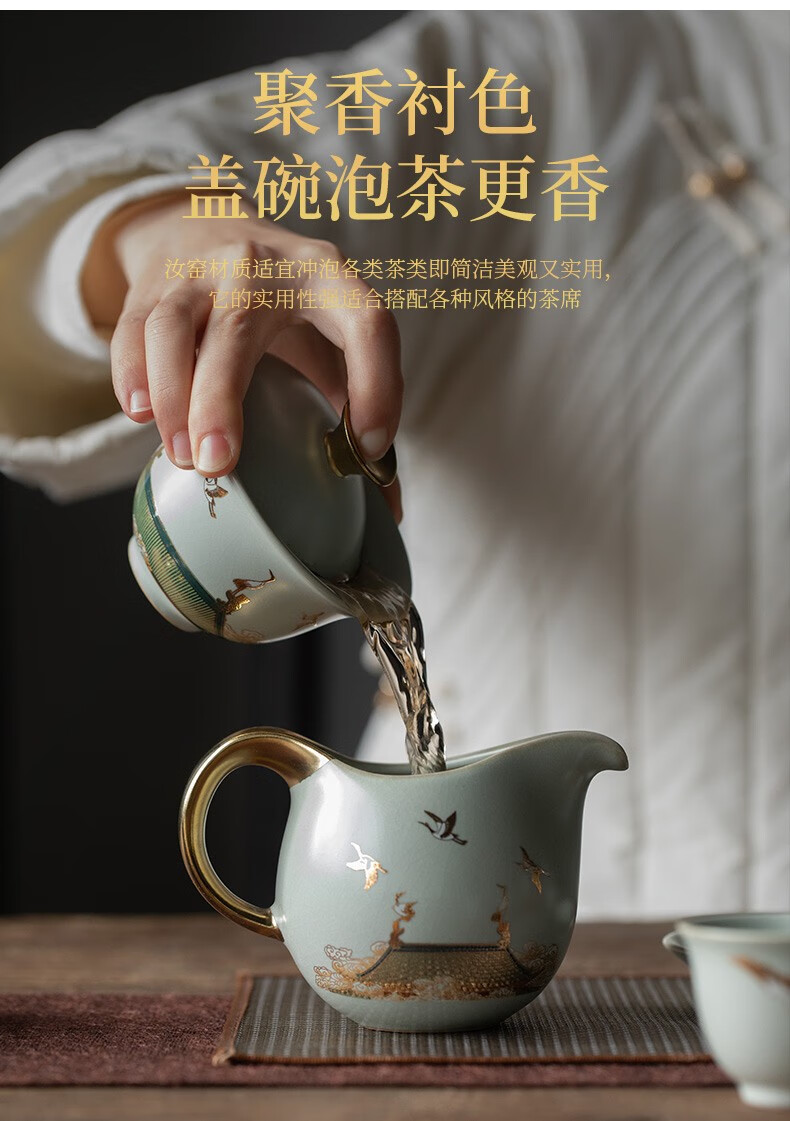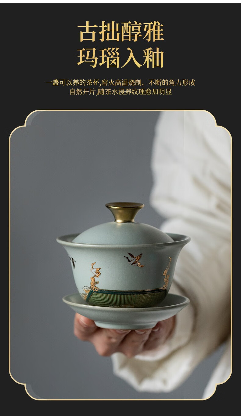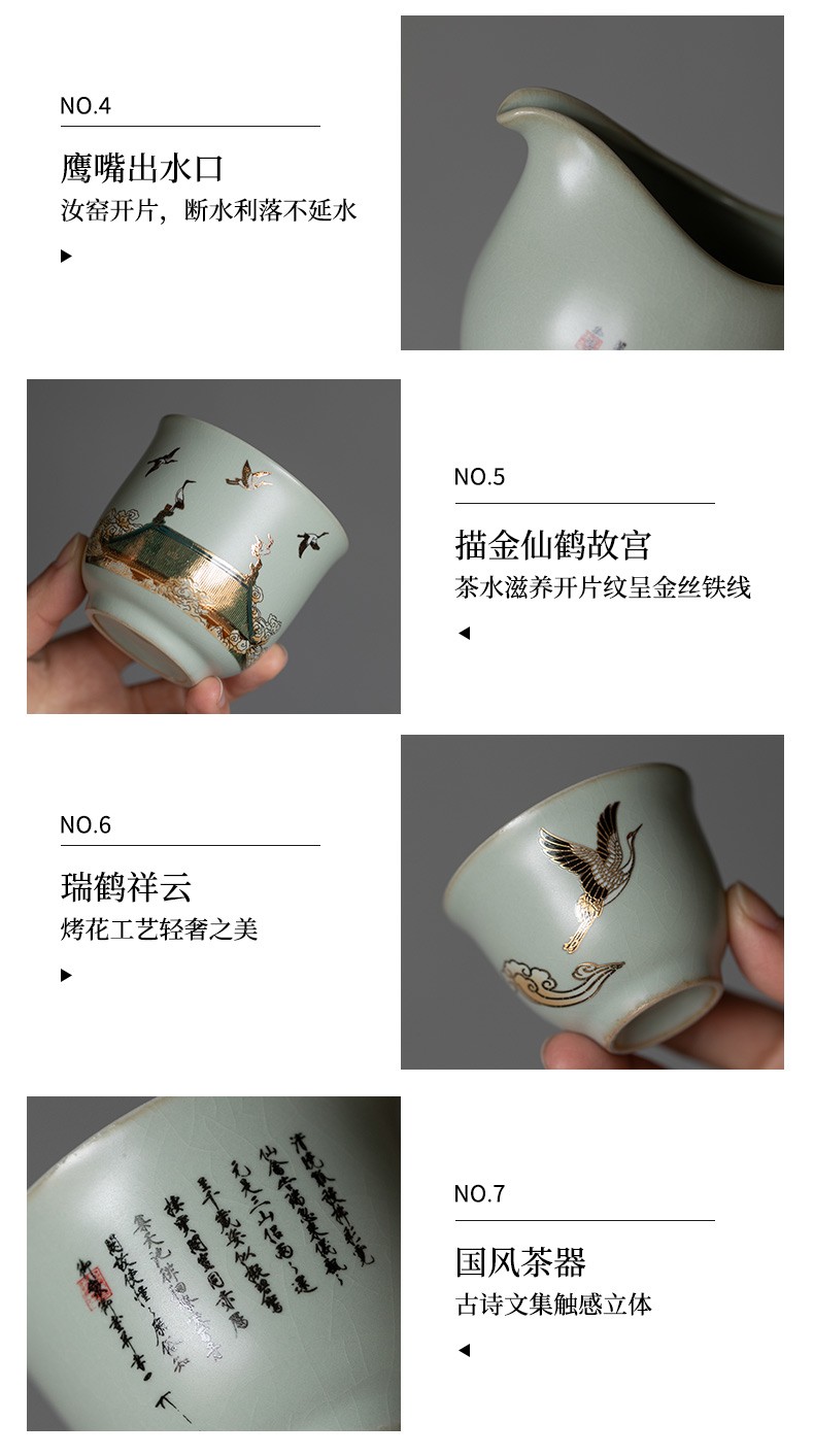 京峰阁 功夫茶具套装 茶壶汝窑瑞鹤呈祥盖碗茶杯可开片高档轻奢家用送礼 瑞鹤呈祥贵妃壶套装 6人饮 11件