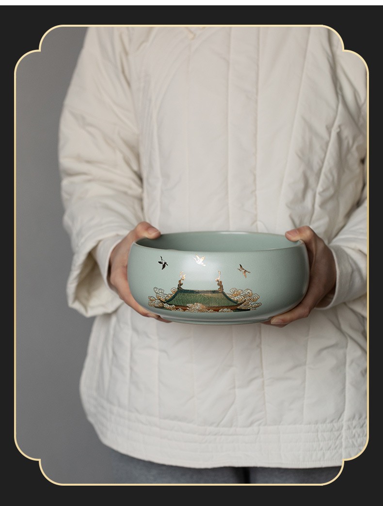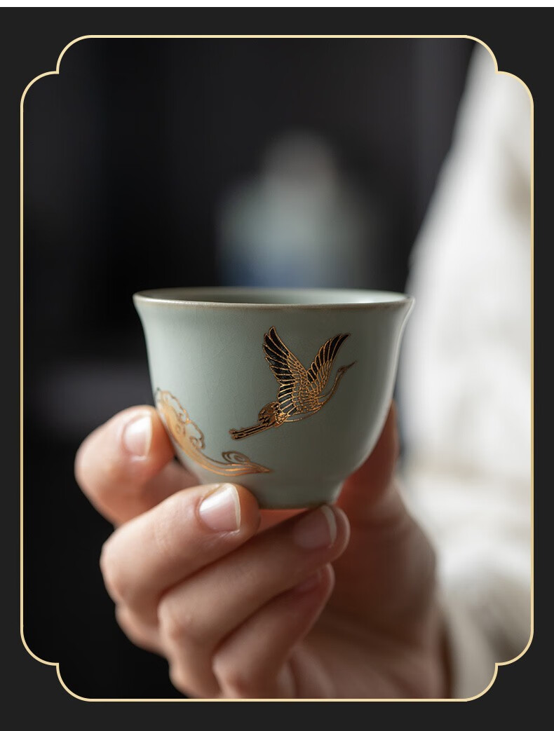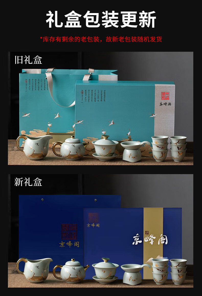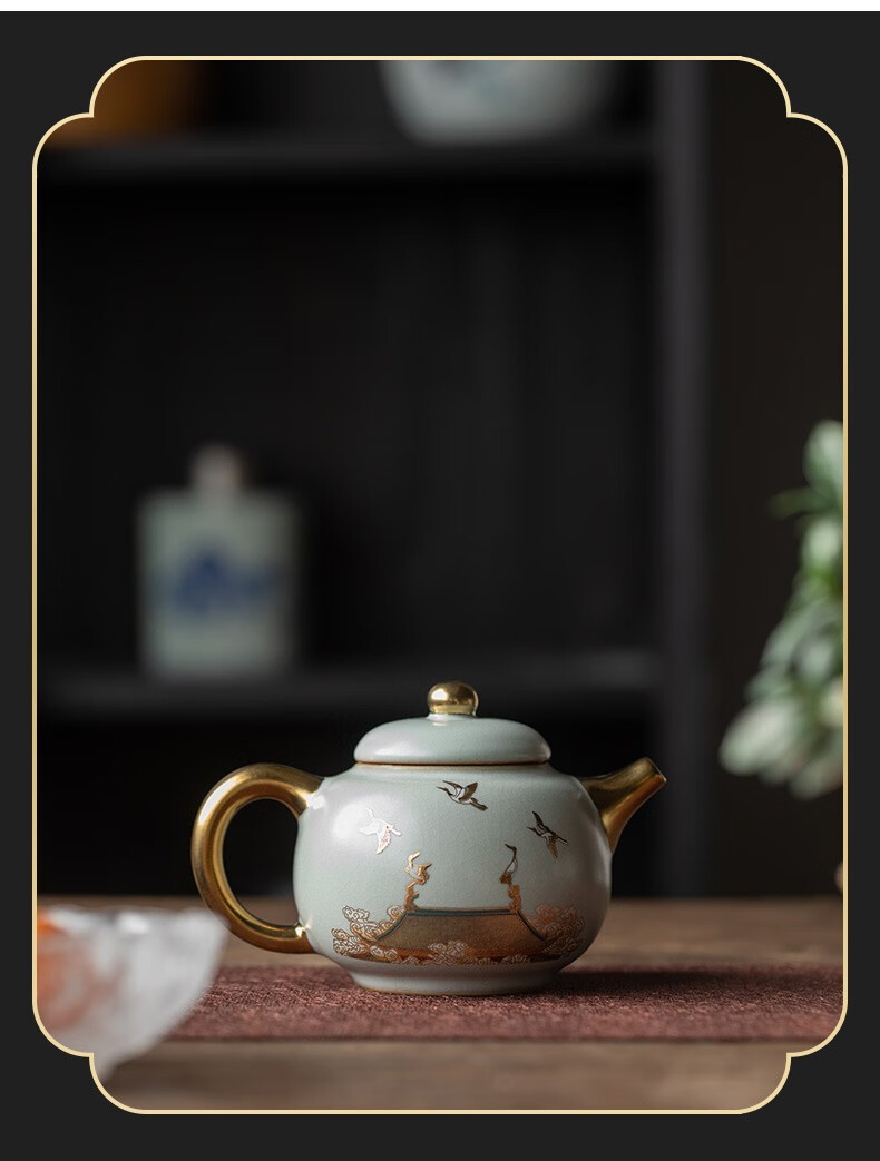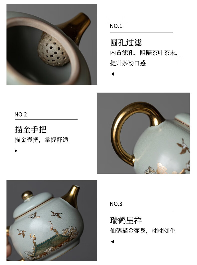 京峰阁 功夫茶具套装 茶壶汝窑瑞鹤呈祥盖碗茶杯可开片高档轻奢家用送礼 瑞鹤呈祥贵妃壶套装 6人饮 11件