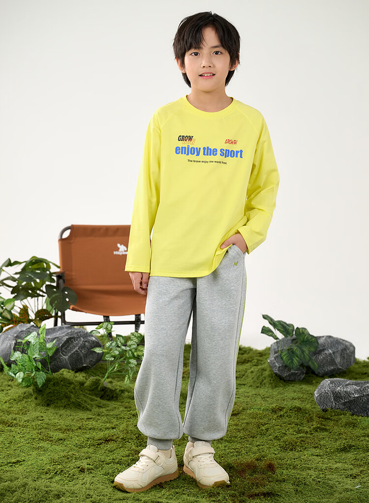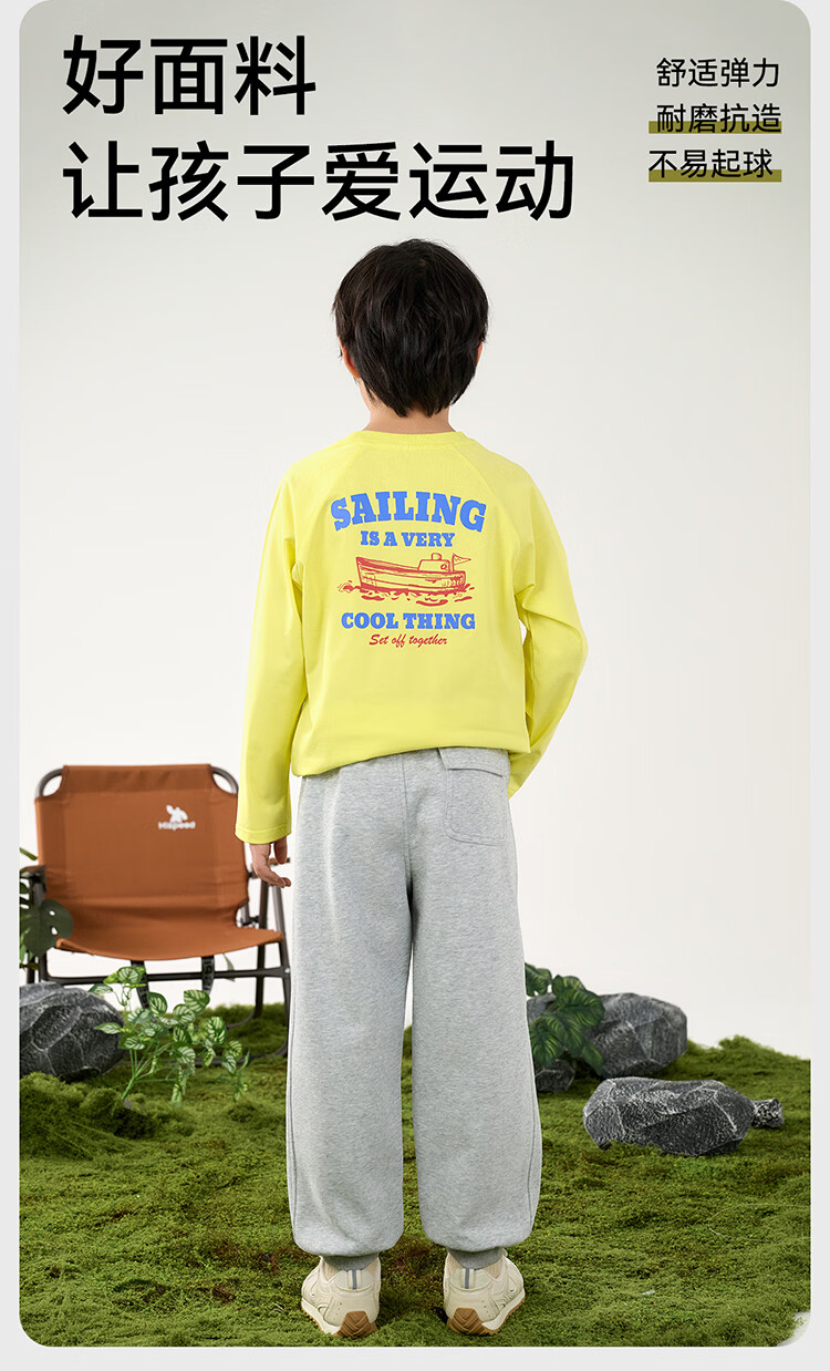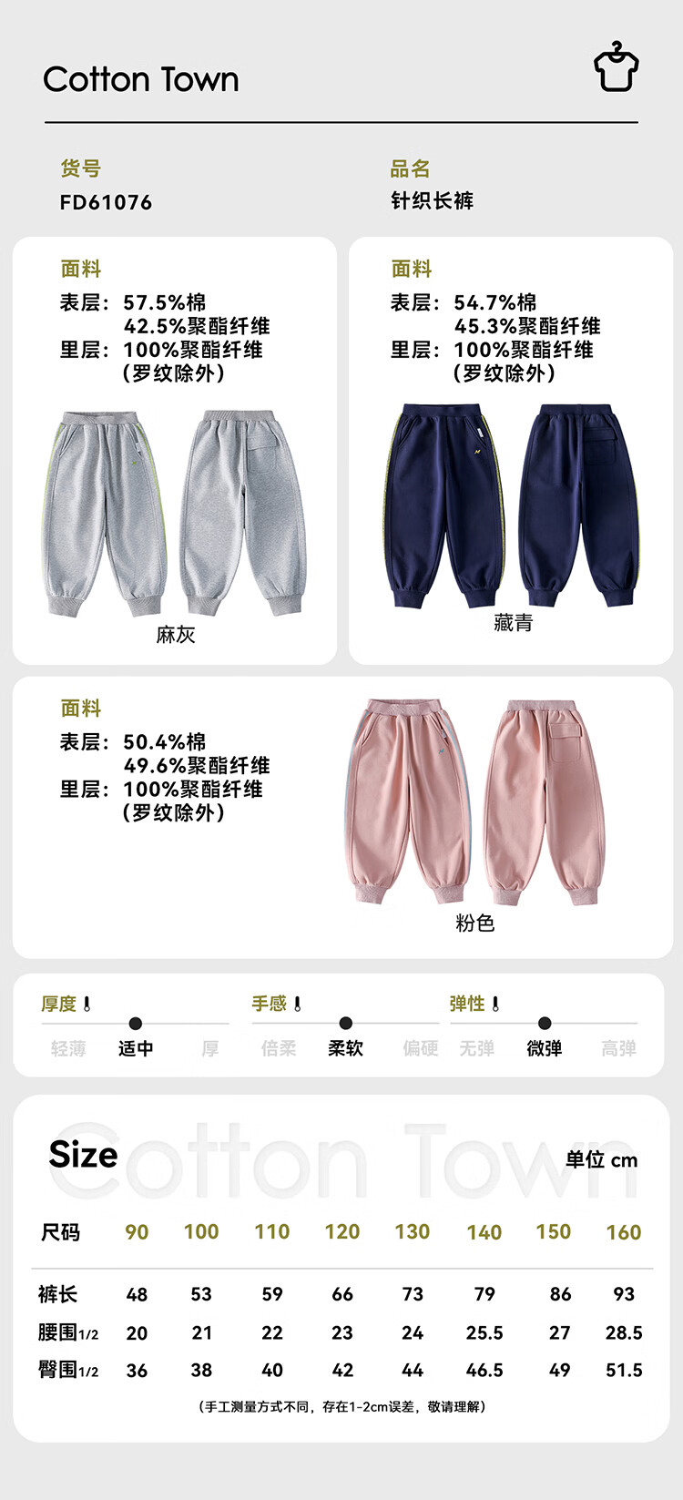 棉花堂(cottontown)【不易起球】棉花堂童装儿童长裤春秋新款裤子女童男童抗菌校园裤 麻灰 90 90/50