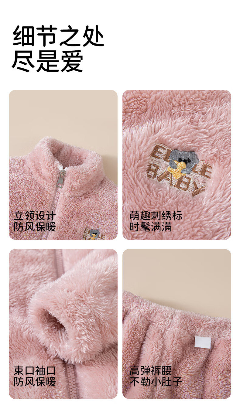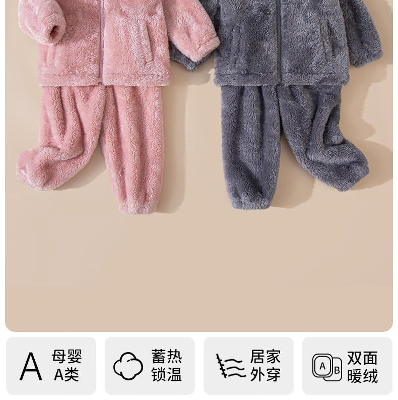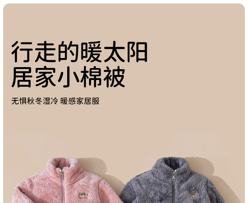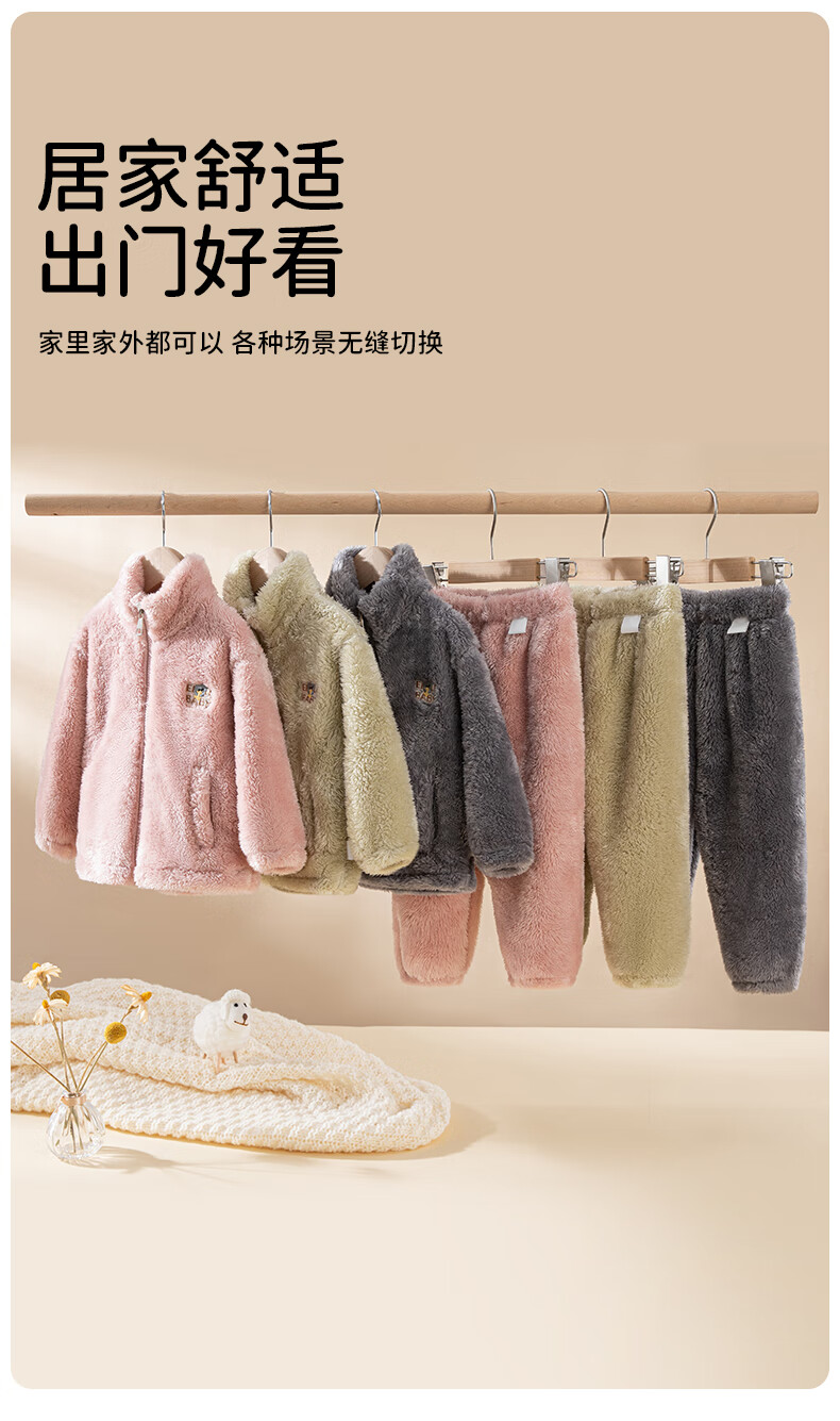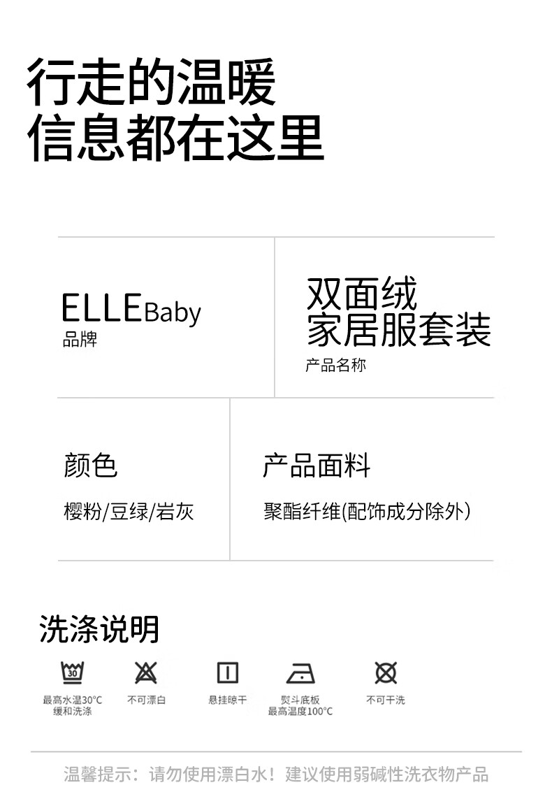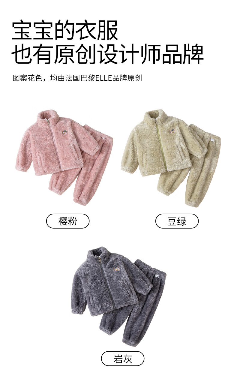 ELLE BABY童装儿童家居服男女童珊瑚绒套装宝宝秋冬加厚睡衣保暖不起球 灰调 100 【推荐身高95cm-110cm】