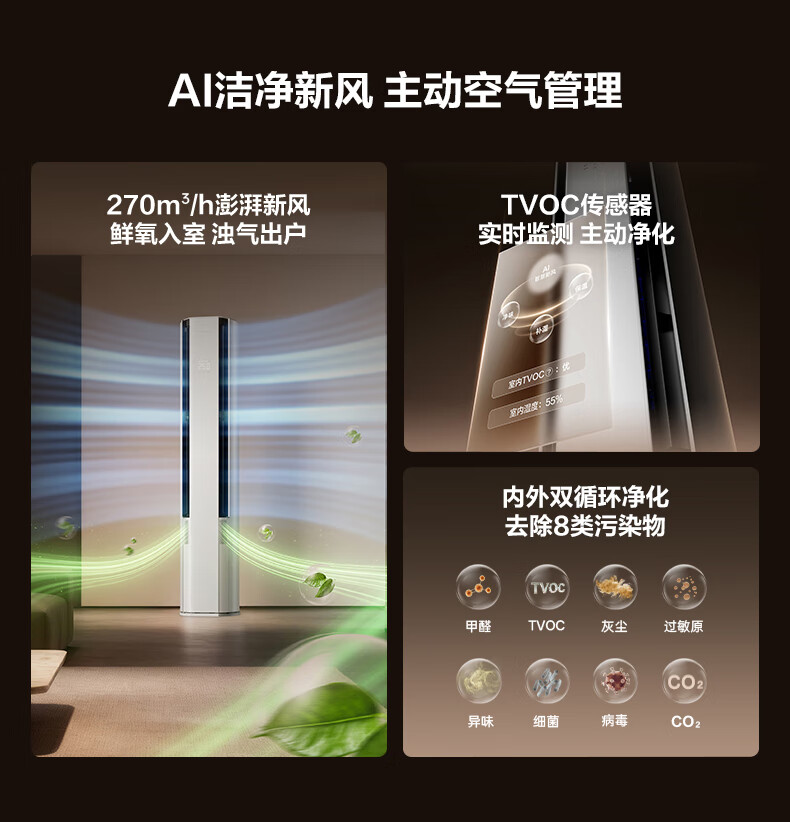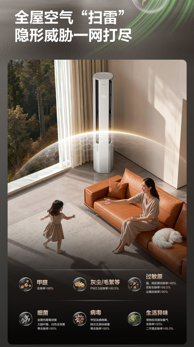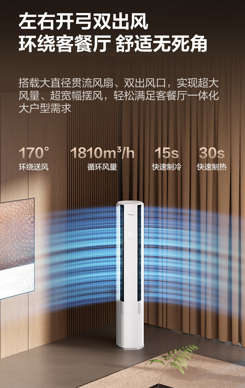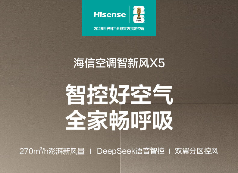 海信空调智新风X5 世界杯定制空调 3匹大新风量 双排铜管 分区控风 语音智控柜机KFR-72LW/X5E1-1