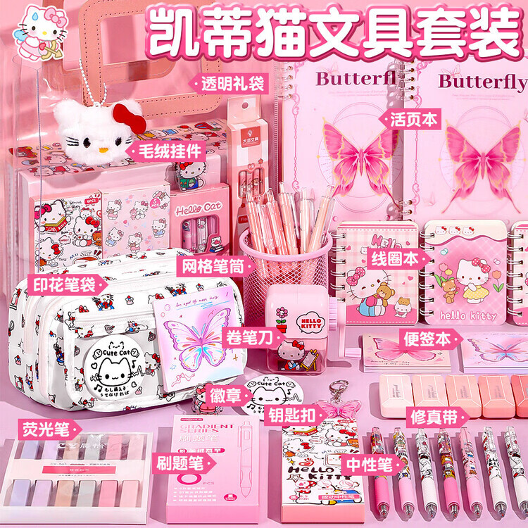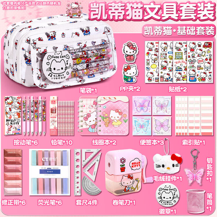 嘉觅2026新款kt猫咪小包笔袋女学生可爱大容量高颜值小众学生文具盒初中生铅笔盒多功能多层文具收纳袋 kt猫笔袋/送便签本+贴纸