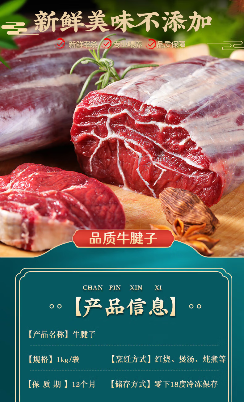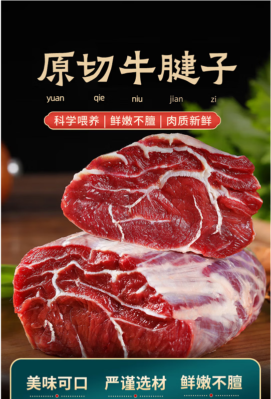真原切牛腱子牛吊龙不打水筋膜油脂≤15%国产谷饲安格斯牛肉烤肉 (甄选主推)不带芯原切牛腱4斤