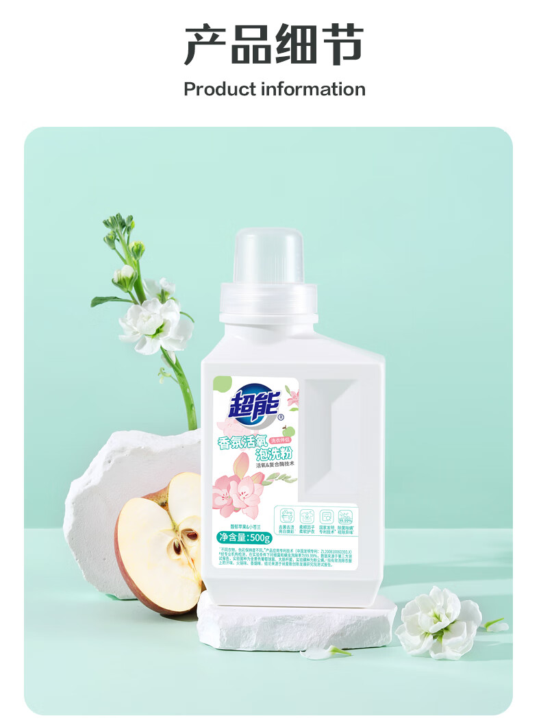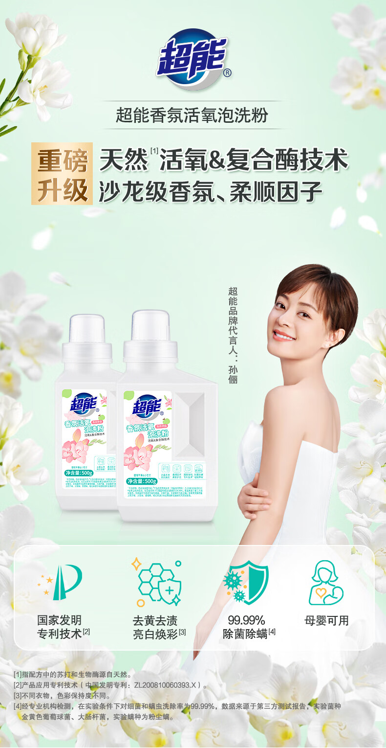 超能泡洗粉去黄增白爆炸盐活氧&复合酶技术亮白去渍除菌除螨孕婴可用 【香氛泡洗粉】500*3瓶