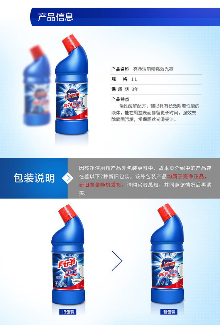亮净强力光亮洁厕液1L 洁厕灵 马桶清洁剂 去味清新 柠檬香 有效抑菌