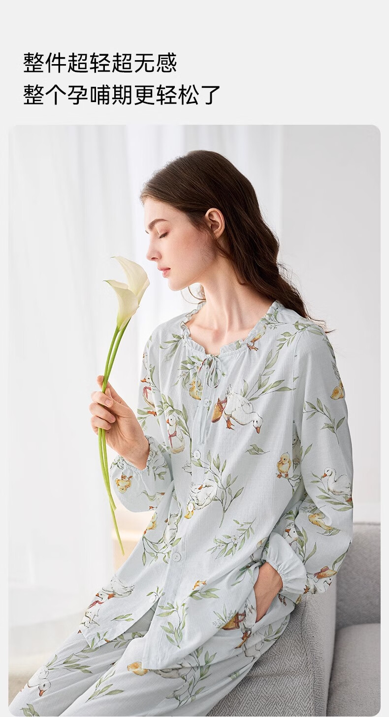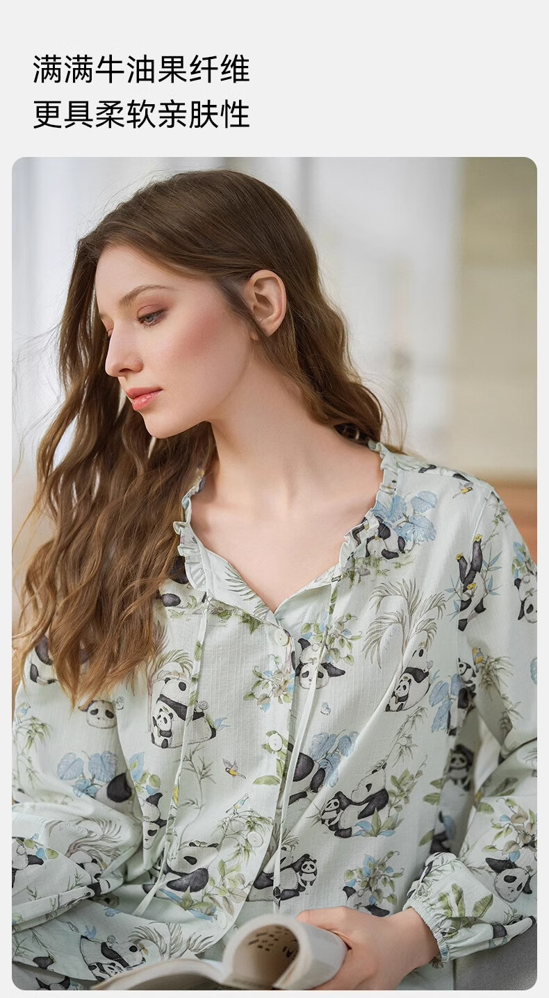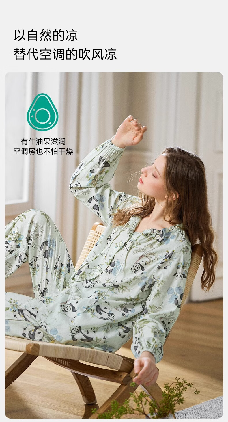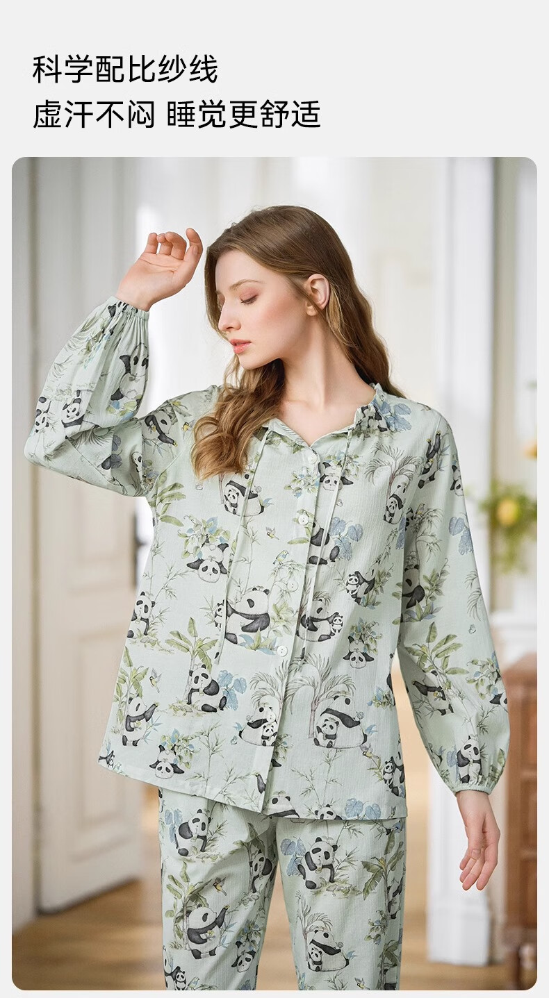 嫚熙(EMXEE)春夏季月子服牛油果纱罗薄款孕妇睡衣产妇产后哺乳家居服套装 竹园熊猫-两件套(无哺乳口) XL(适合135-160斤)