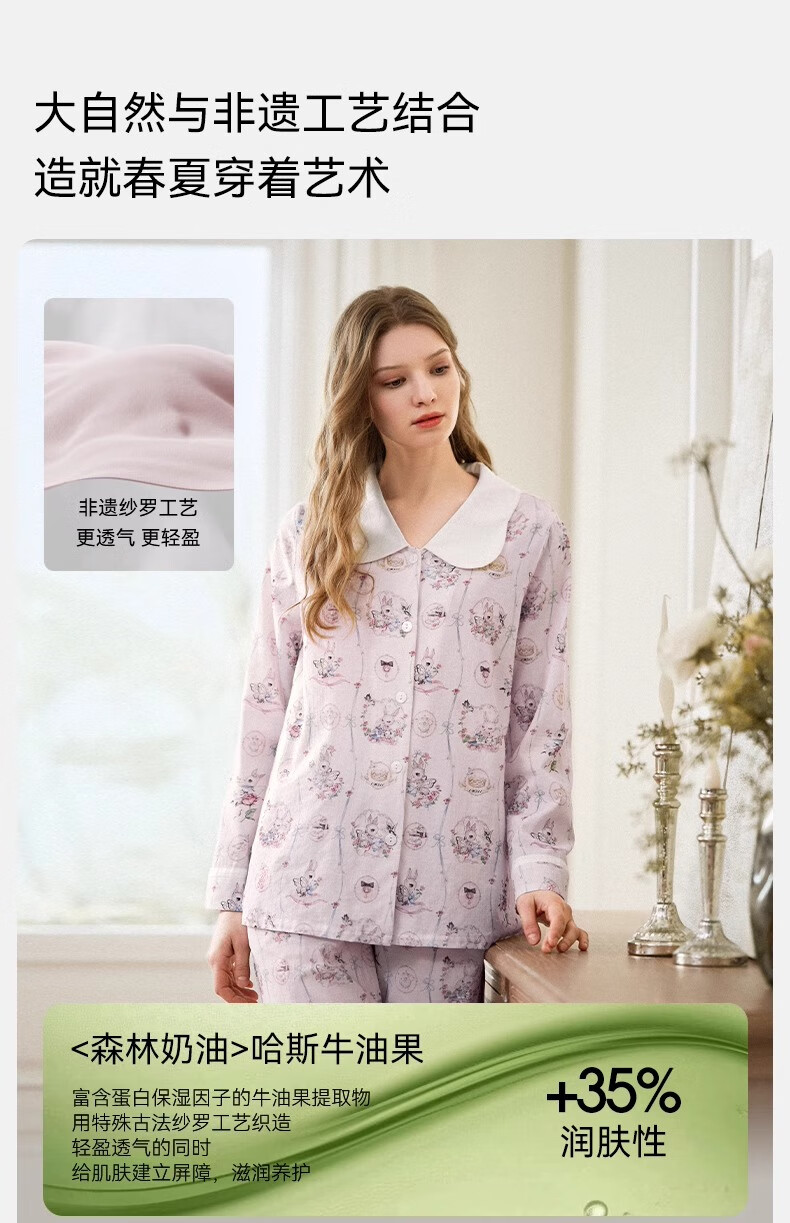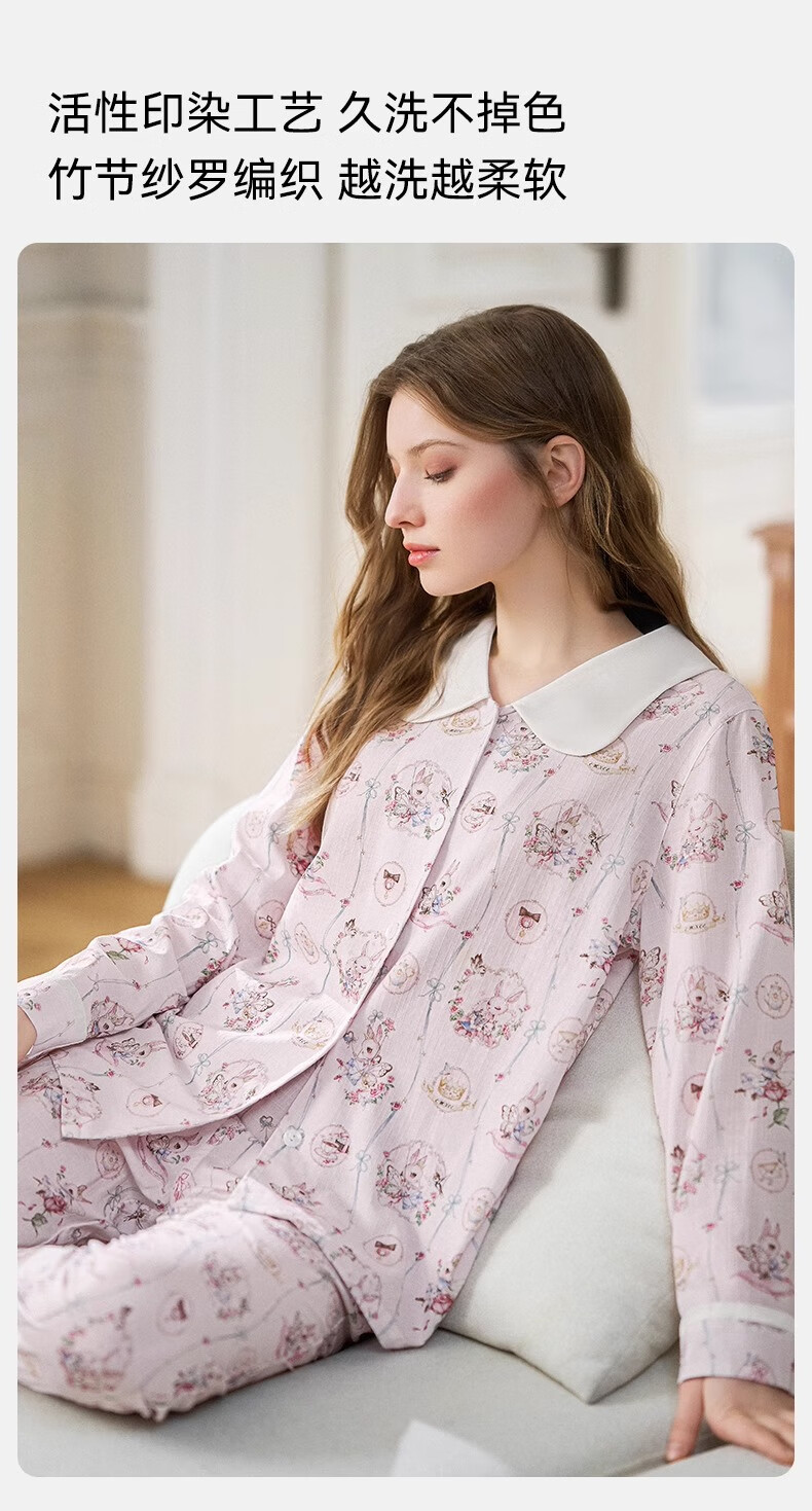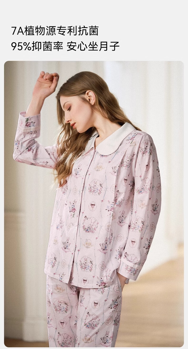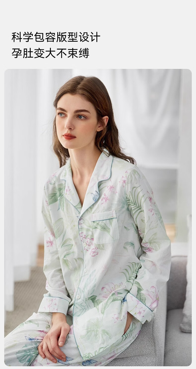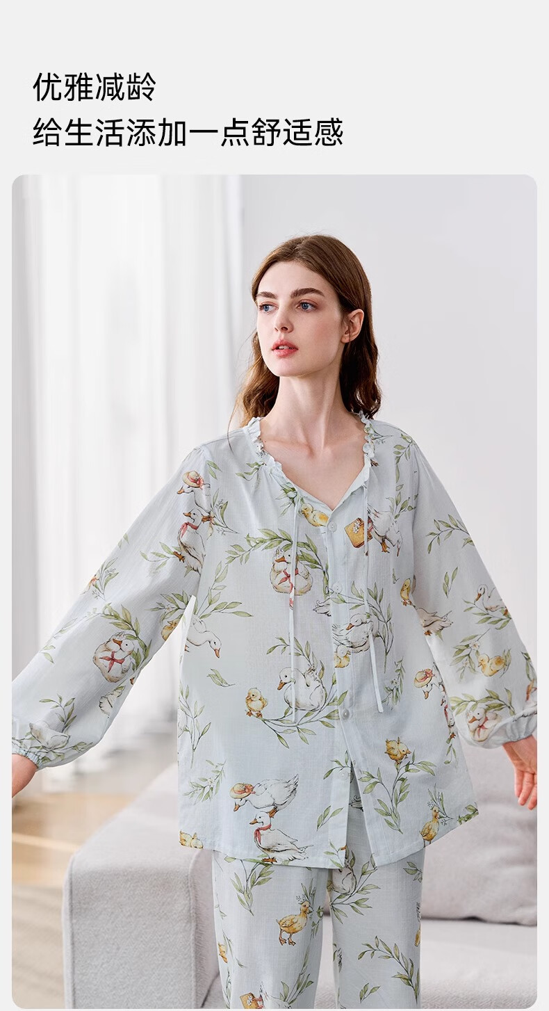 嫚熙(EMXEE)春夏季月子服牛油果纱罗薄款孕妇睡衣产妇产后哺乳家居服套装 竹园熊猫-两件套(无哺乳口) XL(适合135-160斤)