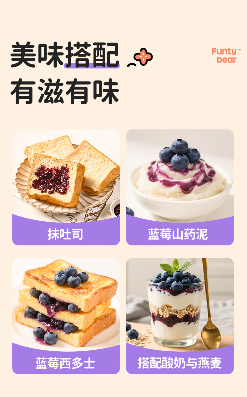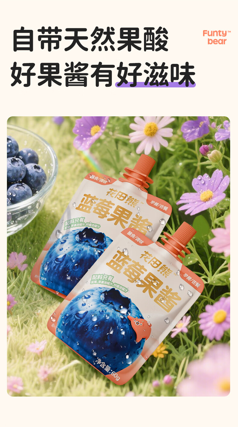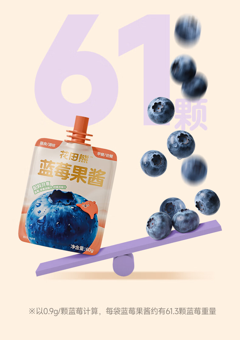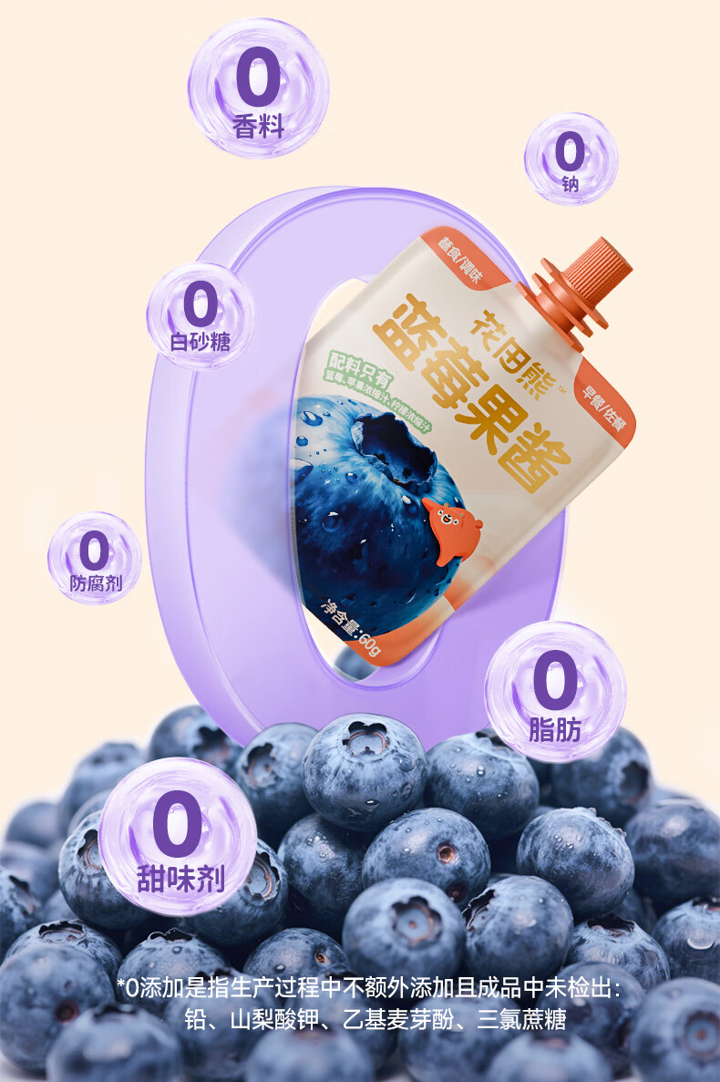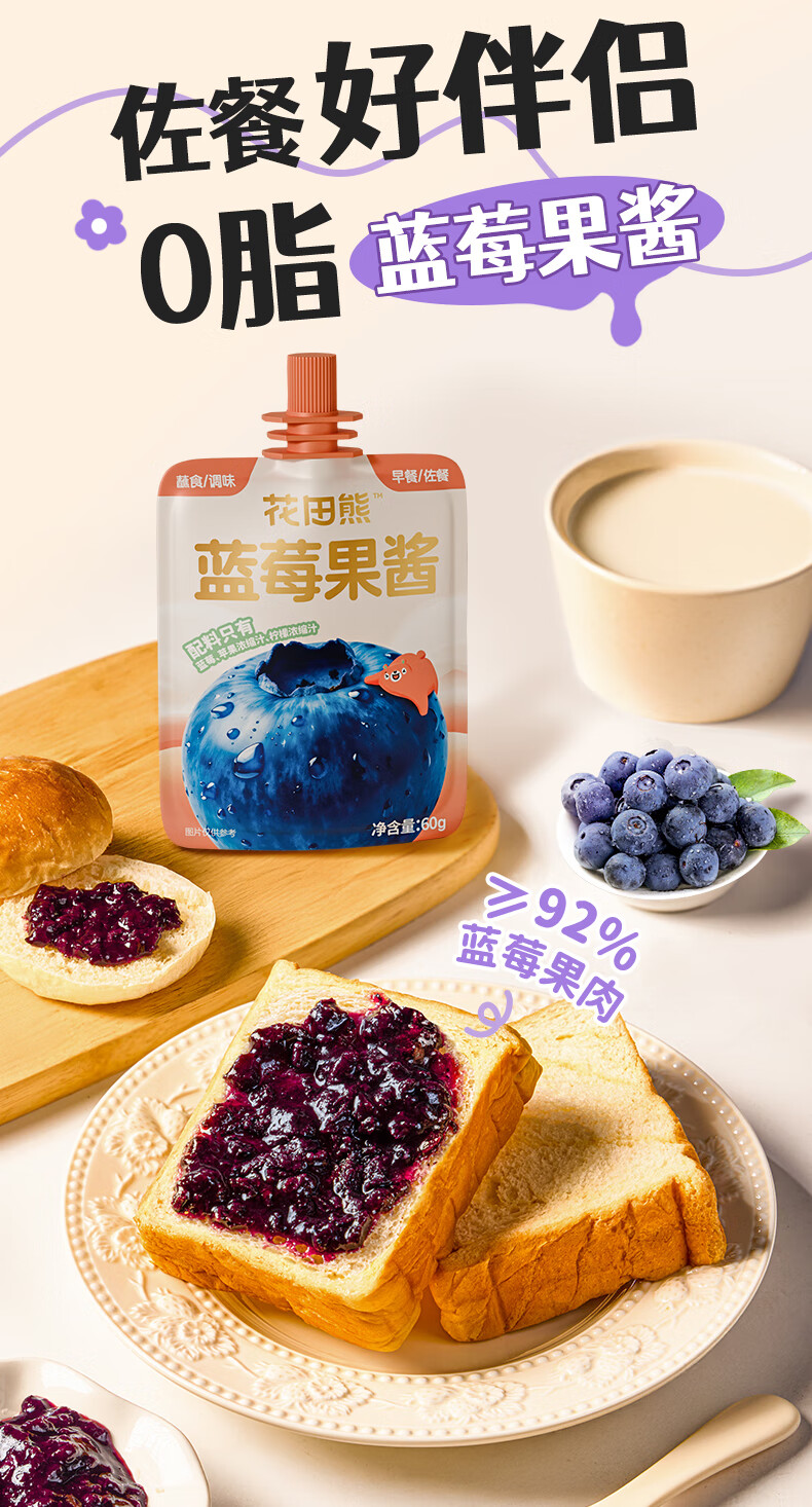 花田熊蓝莓酱果酱无添加防腐剂儿童健康大颗粒小包装果酱涂抹面包酱 【划算装】蓝莓果酱 60g*3袋