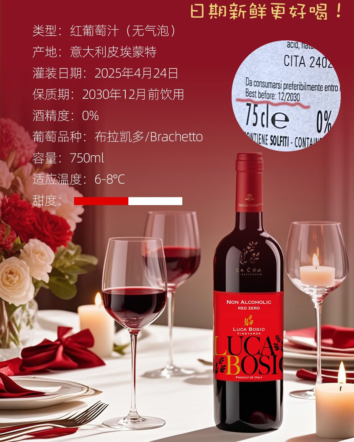 博颂意大利无醇零度无酒精起泡气泡葡萄汁CIMICKY ZERO 【混双】静态无醇+气泡无醇