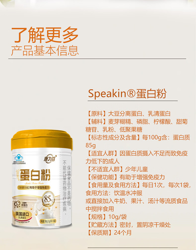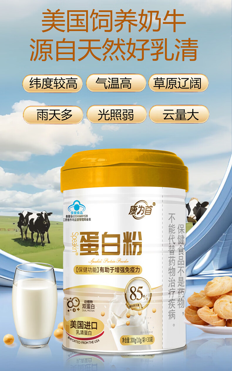 康为首 保健蛋白粉分离乳清 动植物蛋白质大豆卵磷脂健身人士营养补充 85%高蛋白质营养粉 600g*2罐