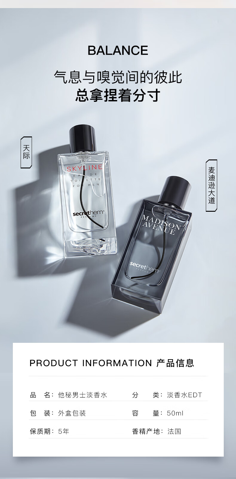 他秘麦迪逊大道淡香水男士香水木质香调持久留香送男生礼物礼盒 麦迪逊大道【新款茶香】