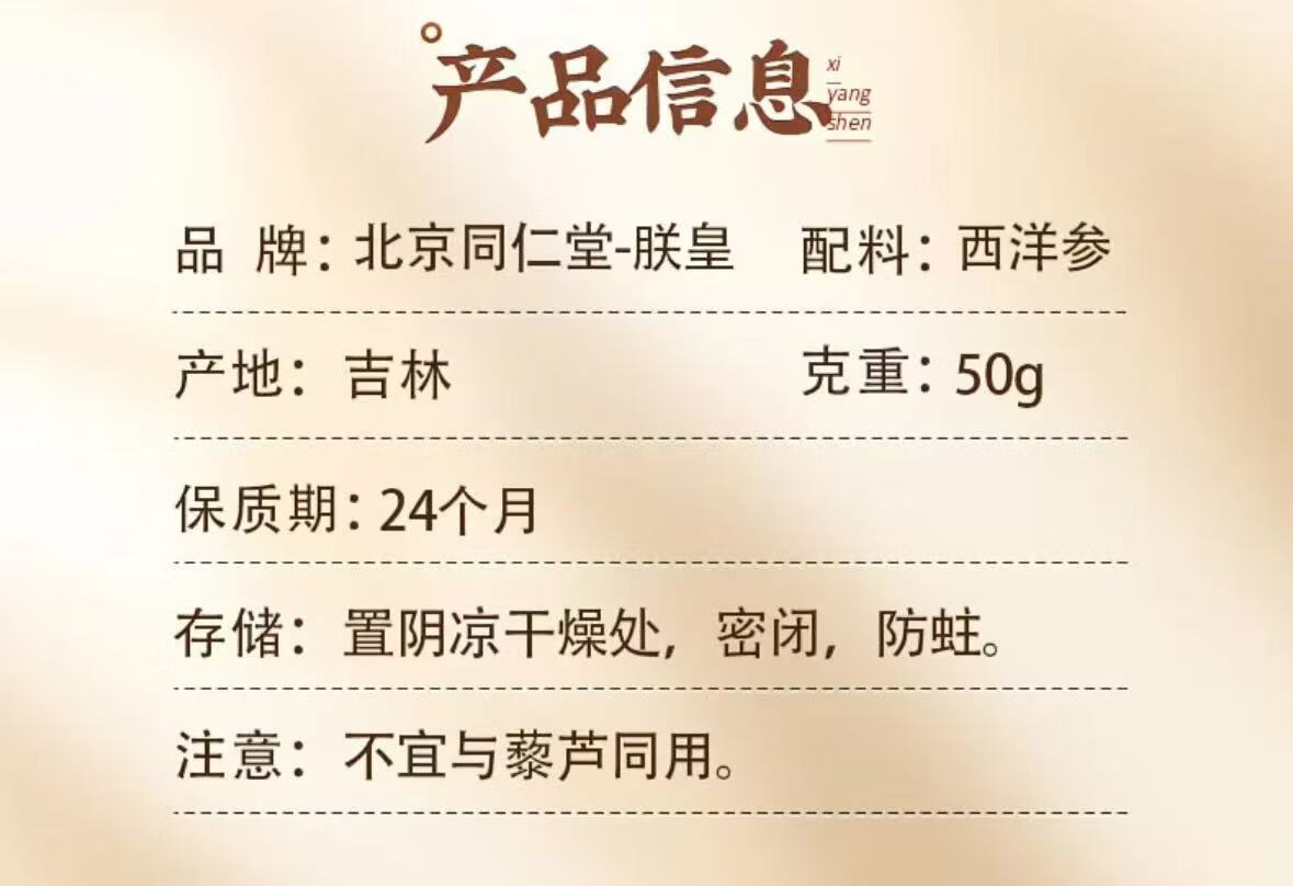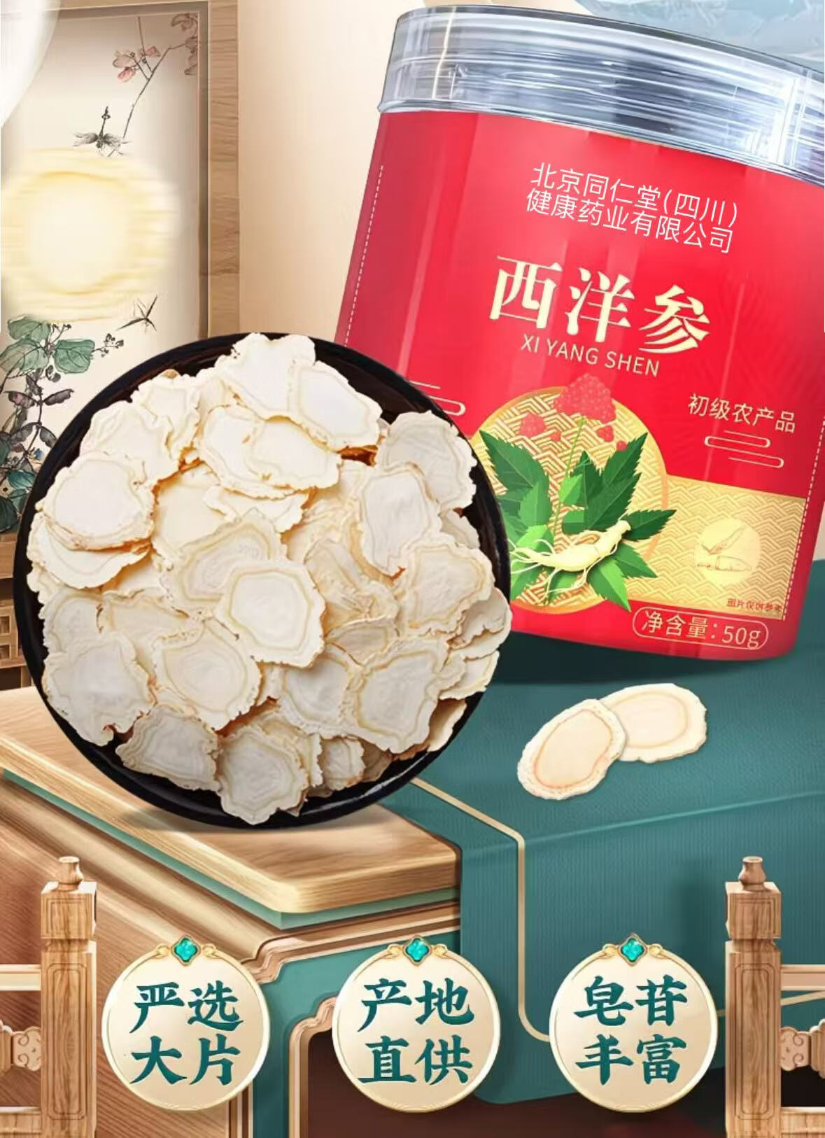 朕皇北京同仁堂西洋参切片含片花旗参长白山产地 西洋参 50g*2罐