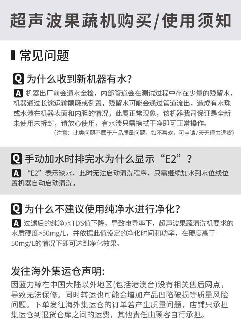 蓝力鲸超声波果蔬清洗机家用洗菜机农药残留清洗食材净化机 【双进水模式】双高频超声波