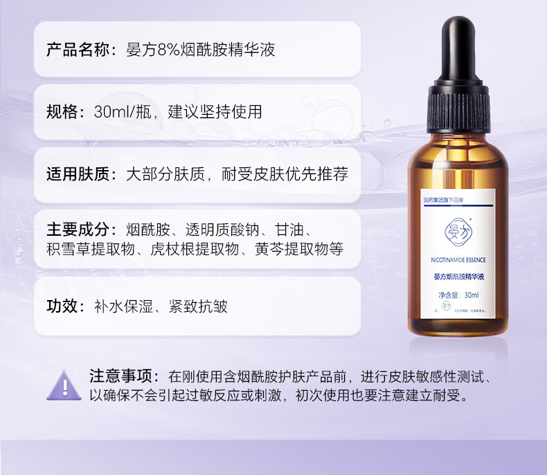 晏方8%烟酰胺精华抗皱紧致面部保湿润肤精华液 2瓶替换装(30ml*2)