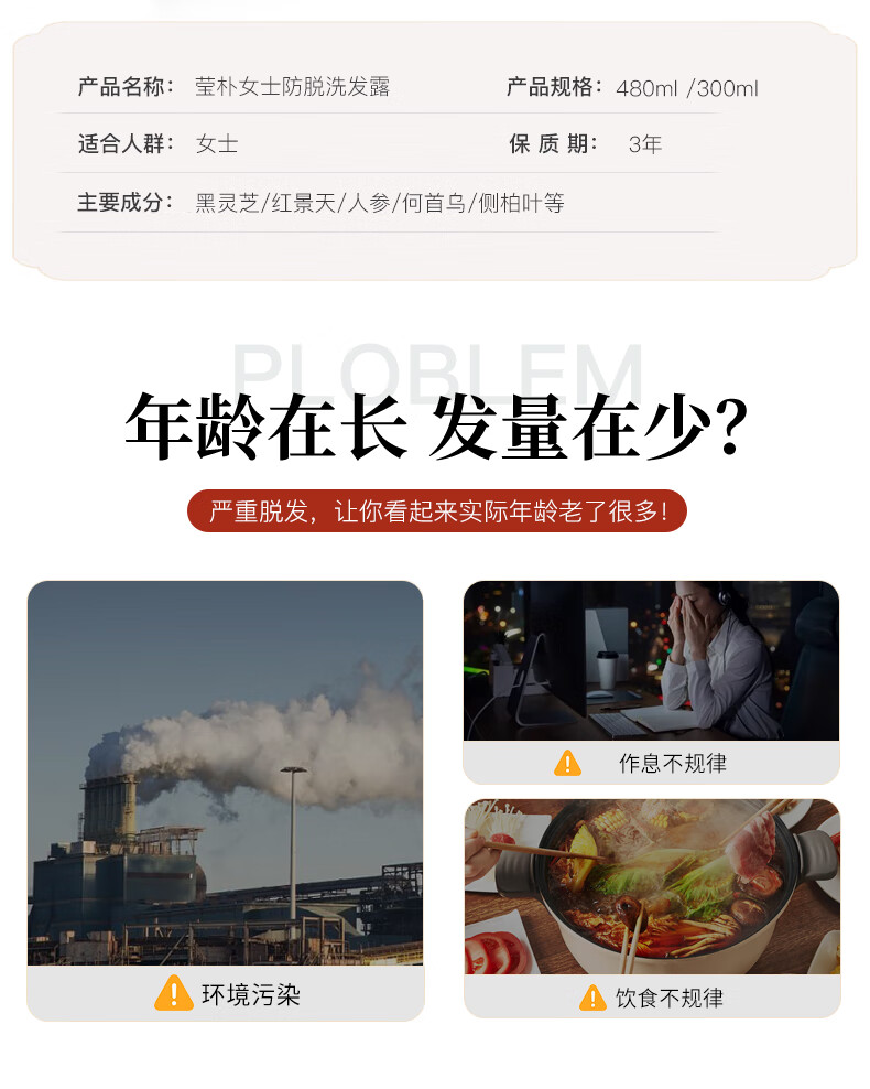 莹朴防脱发洗发水女士防脱发防脱发洗发露减少掉发 480ml