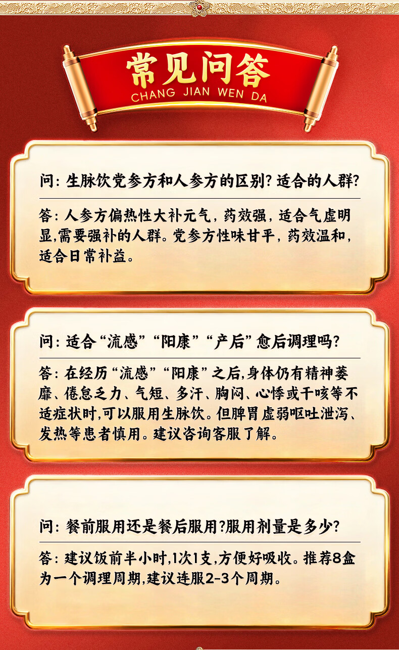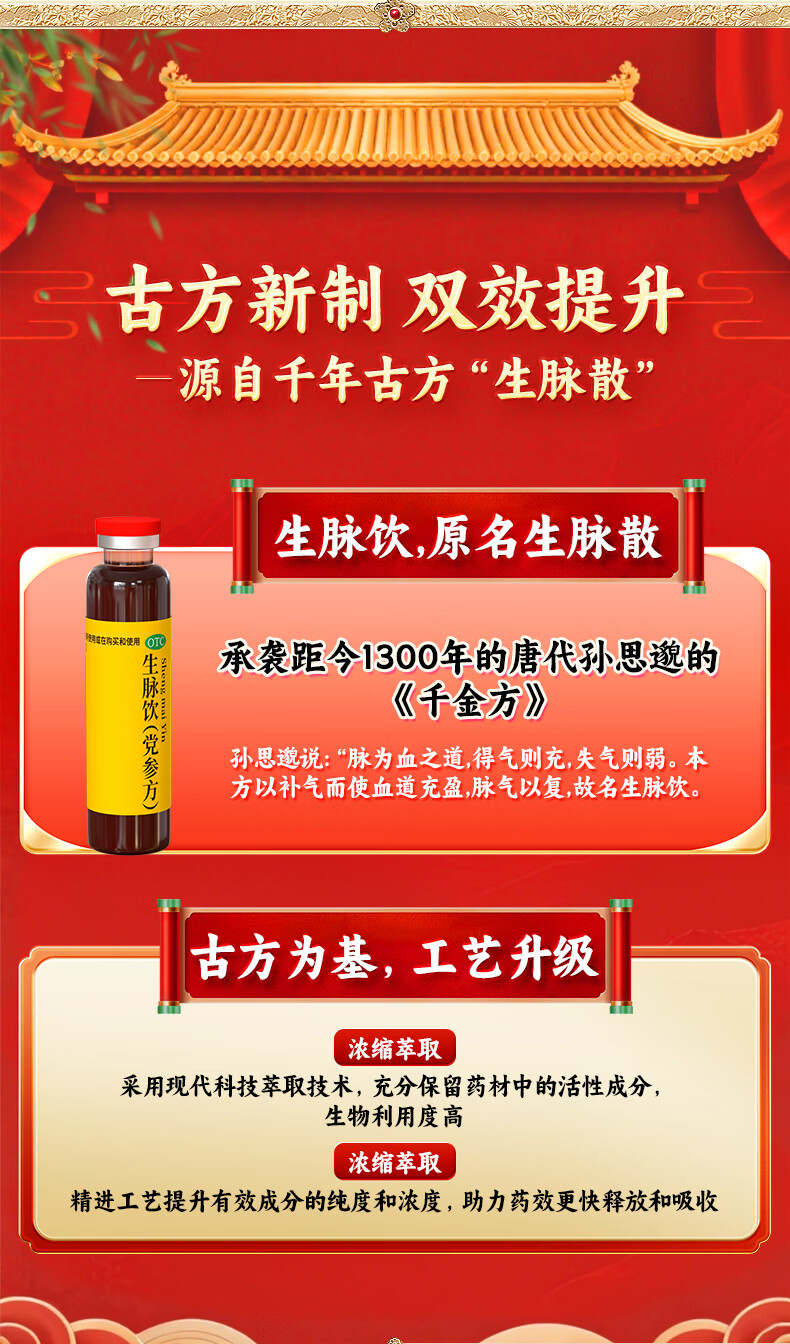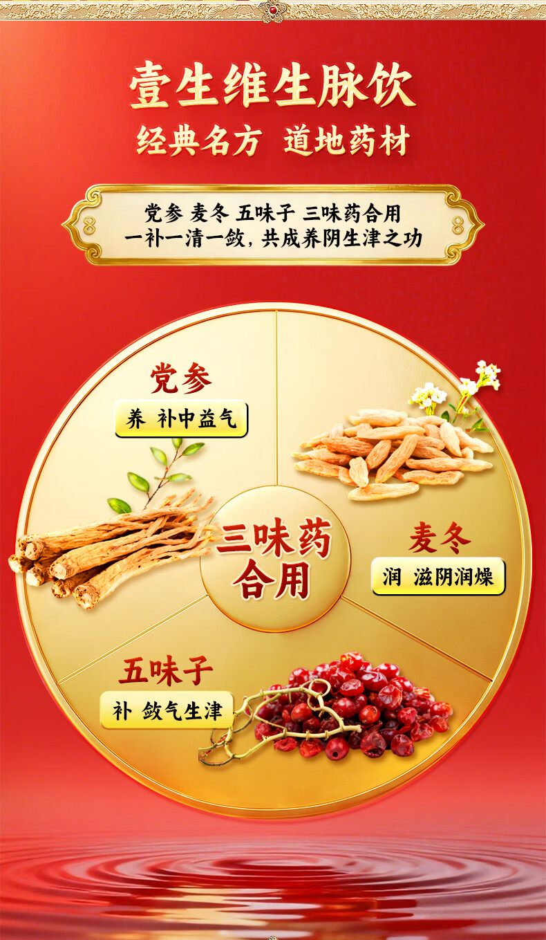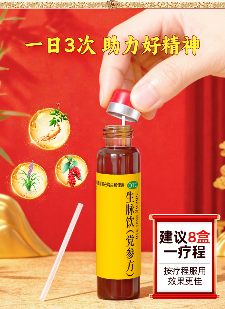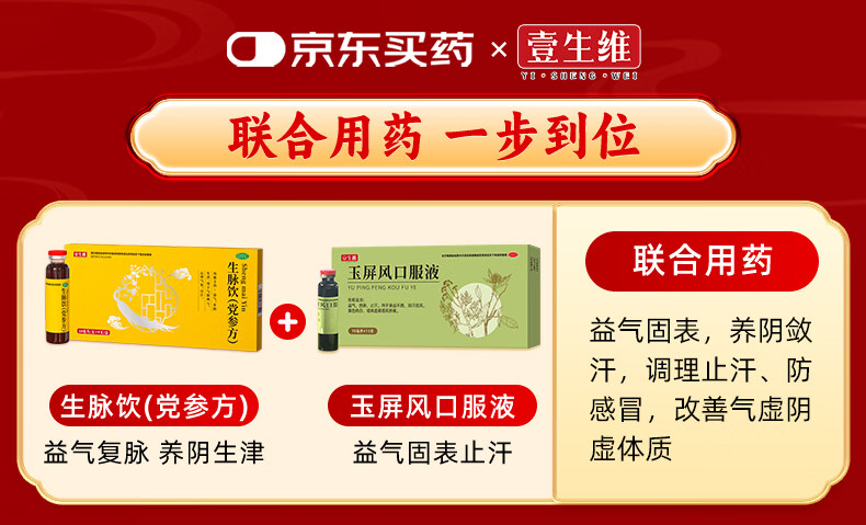 [壹生维]生脉饮(党参方) 10ml*9支 5盒装 益气养阴生津气阴两亏心悸气短自汗补气血口服液女滋补品国药准字年货礼品袋装 礼袋装 送礼佳选