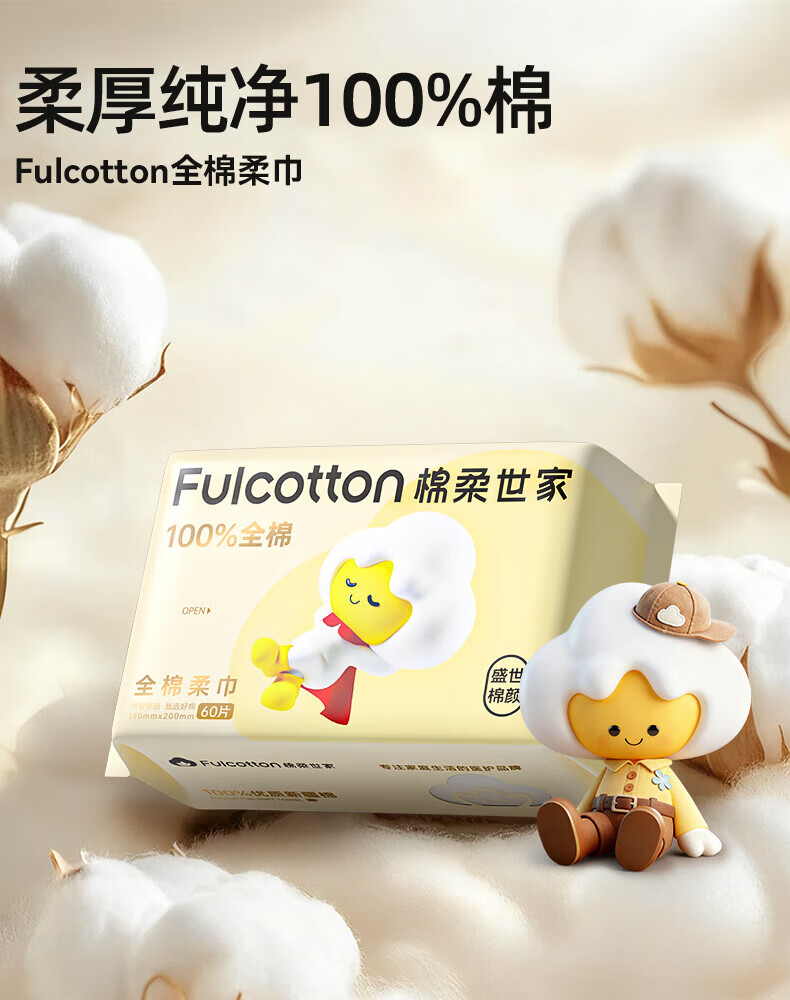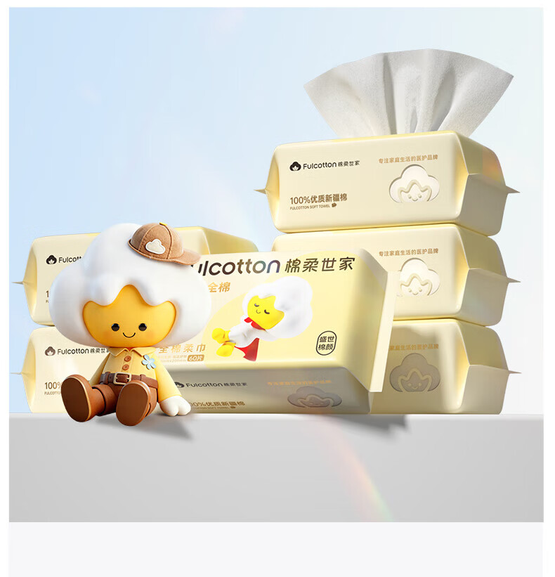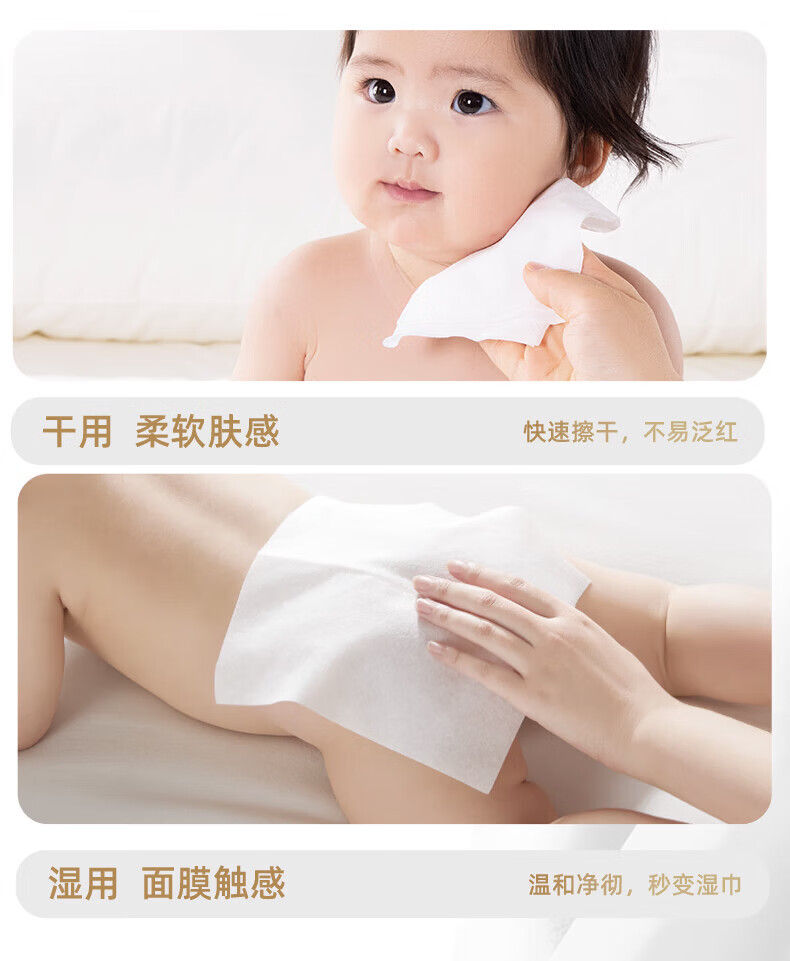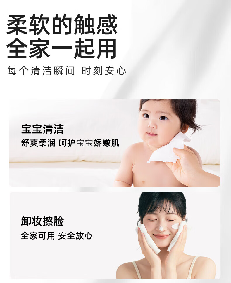 棉柔世家婴儿绵柔巾80抽洗脸巾加厚珍珠纹宝宝棉柔纸巾干湿两用可化妆卸妆 【100%纯棉】干湿两用 60抽*10