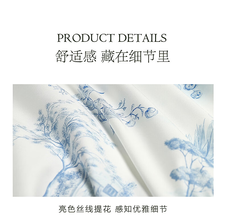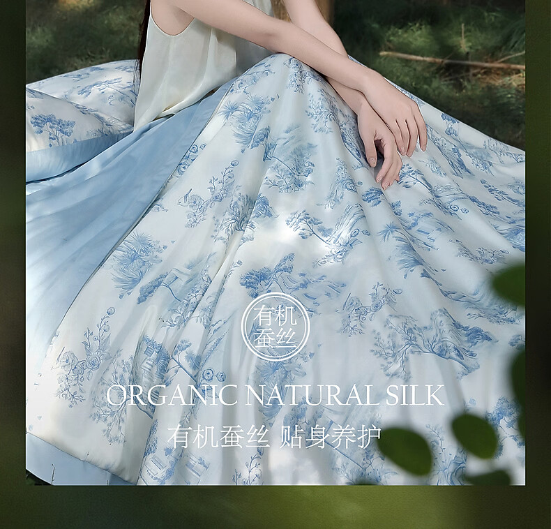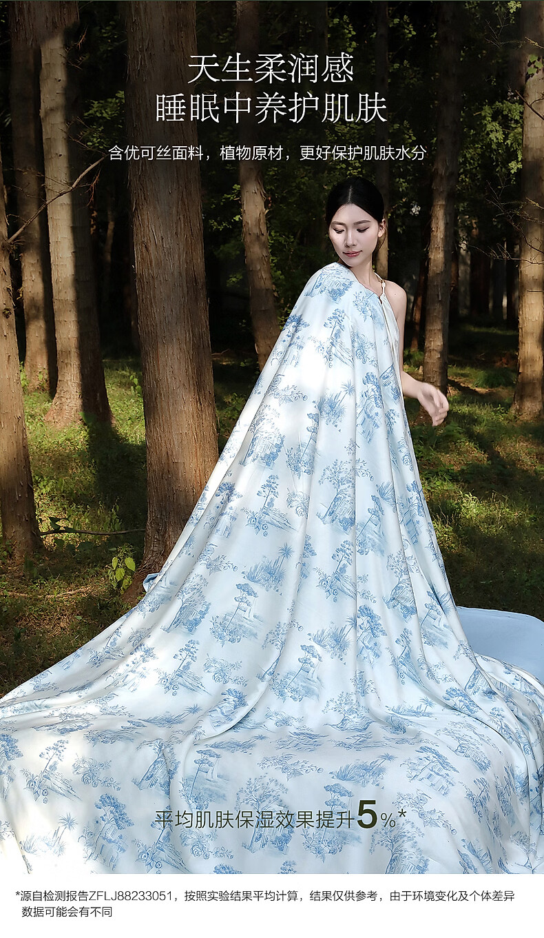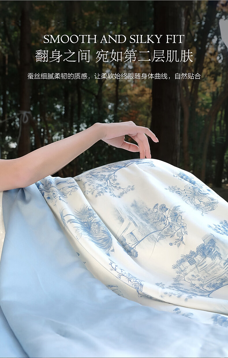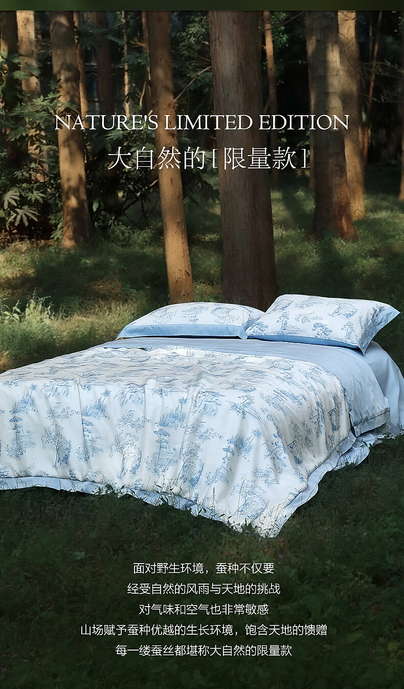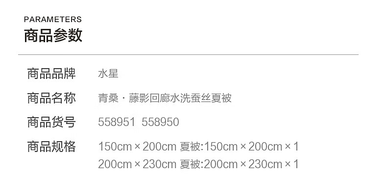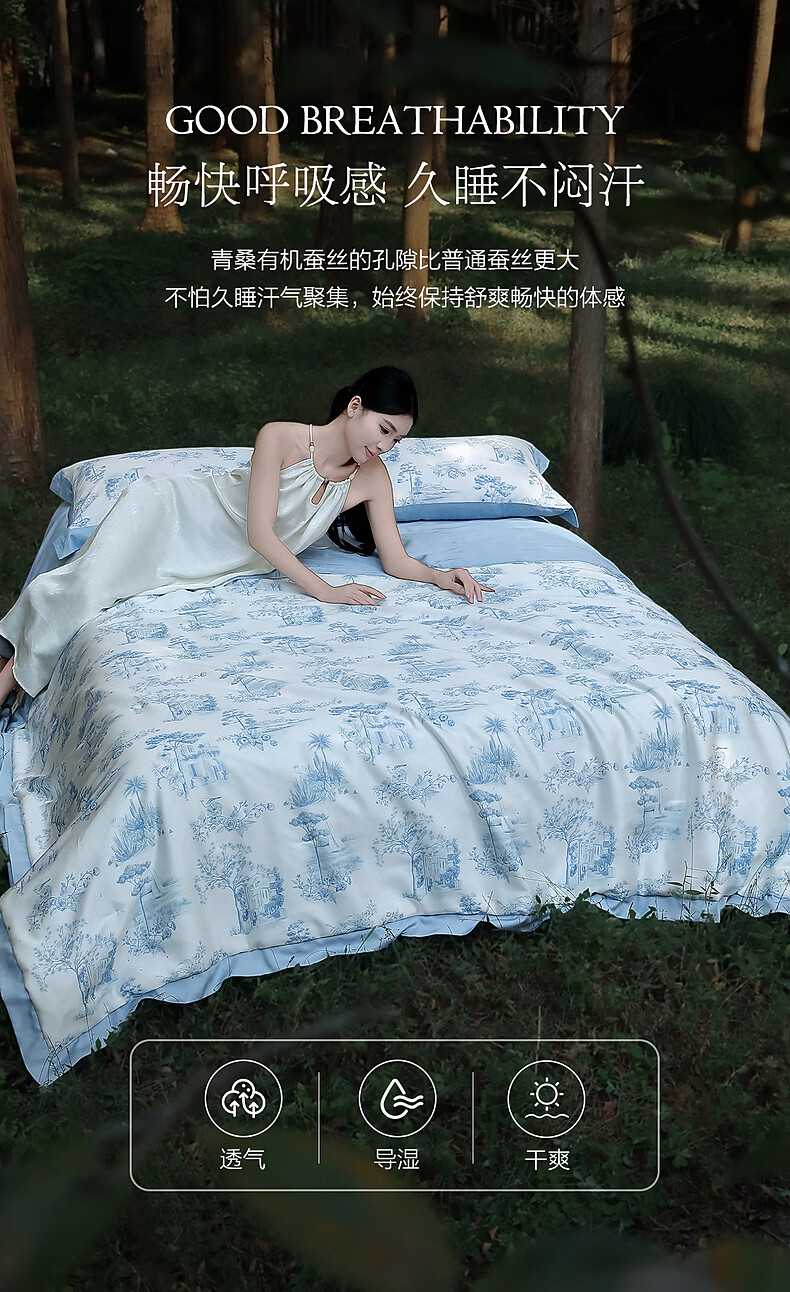 水星家纺蚕丝被100%蚕丝夏凉空调被夏季薄被子可水洗夏被 青桑·藤影回廊水洗蚕丝夏被 150cm*200cm