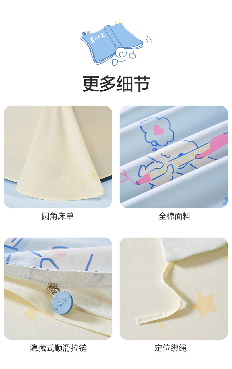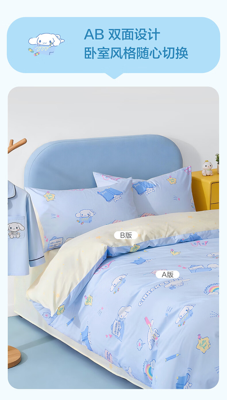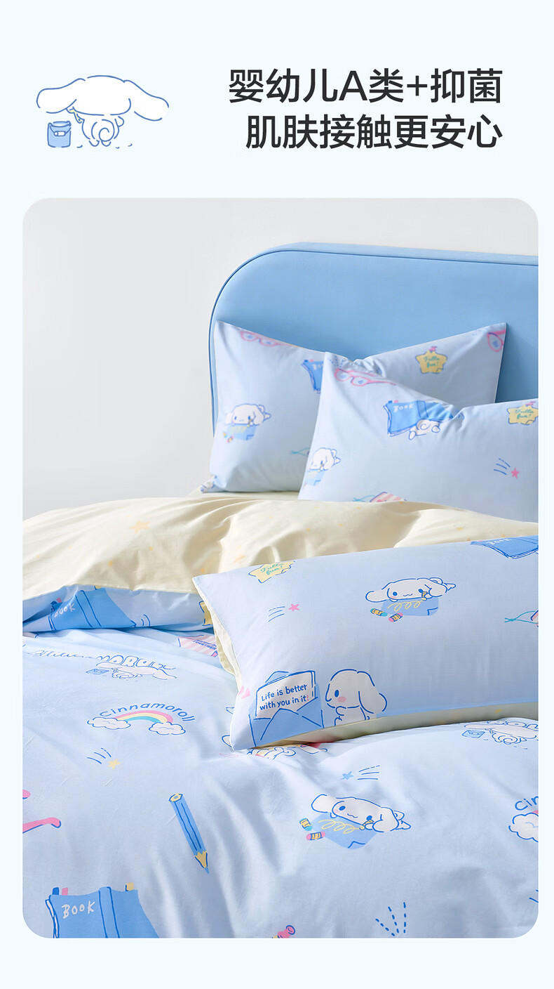 水星家纺四件套床上用品纯棉100%全棉婴幼儿A类儿童学生宿舍26年套件 夏日大耳狗 床单款 (被套150*210cm)