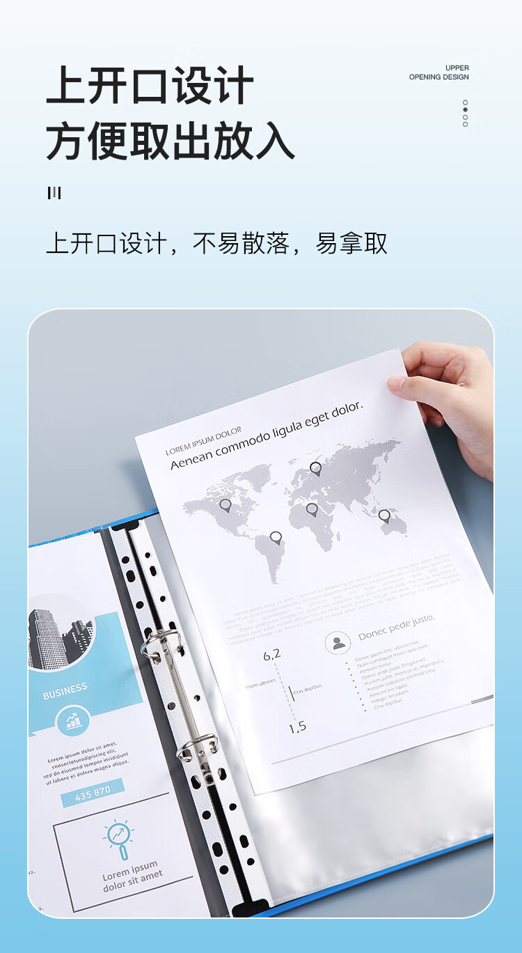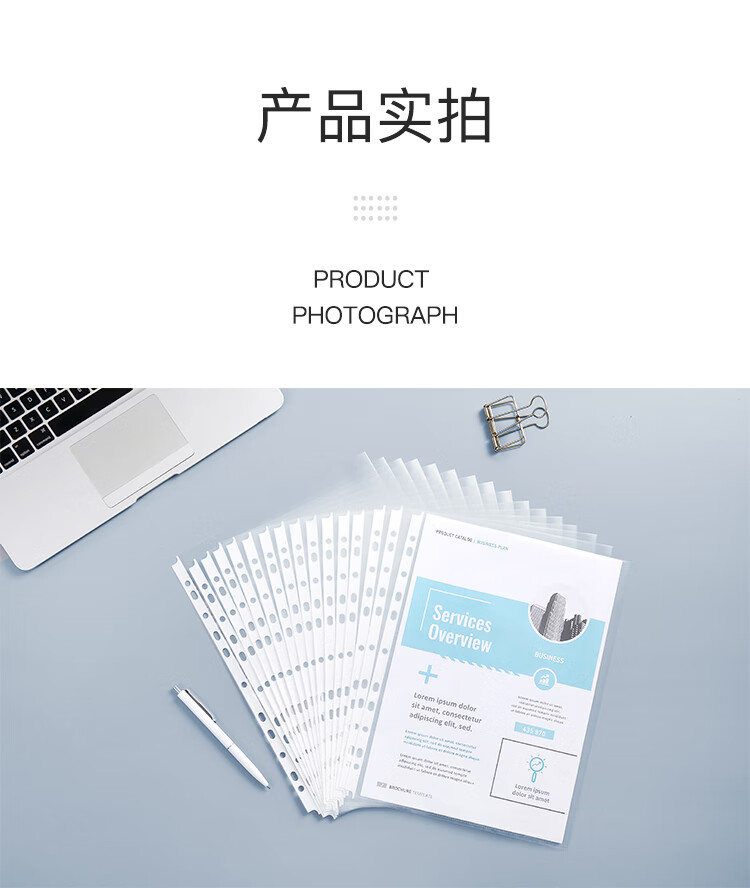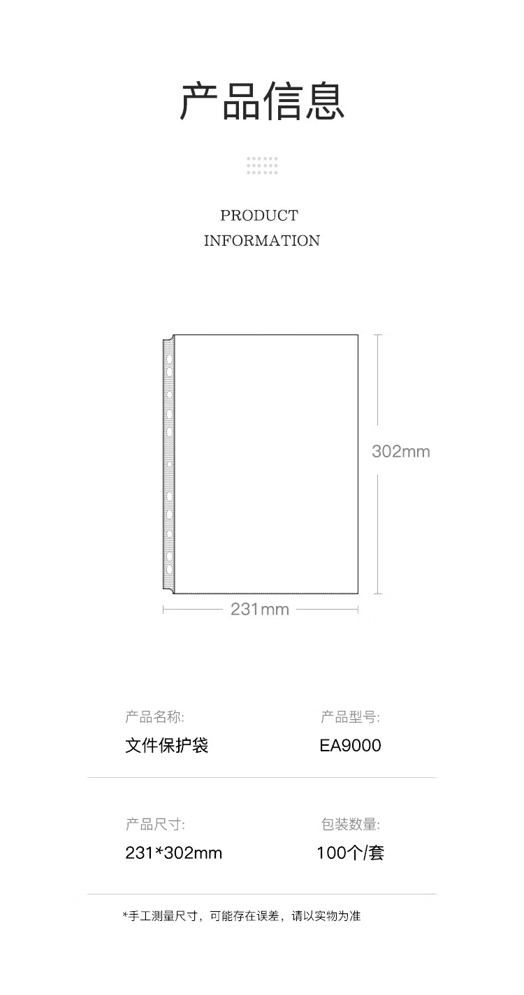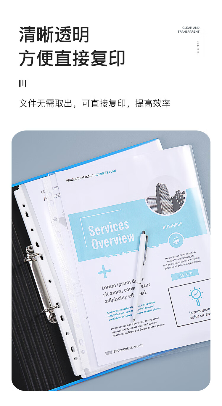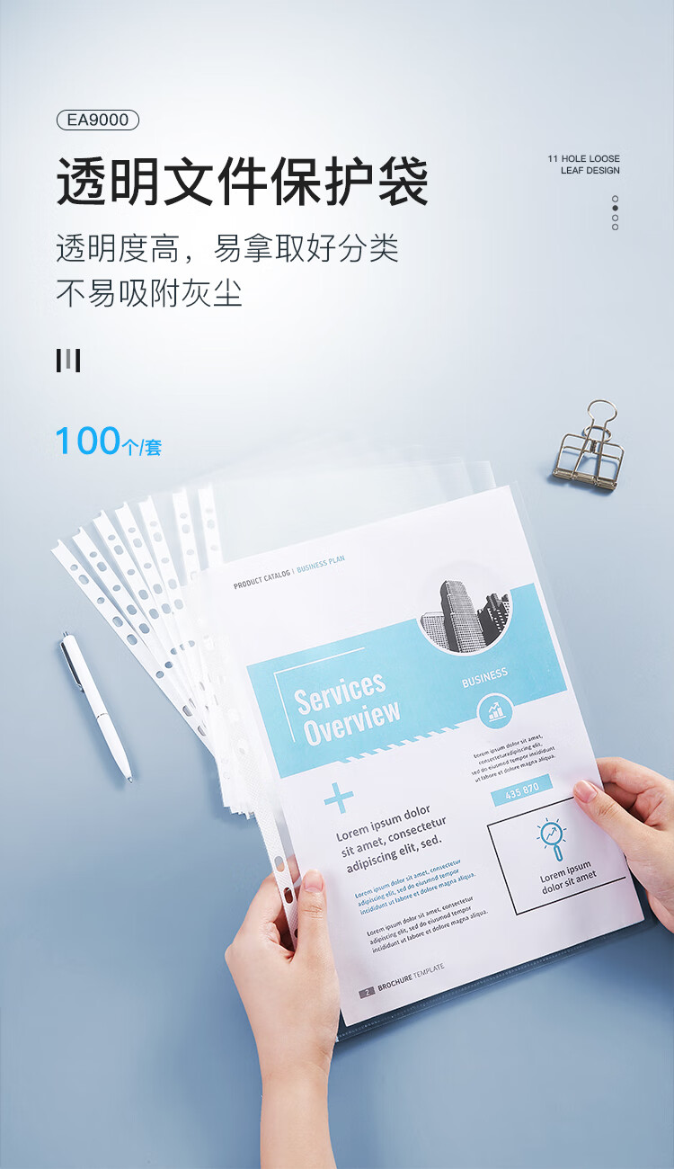齐心(COMIX)100只装11孔资料册文件袋活页替芯袋A4十一孔袋透明资料袋文件保护袋 搭配快劳夹使用EA9000