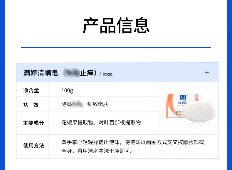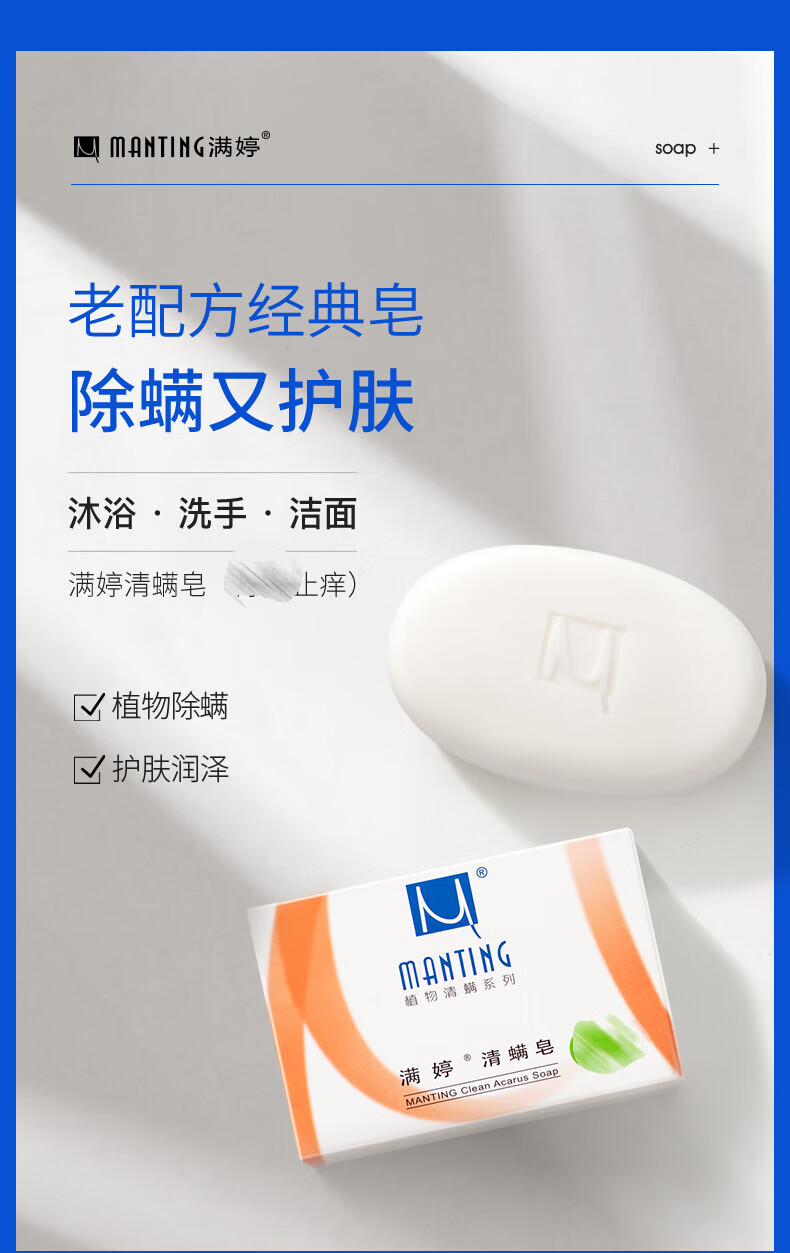 满婷(MANTING)清螨皂除菌止痒100g(螨婷除螨香皂温和肥皂去螨虫洁面乳沐浴露)