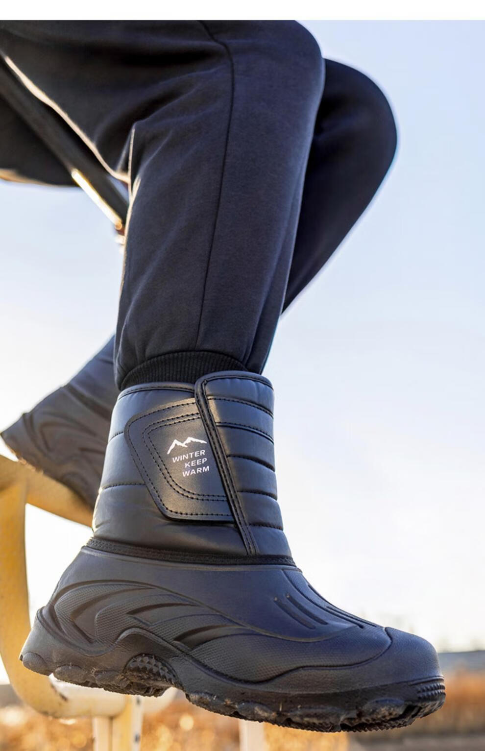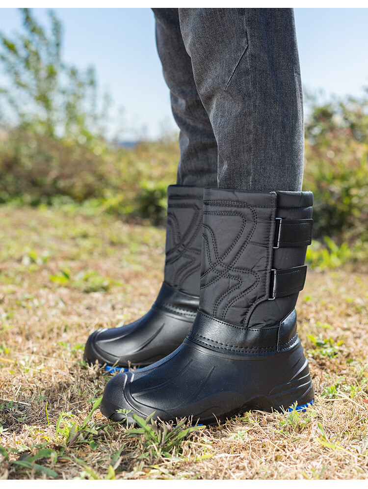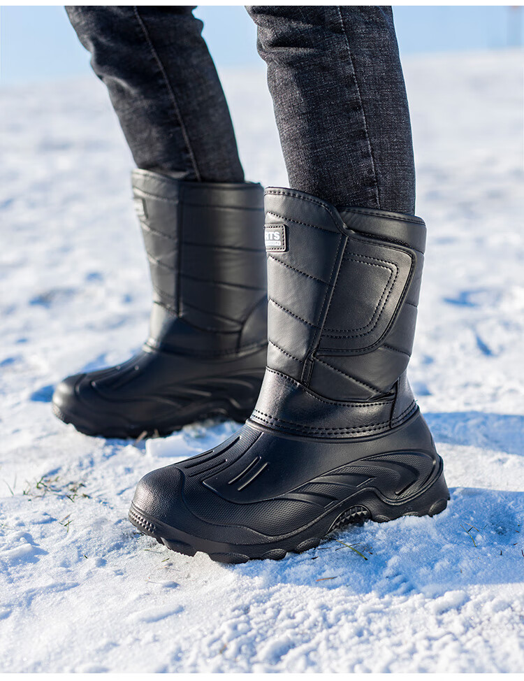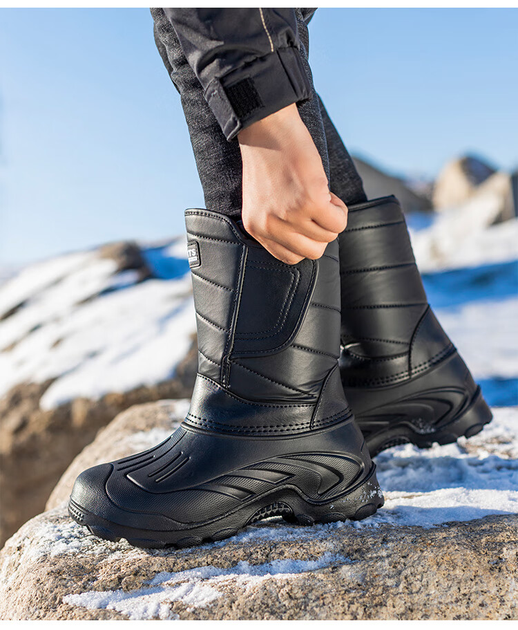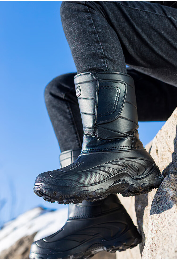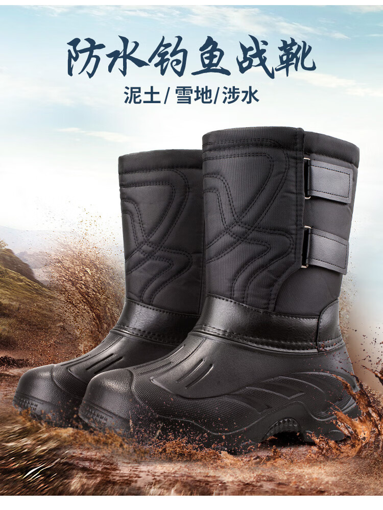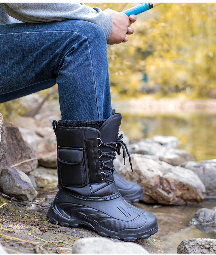 稻草人(MEXICAN)东北冬季户外雪地靴男鞋防滑保暖防水钓鱼靴子长筒加绒男士冰钓鞋 E2黑色粘扣 39