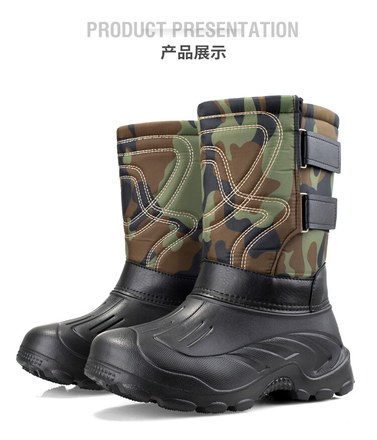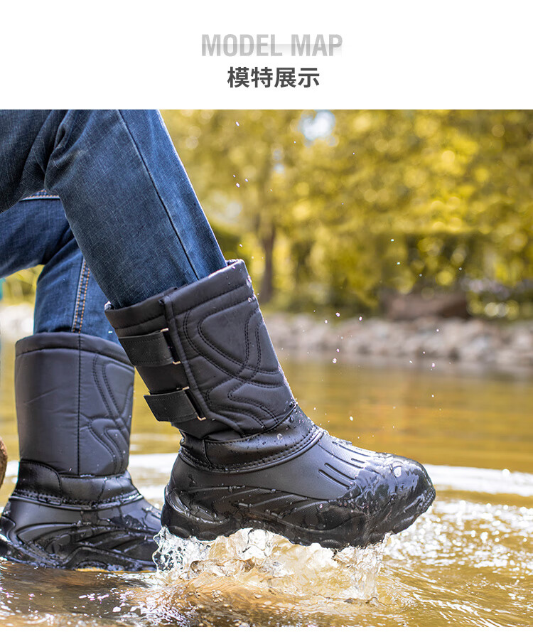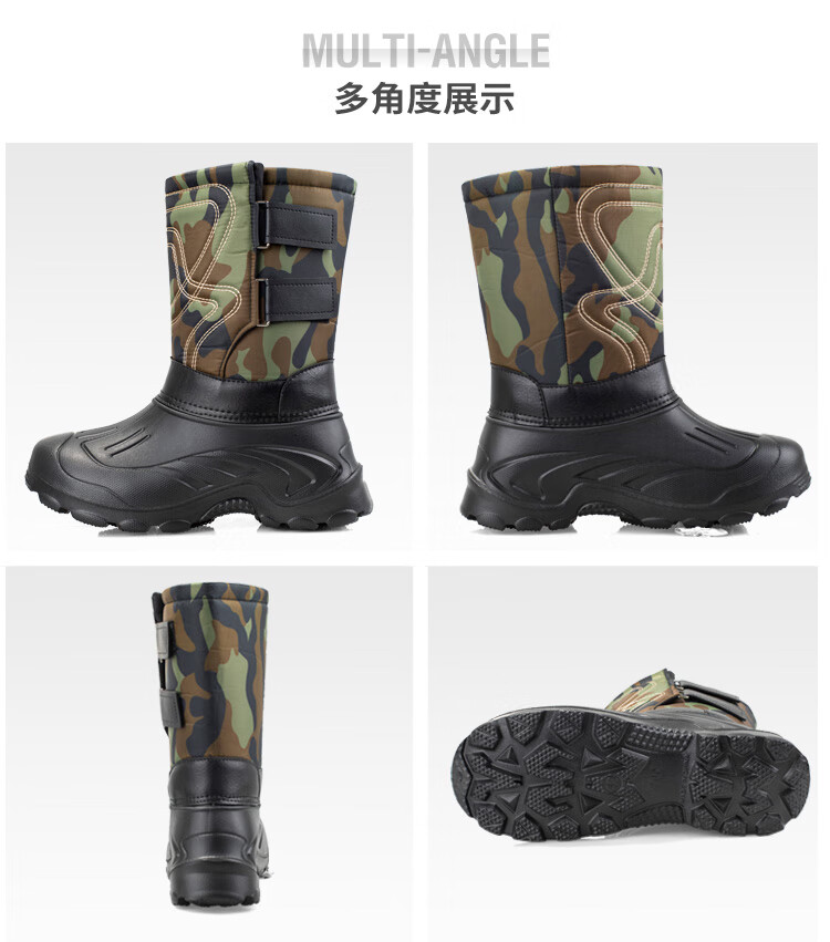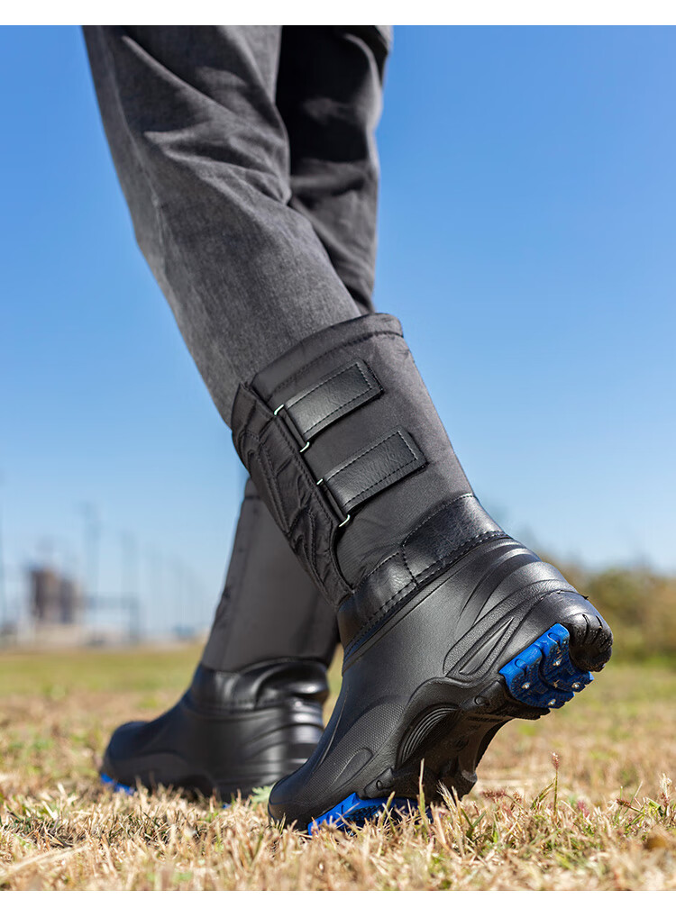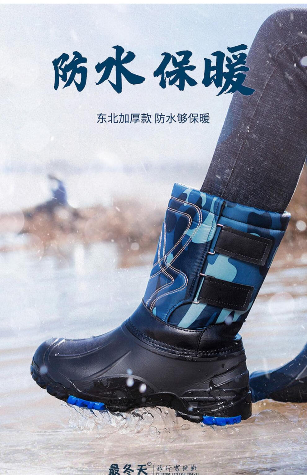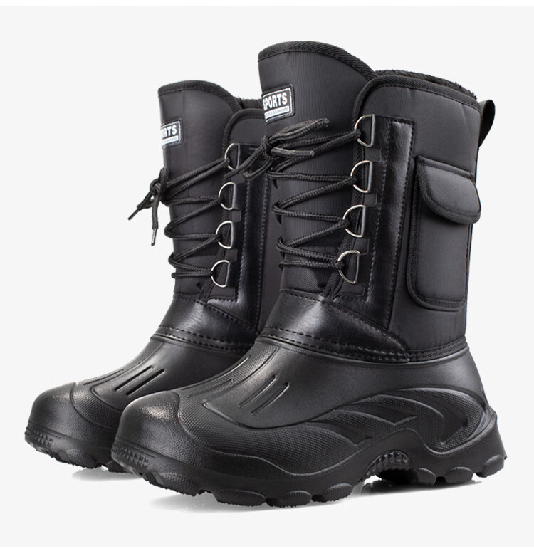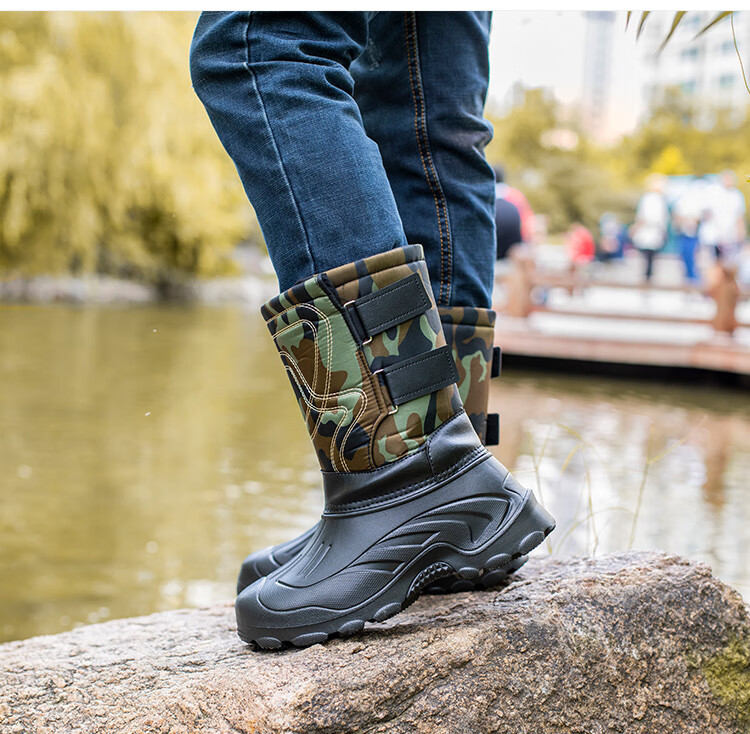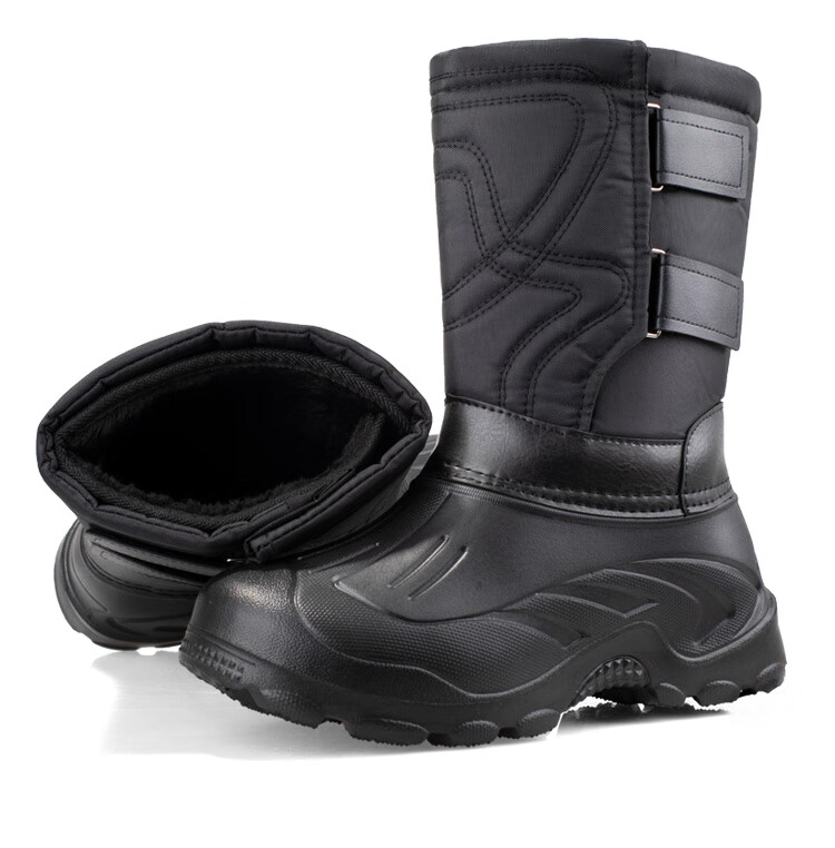 稻草人(MEXICAN)东北冬季户外雪地靴男鞋防滑保暖防水钓鱼靴子长筒加绒男士冰钓鞋 E2黑色粘扣 39