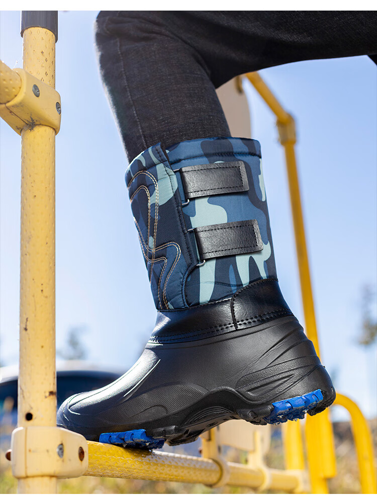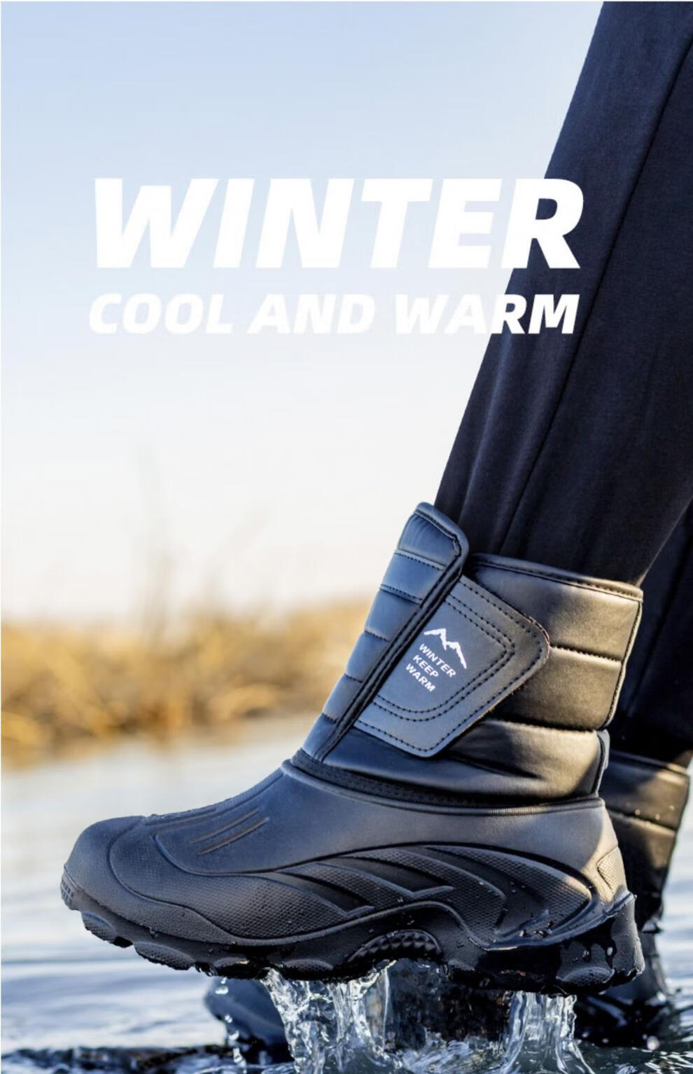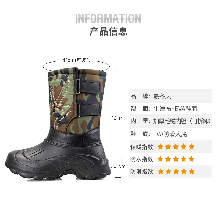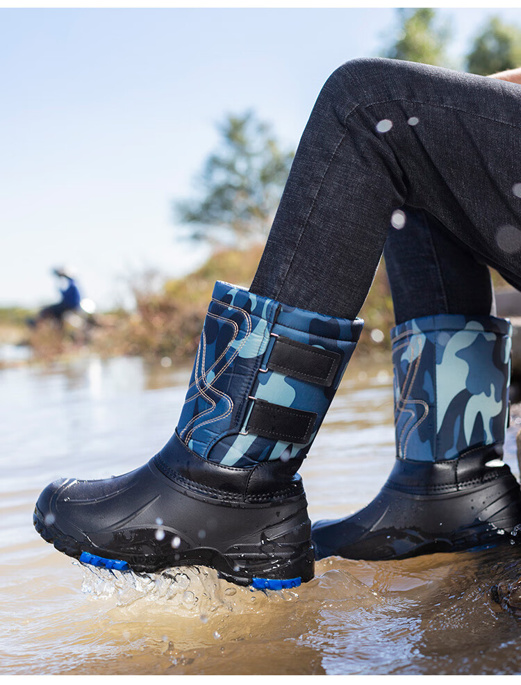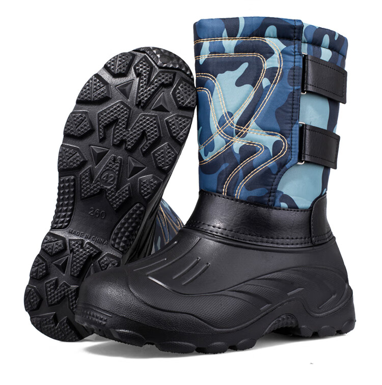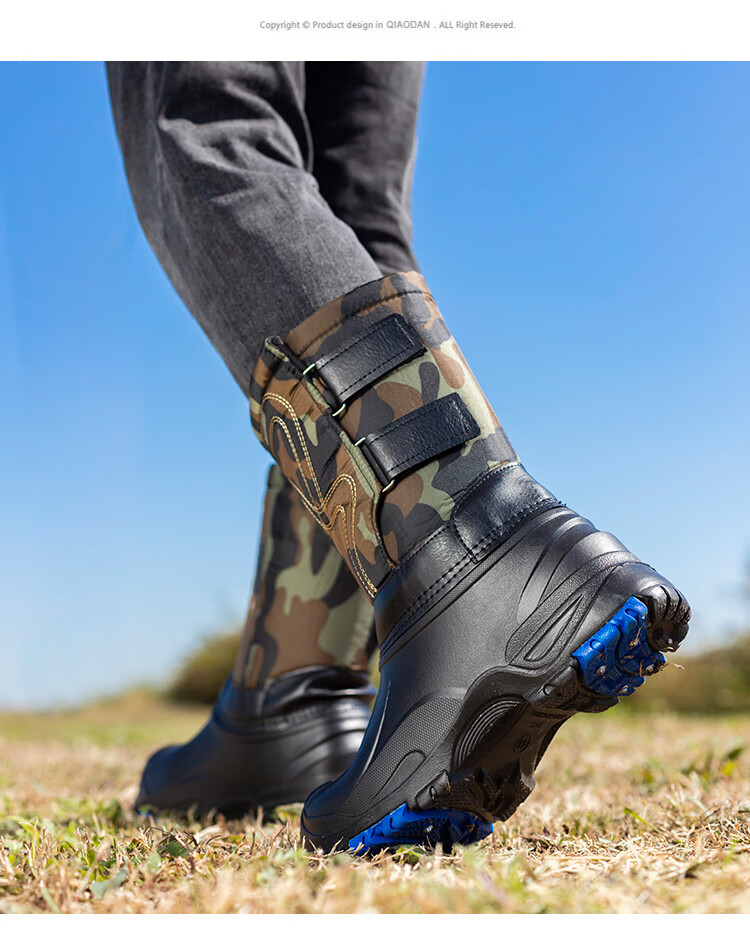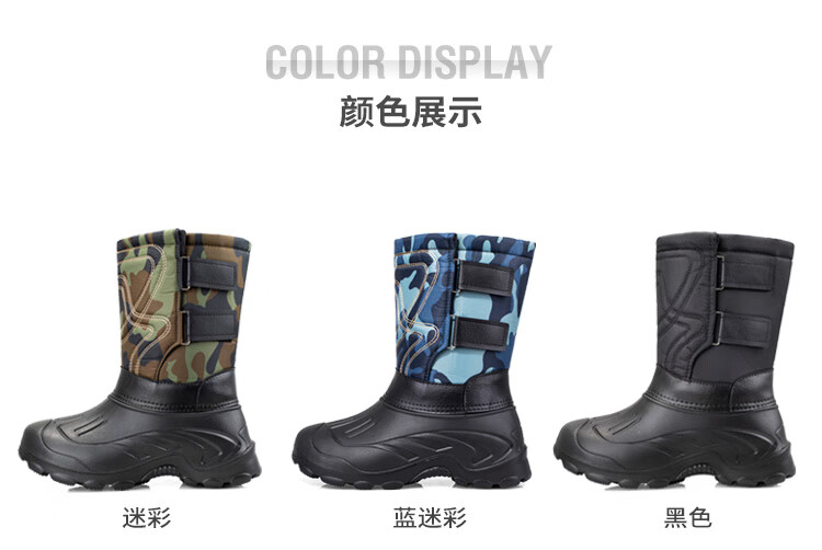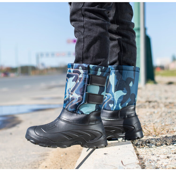 稻草人(MEXICAN)东北冬季户外雪地靴男鞋防滑保暖防水钓鱼靴子长筒加绒男士冰钓鞋 E2黑色粘扣 39