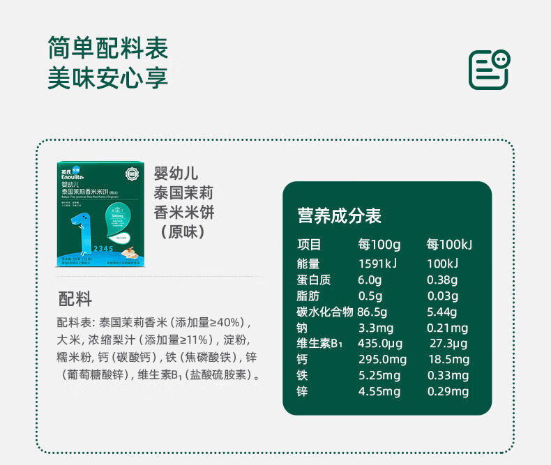 英氏(Engnice)米粉婴儿高铁有机米粉米糊辅食宝宝婴幼儿6个月以上罐装 1阶6月+第一口选维C加铁 258g*1罐