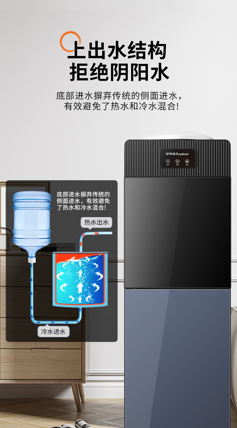 荣事达(Royalstar)饮水机立式家用冷热温热型柜式饮水器 推杯取水-高效制热 制热型