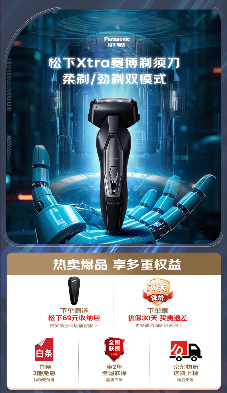 松下(Panasonic)Xtra赛博电动剃须刀往复式男士刮胡刀进口送男友老公生日礼物ES-ERT4