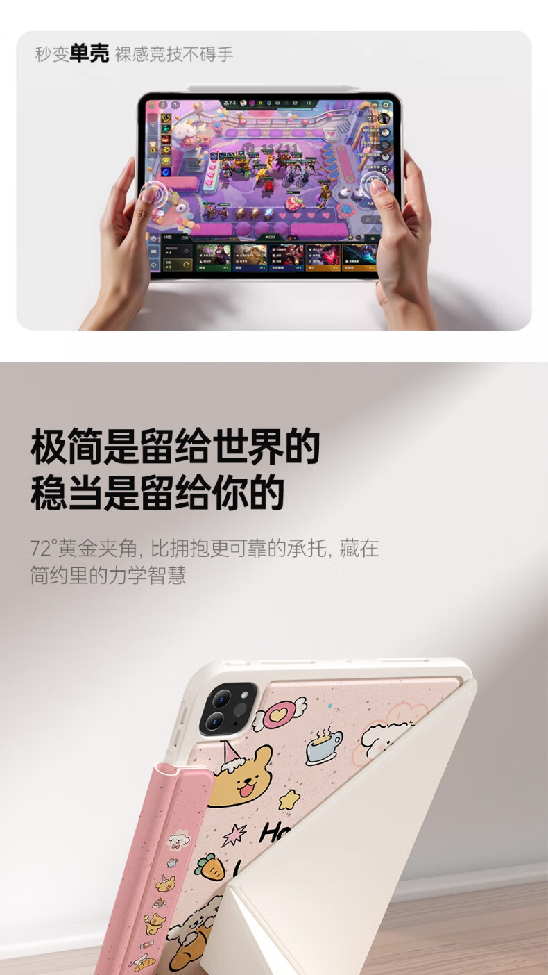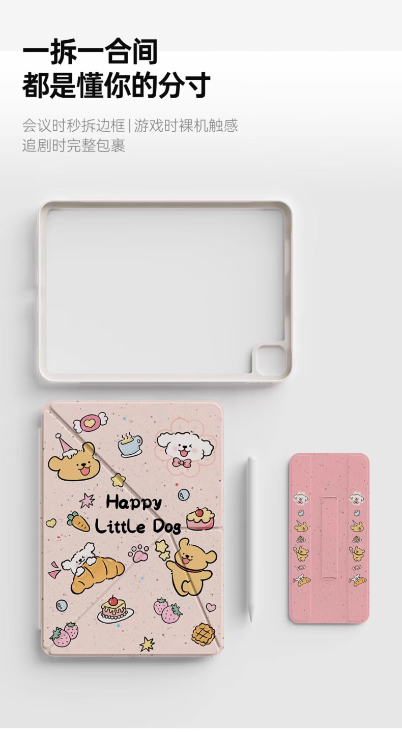 治霆适用ipad pro保护套11英寸2020/2021/2022版可拆卸边框磁吸双面夹轻薄便携多角度-快乐粉狗