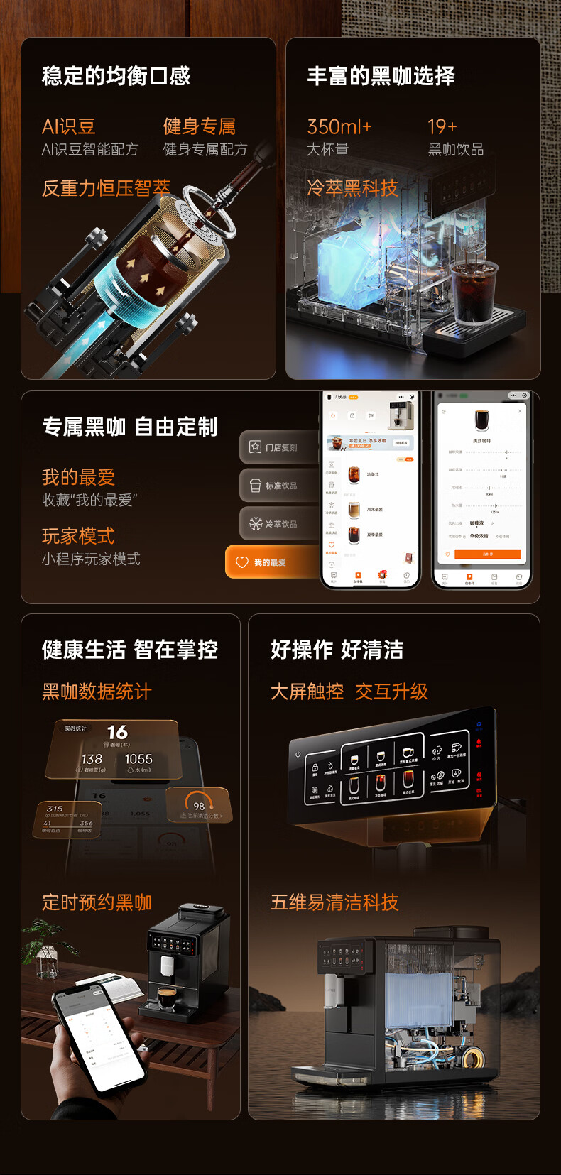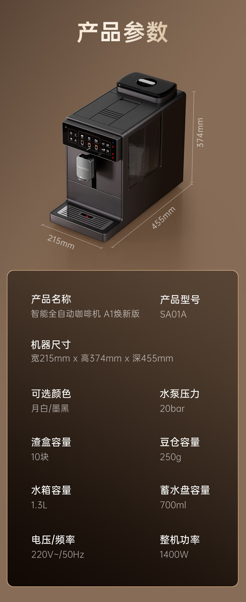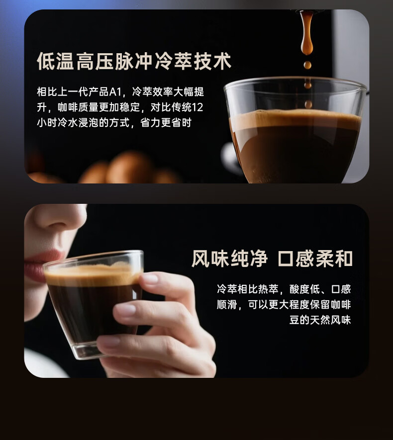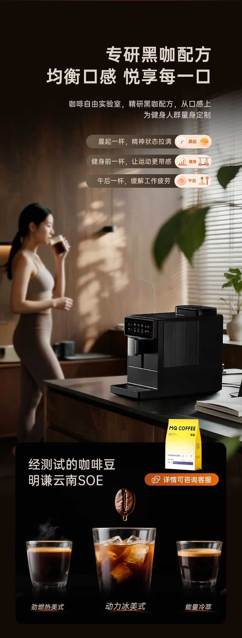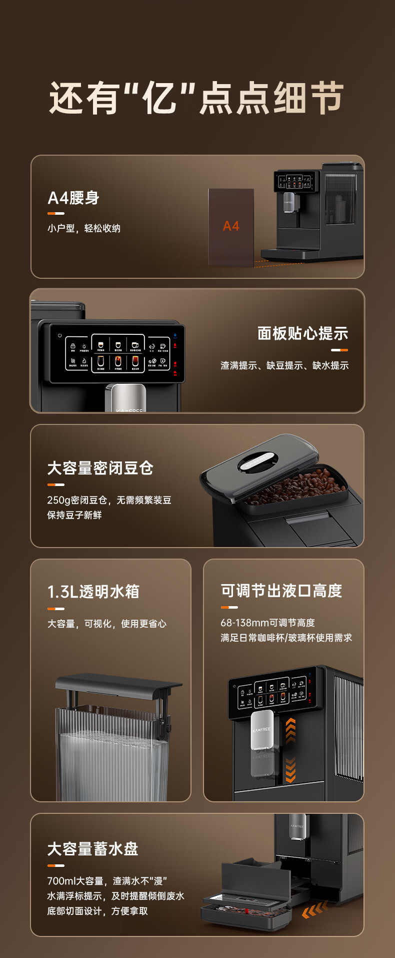 咖啡自由(KAxFREE)A1焕新全自动智能咖啡机研磨一体家用意式美式冷萃咖啡机 墨黑
